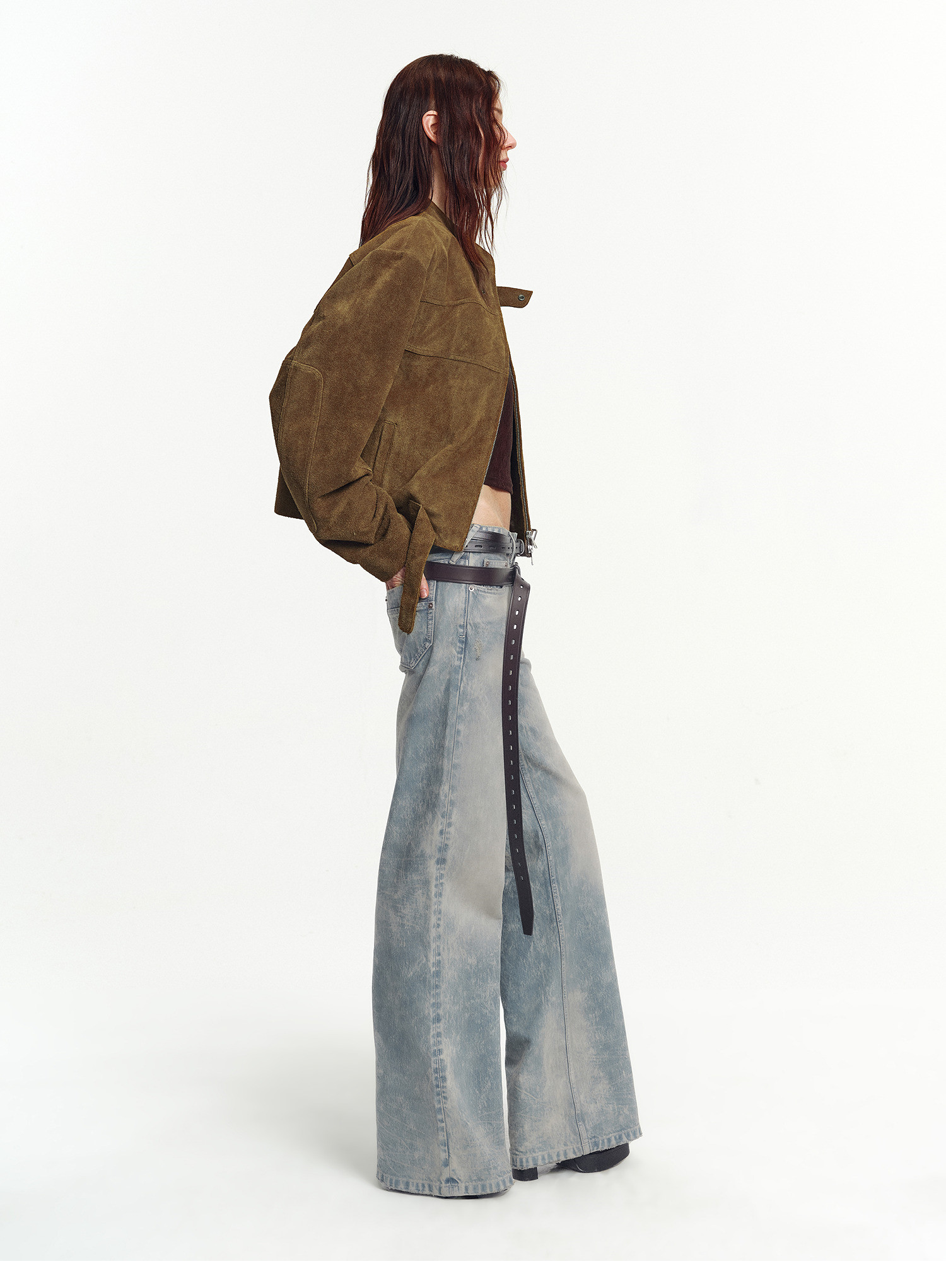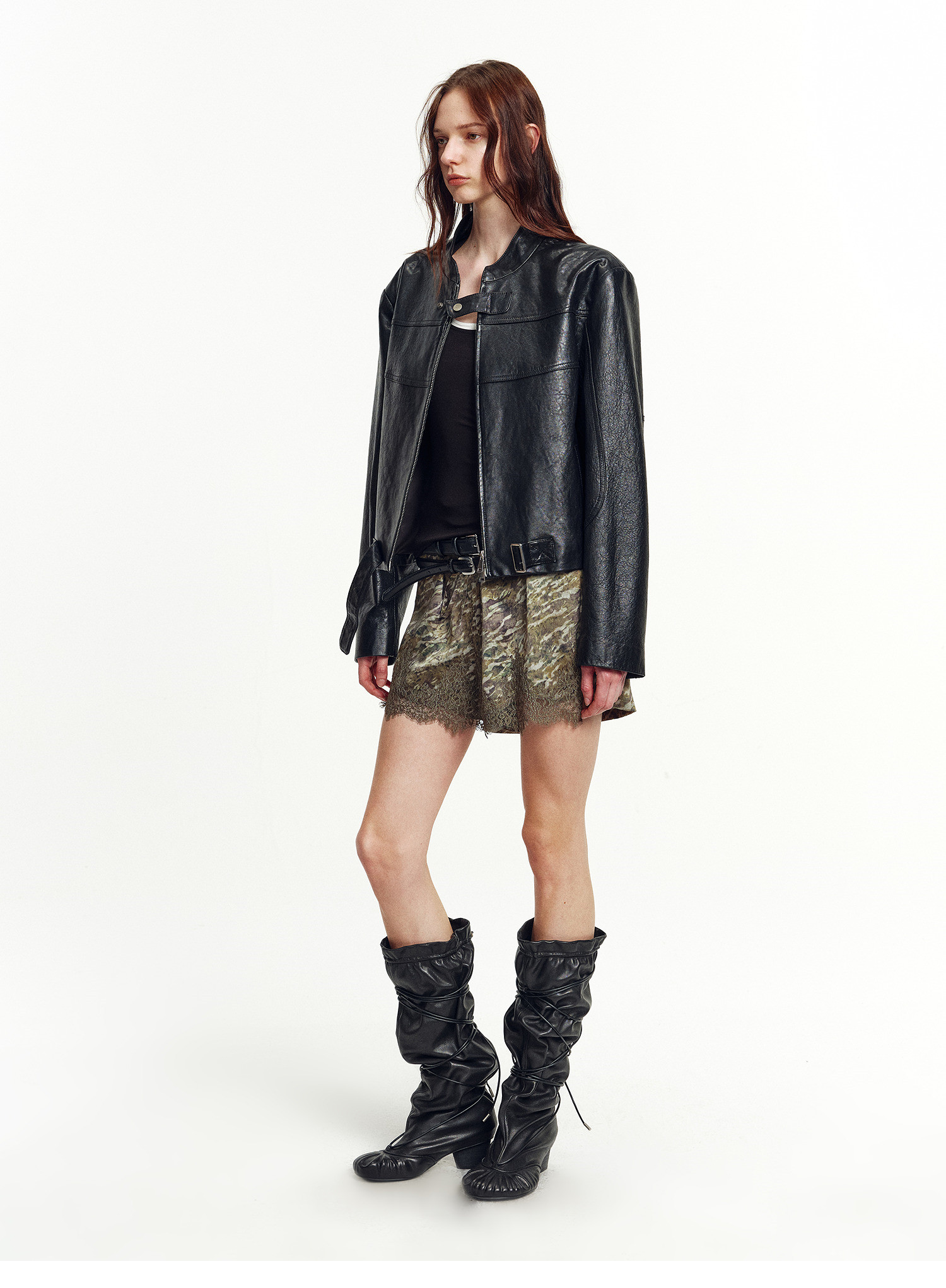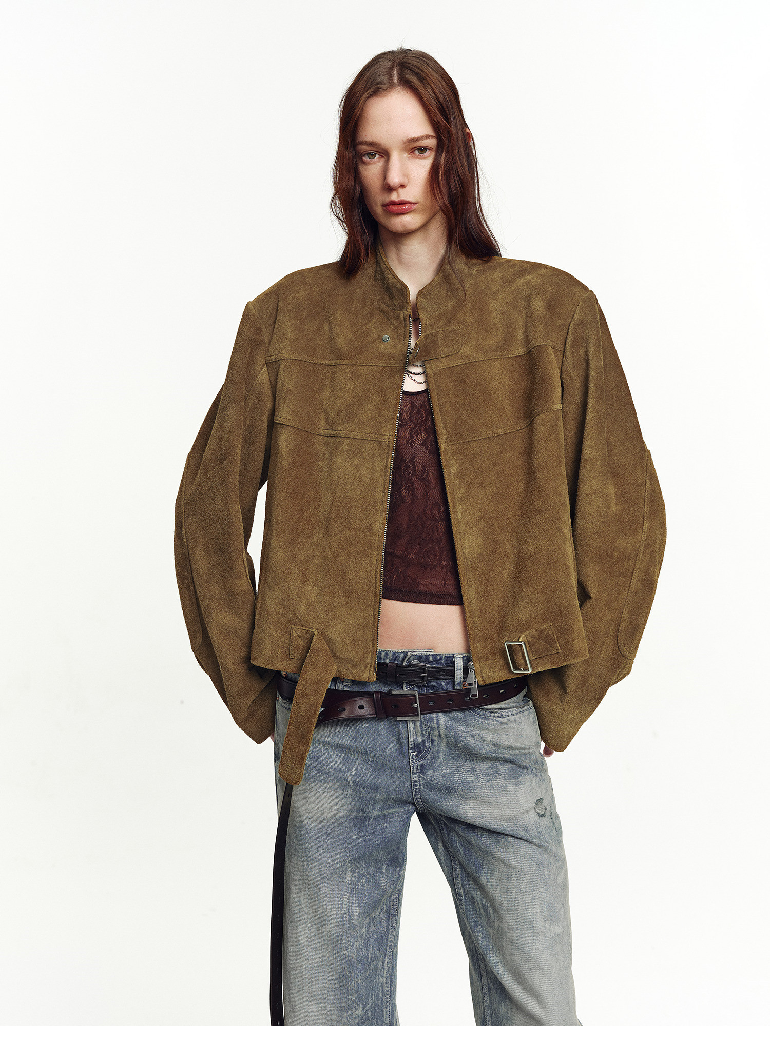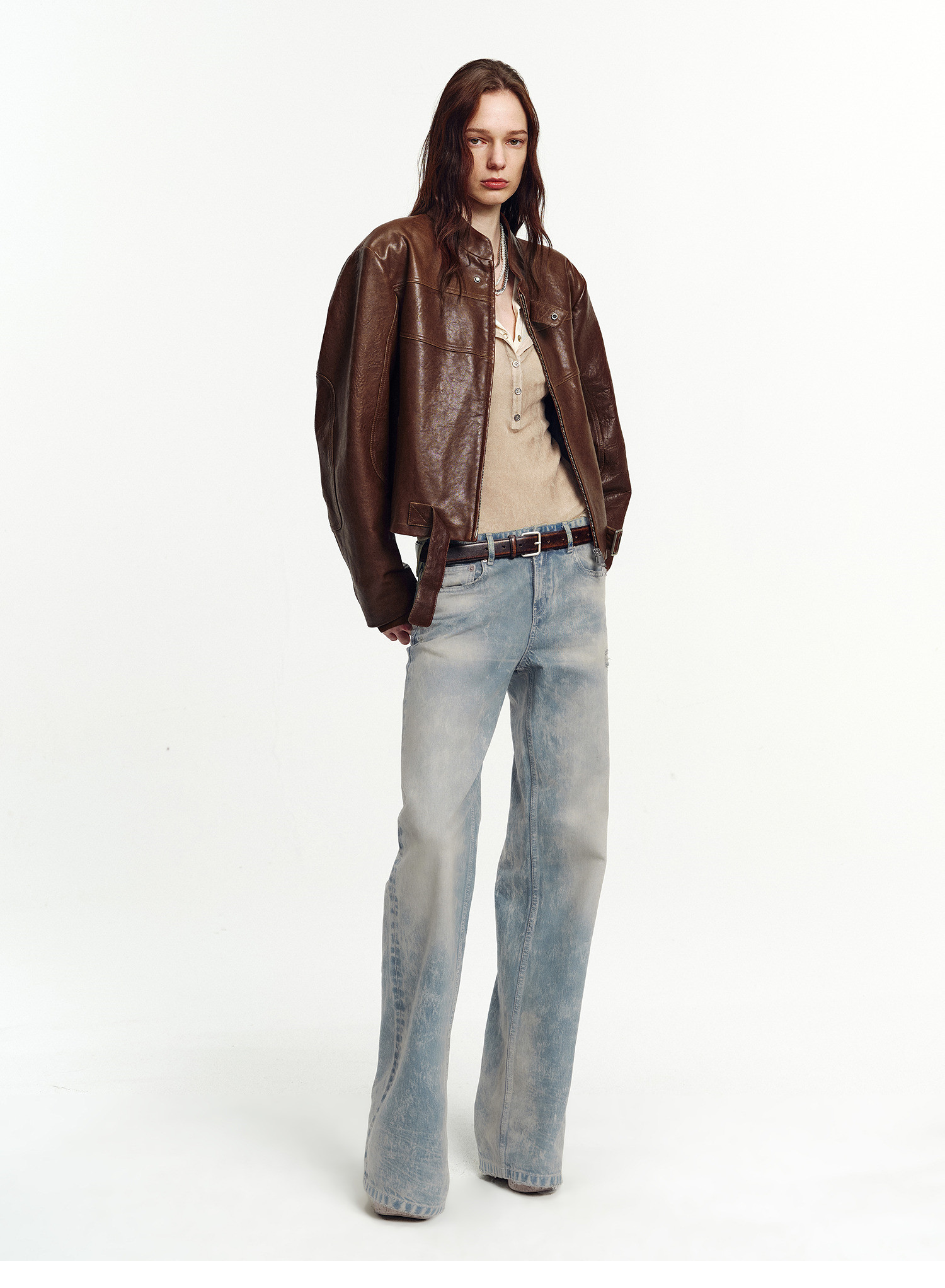 [Same Style as Huang Baobao] Fu Zhi'En Caramel Mountain Imported Oil Wax Vegetable-Tanned Sheepskin Motorcycle Genuine Leather Jacket