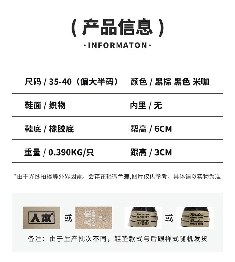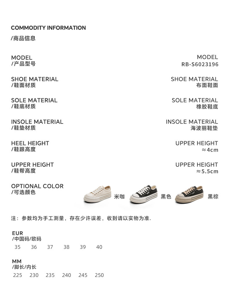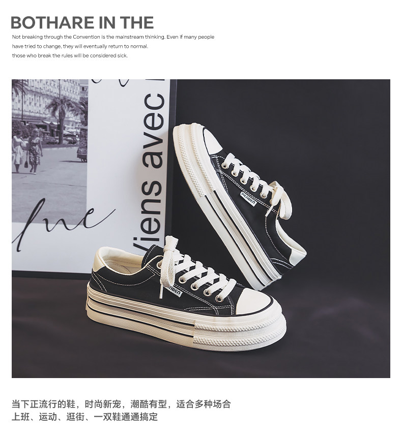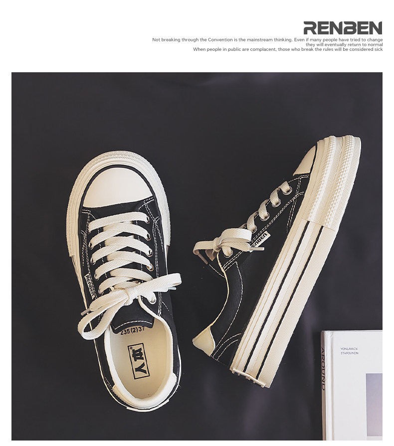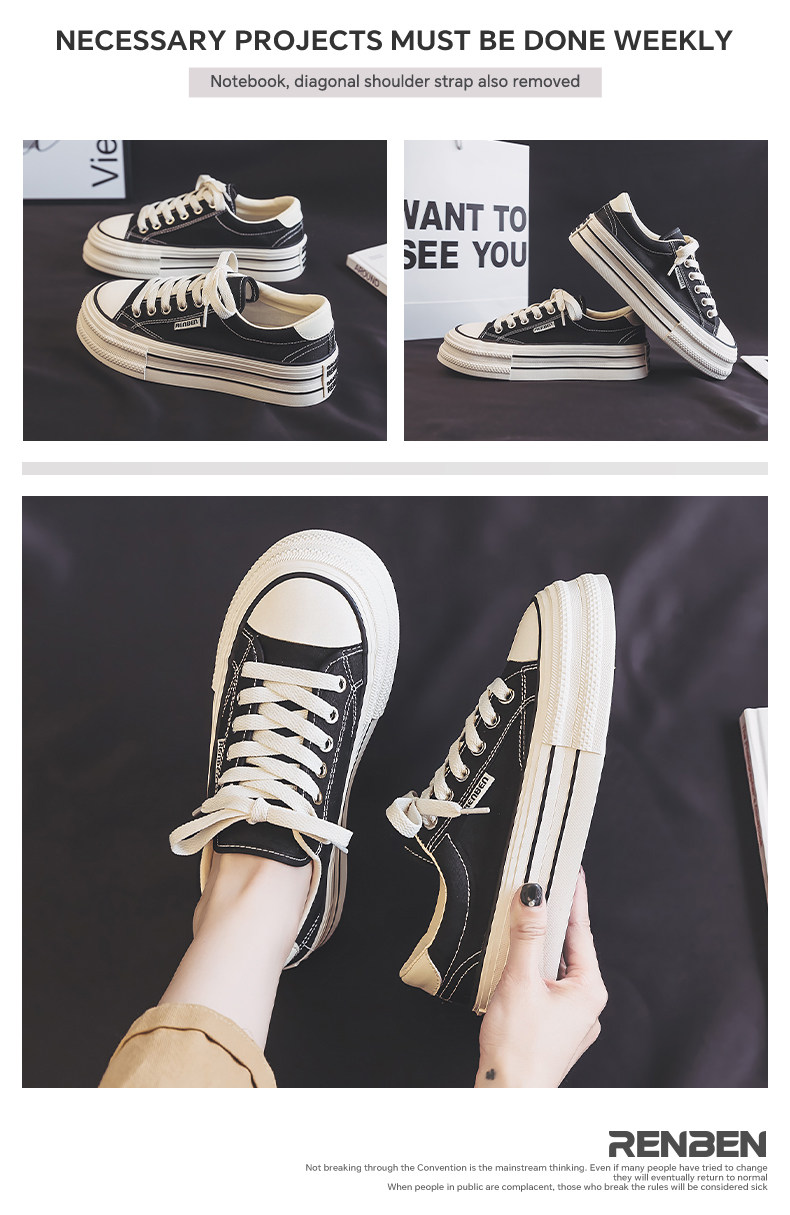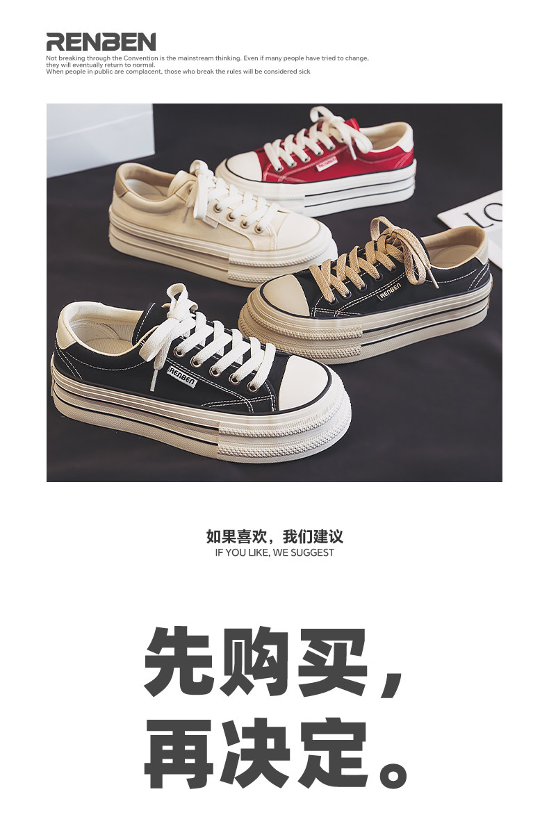 Renben Canvas Shoes for Women 2026 Spring and Autumn New Thin Thick-Soled Height-Increasing Shoes Versatile Women's Breathable Soft-Soled Shoes