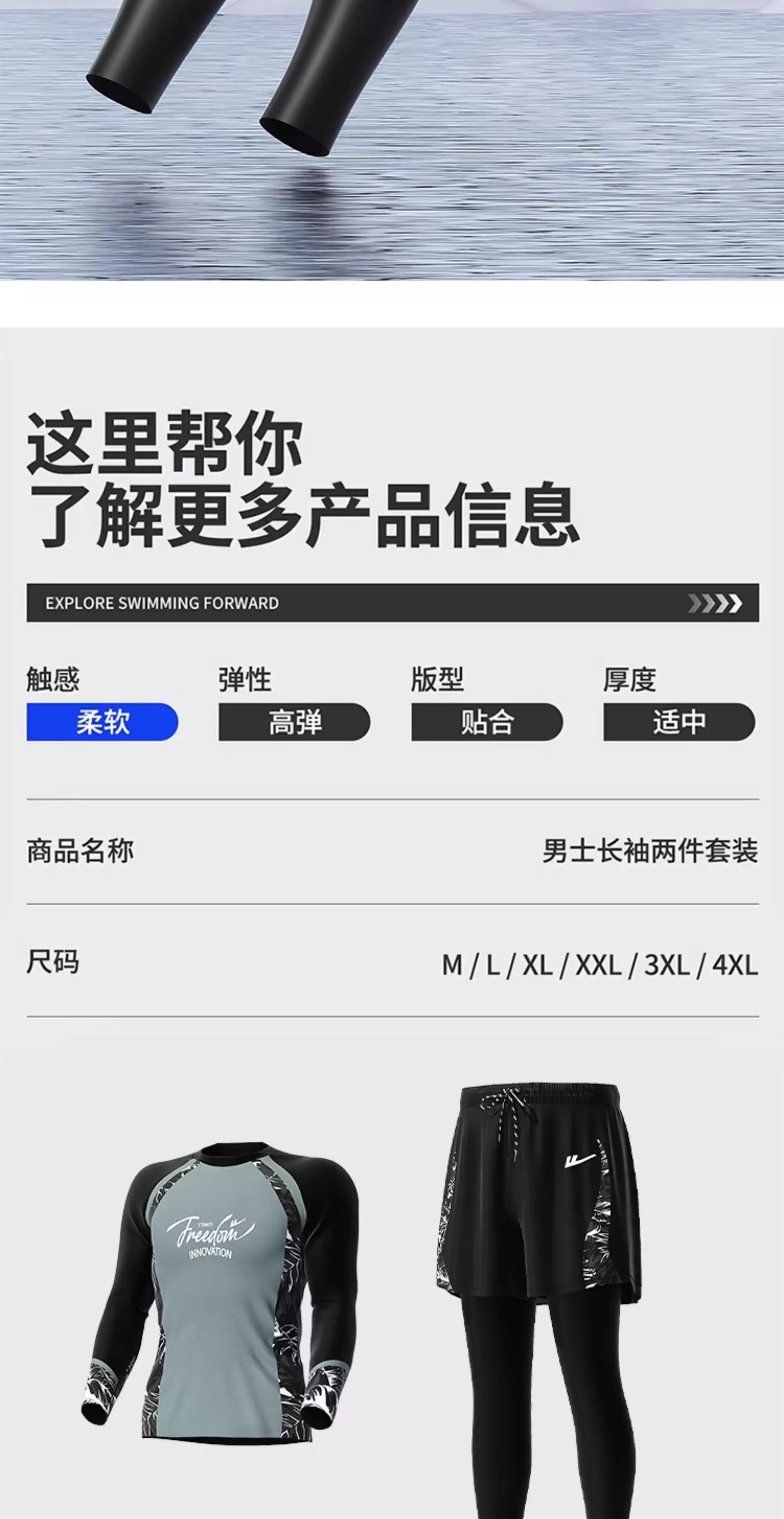 Pull-Back Youth Swimsuit Set Double-Layer Swim Trunks Large Size Junior High School Long-Sleeved Long Pants Boys Sun Protection Swimming Equipment