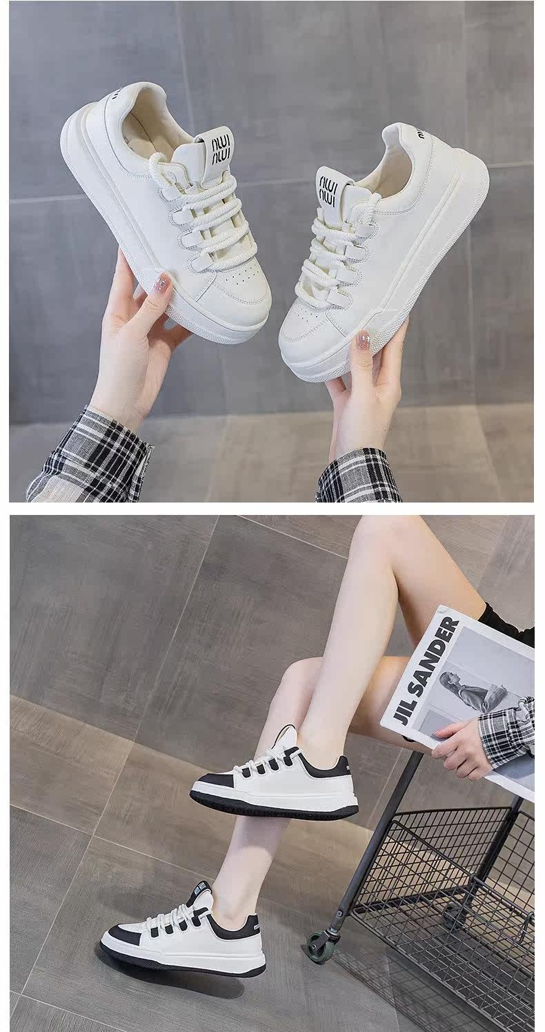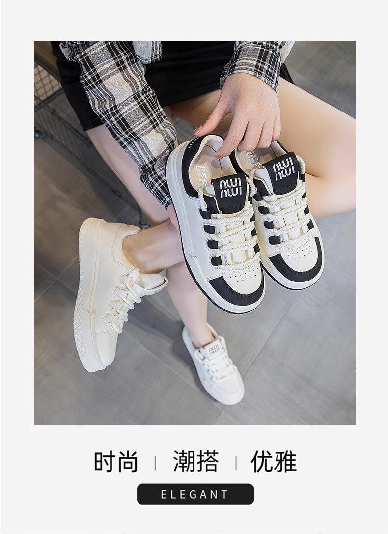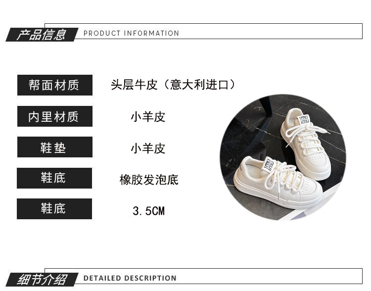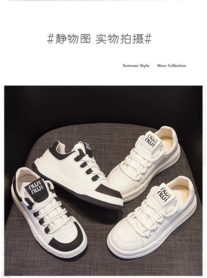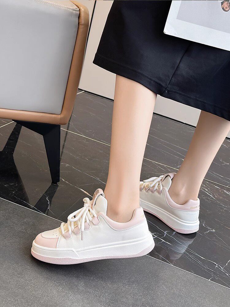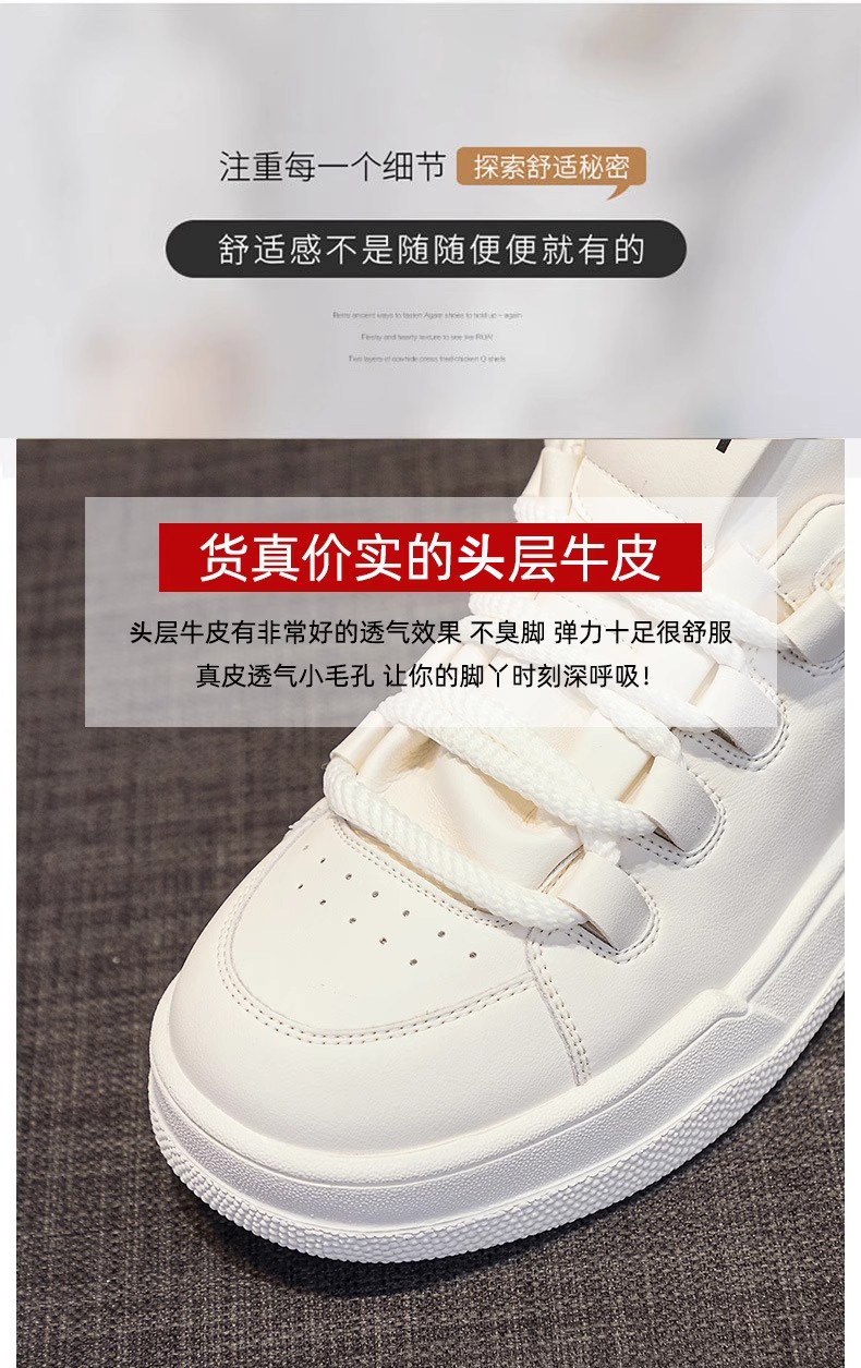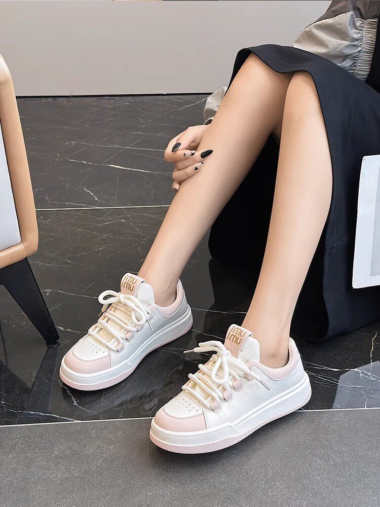 Hong Kong Genuine Leather White Sneakers for Women, 2026 Spring and Autumn New Thick-Soled Sports Casual Sneakers, Versatile Round-Toe Single Shoes