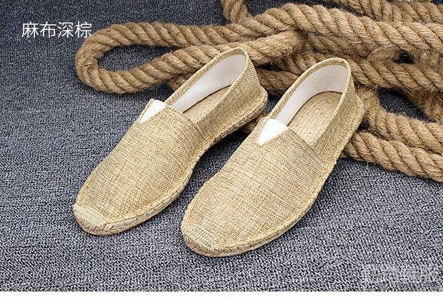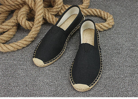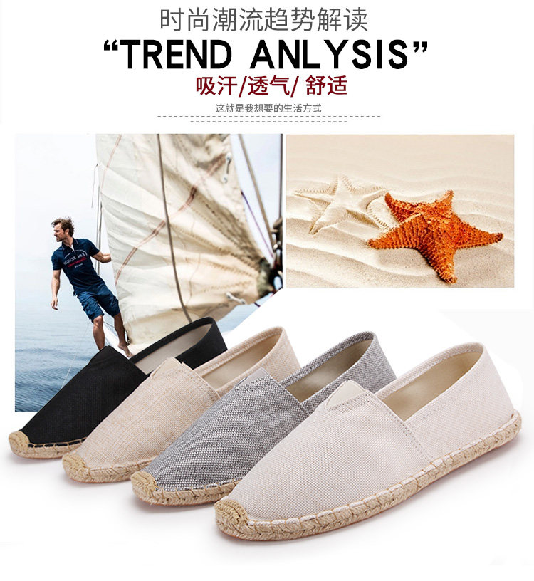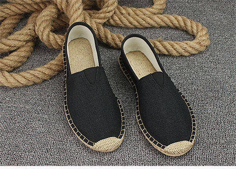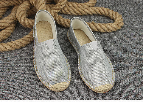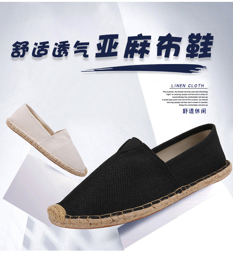 Summer Linen-Soled Shoes, Handmade Casual Straw Shoes for Men, Sweat-Absorbent and Breathable Slip-On Lazy Fisherman Mary Jane Shoes
