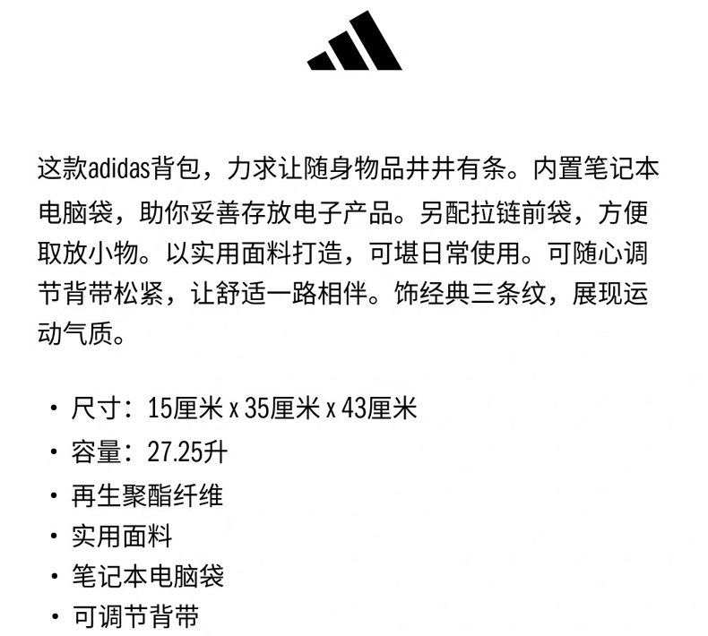 Adidas Backpack for Men and Women 2025 New Lightweight Sports Backpack for High School Students Campus Sweet College School Bag
