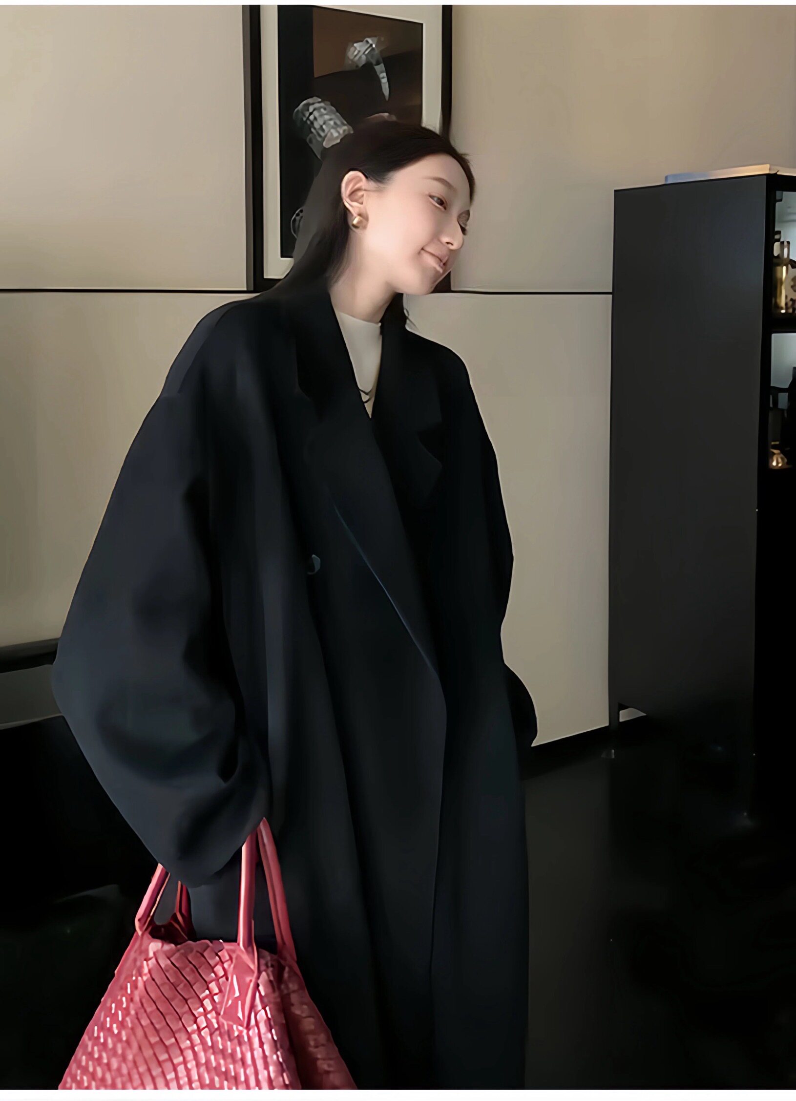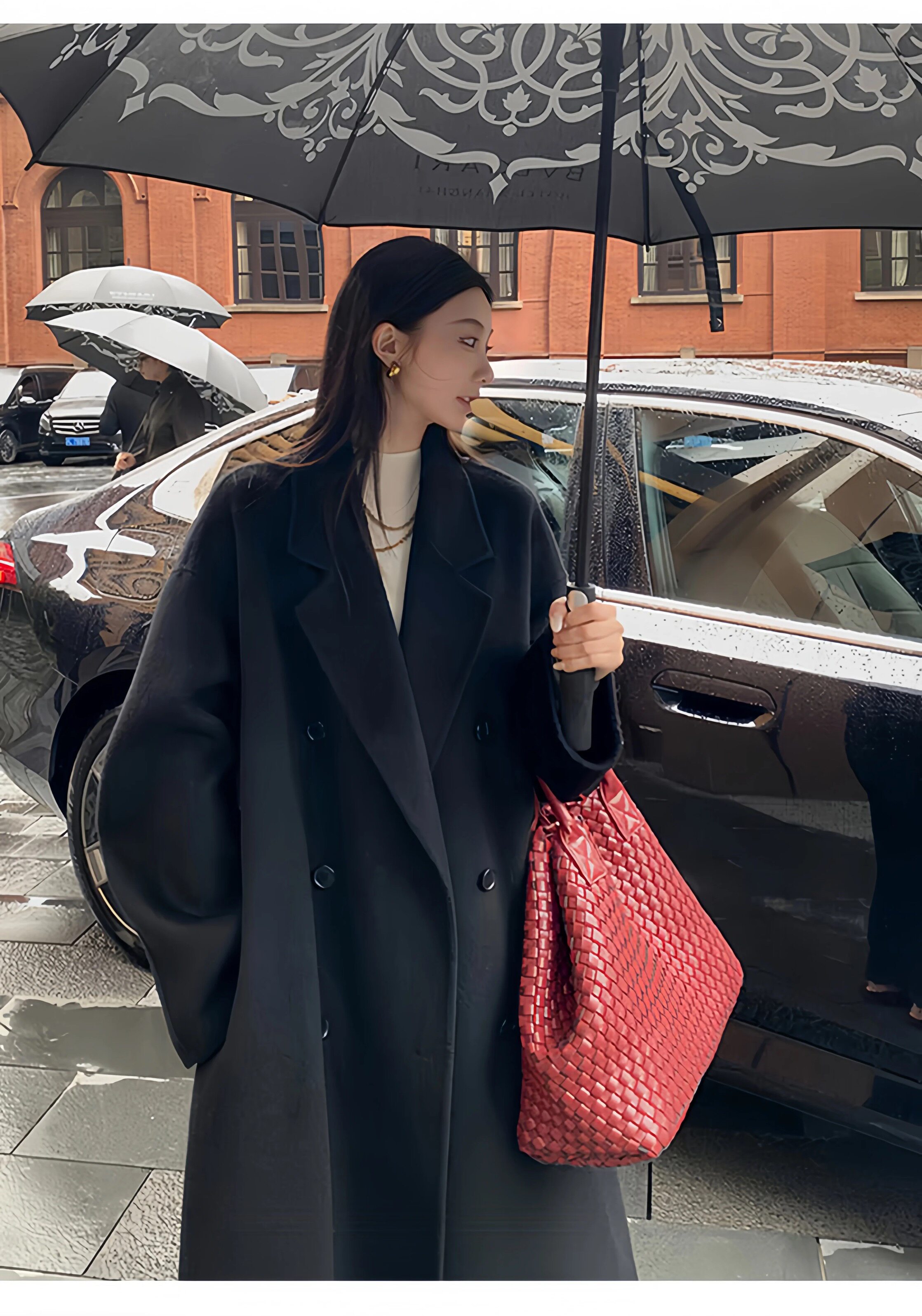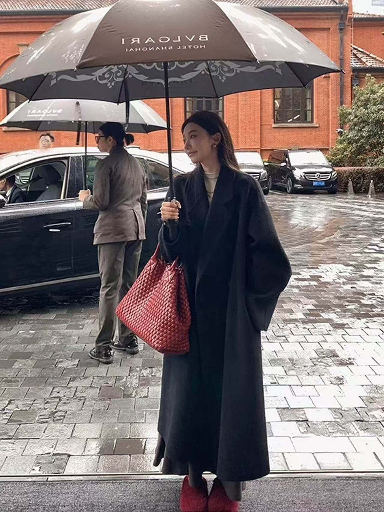 Black Wool Double-Sided Coat for Women, New Winter Style, Lazy Style, Elegant Mid-Length Double-Breasted Woolen Coat