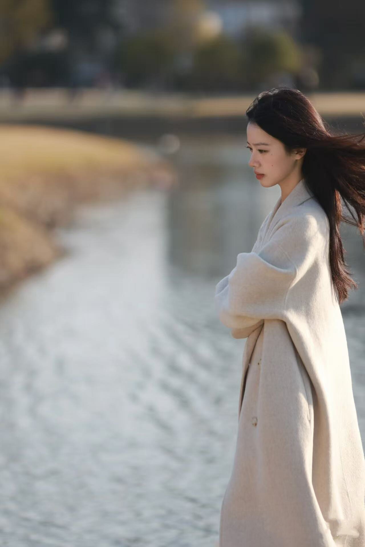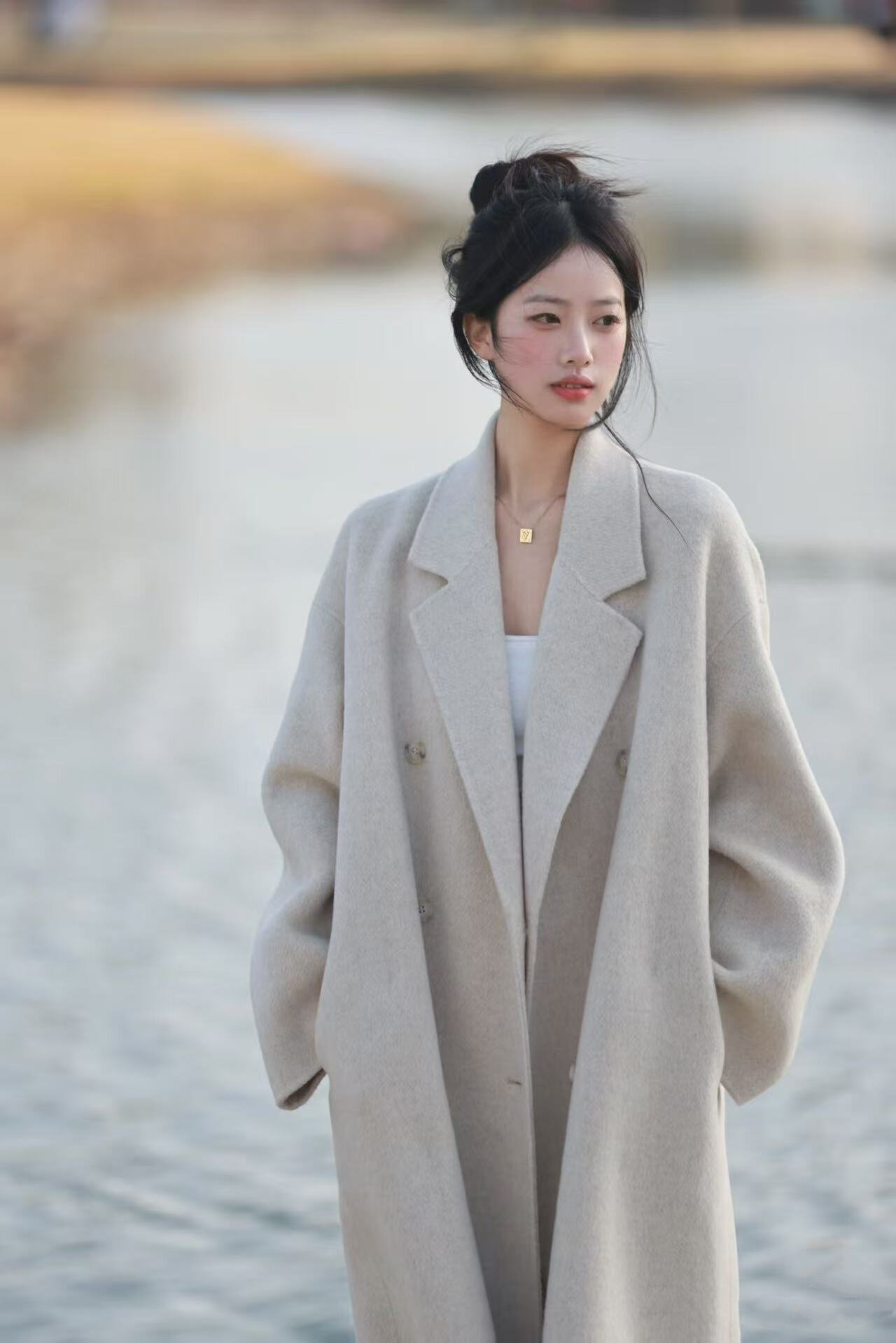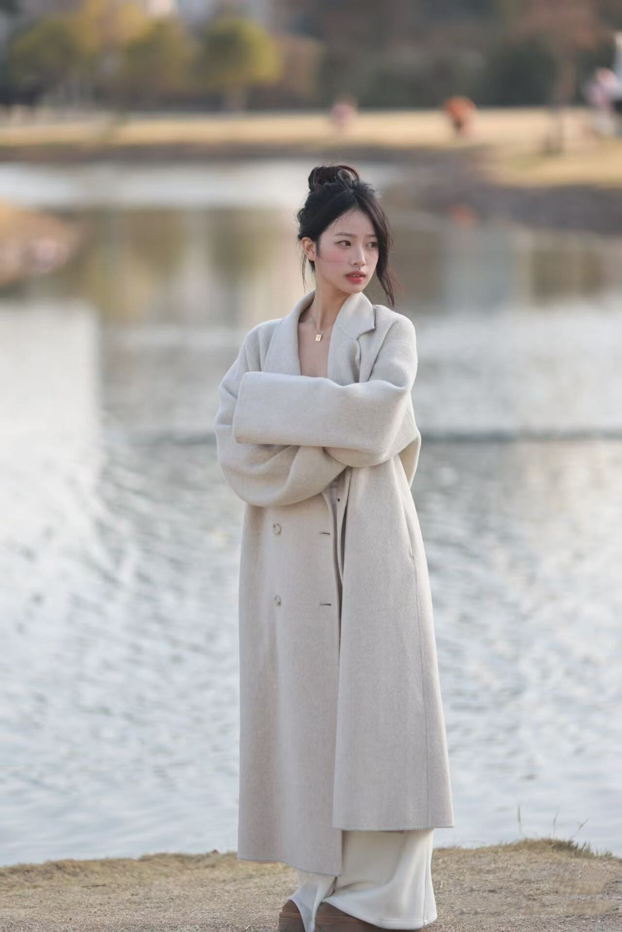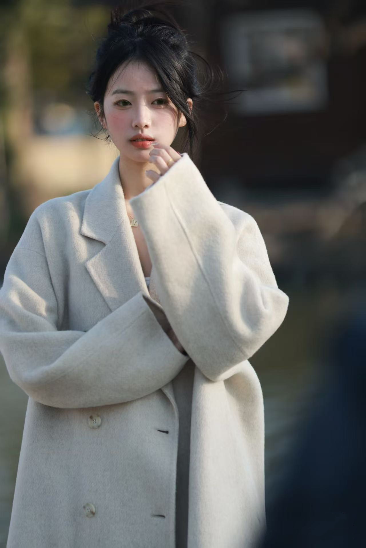 Black Wool Double-Sided Coat for Women, New Winter Style, Lazy Style, Elegant Mid-Length Double-Breasted Woolen Coat