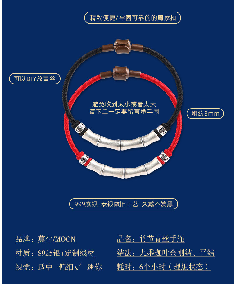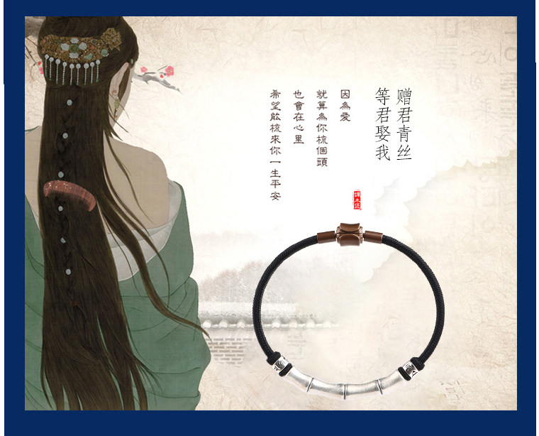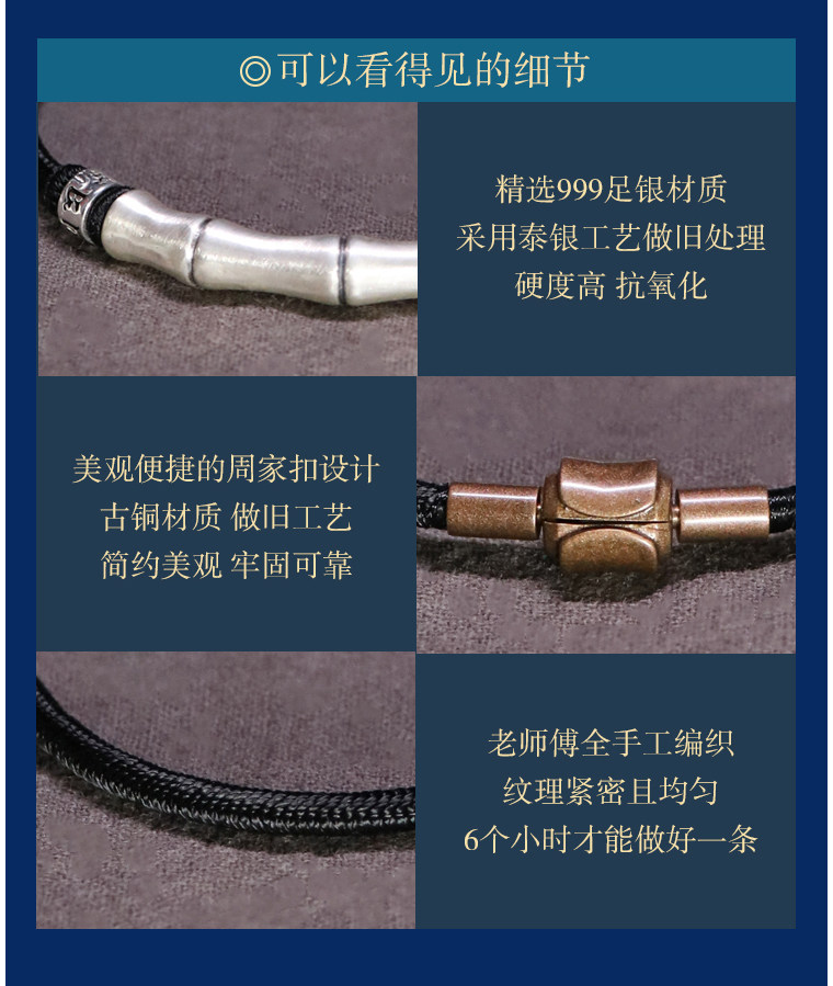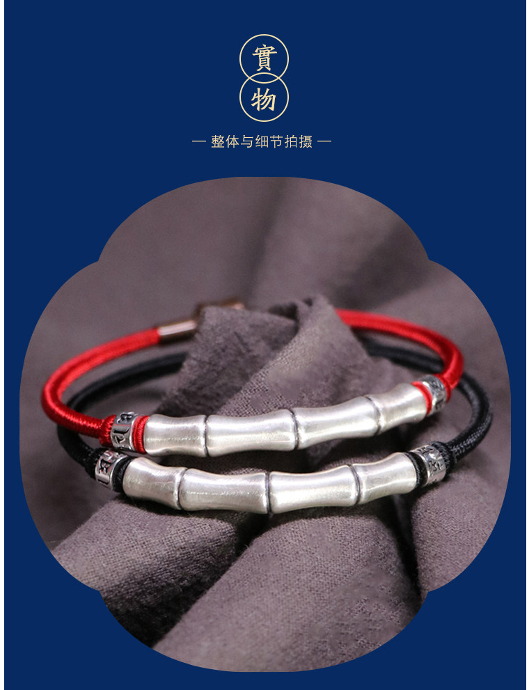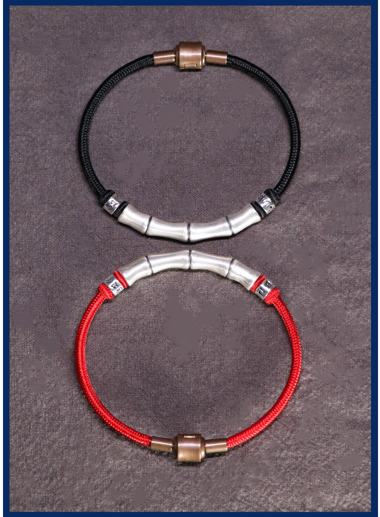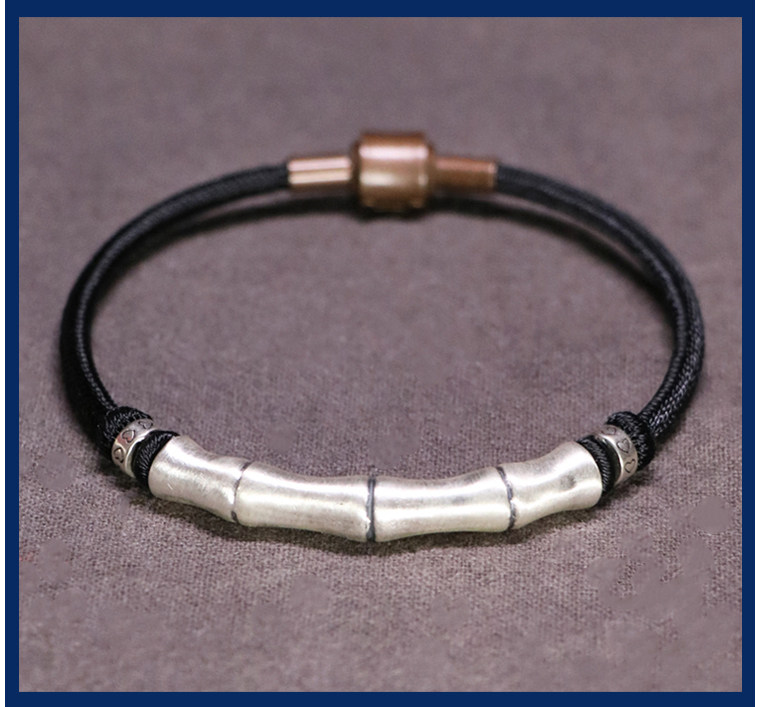 999 Silver Bamboo Knot Bracelet for Men, Pure Silver Braided Hair Gift, Nine-Strand Ksitigarbha Vajra Knot Curved Tube Couple's Hair Rope Bracelet