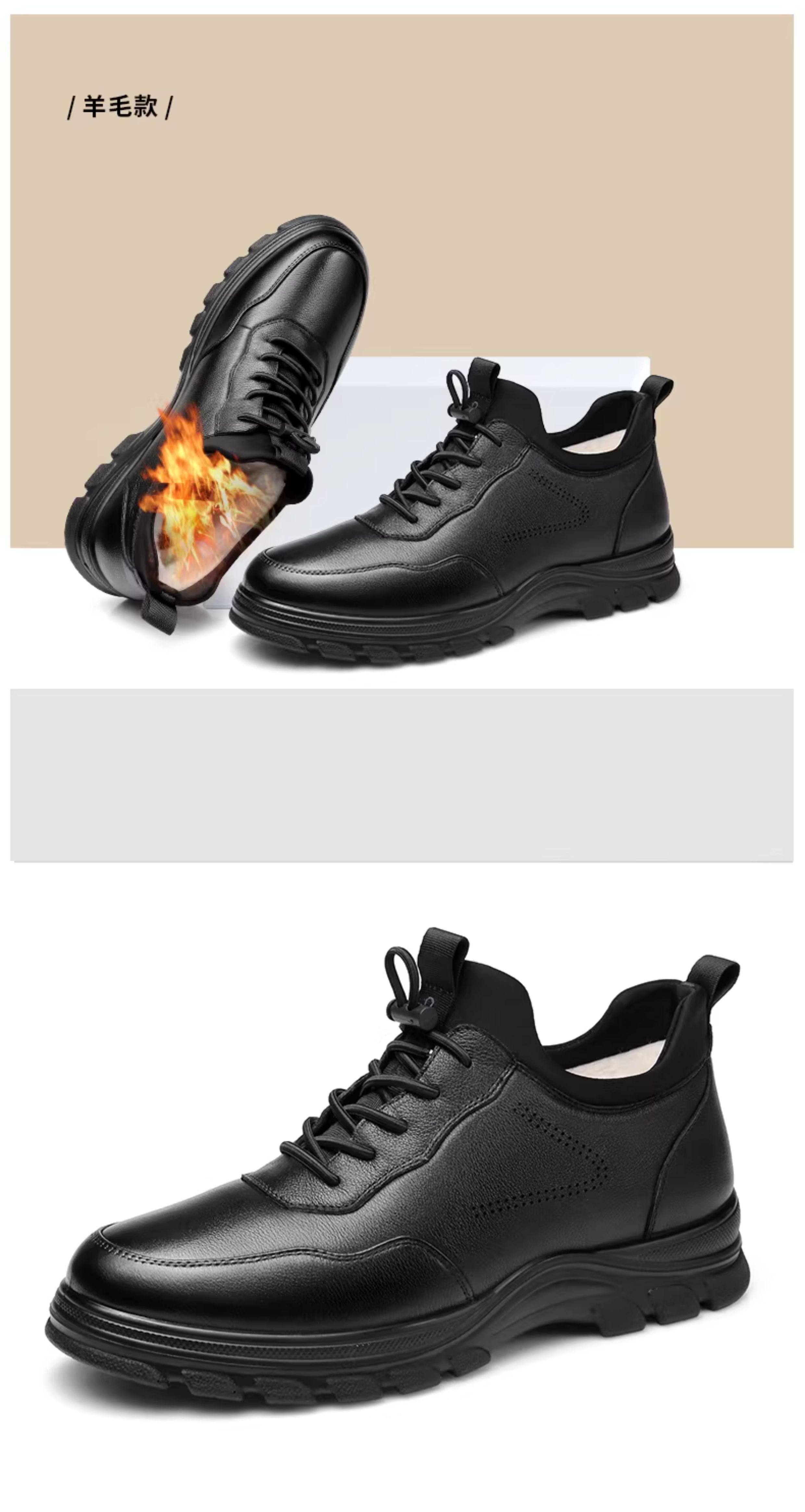 Qiangren 3515 Sports Leather Shoes for Men, Large Size, Genuine Leather, Breathable Business Sports Shoes, Black Formal Leather Shoes, Commuting Shoes
