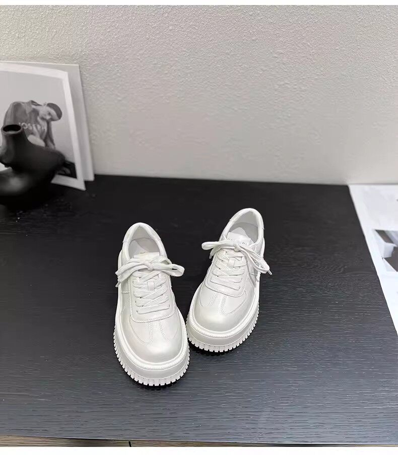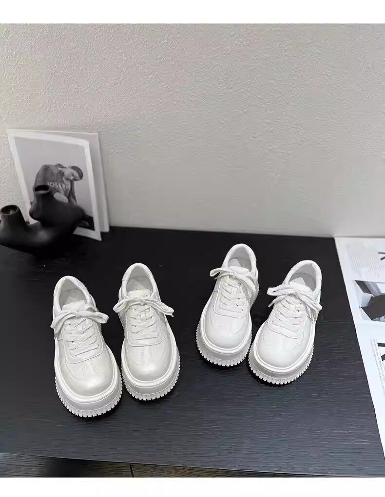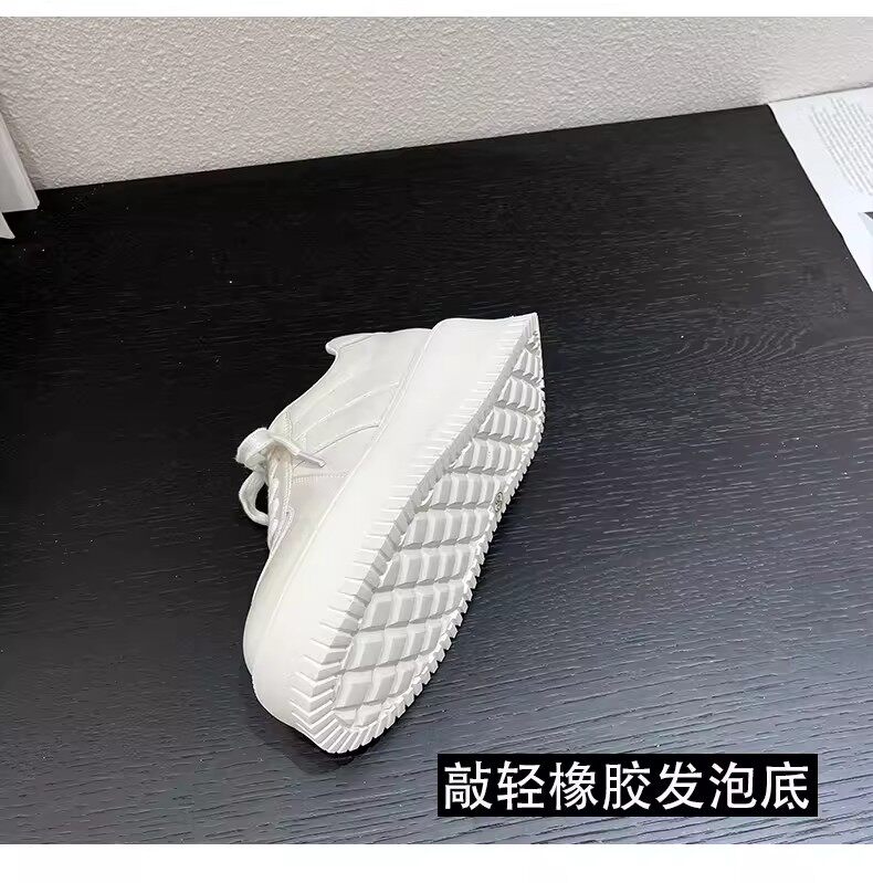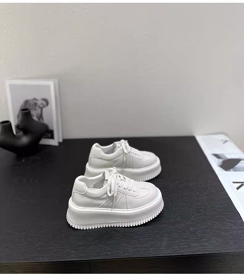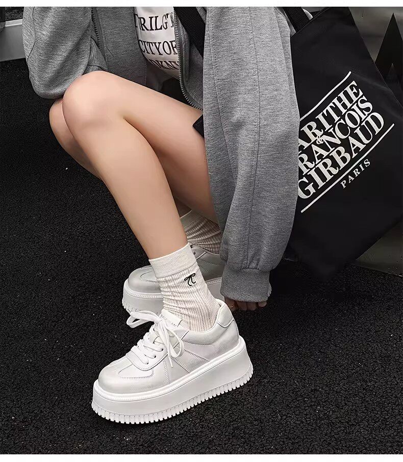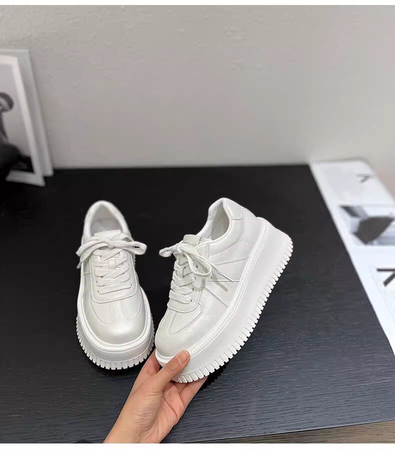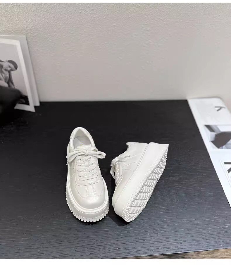 Hong Kong Style 7cm Thick-Soled Height-Increasing Genuine Leather White Sneakers for Women, Spring and Autumn Korean Version Versatile Platform Shoes Casual Sneakers