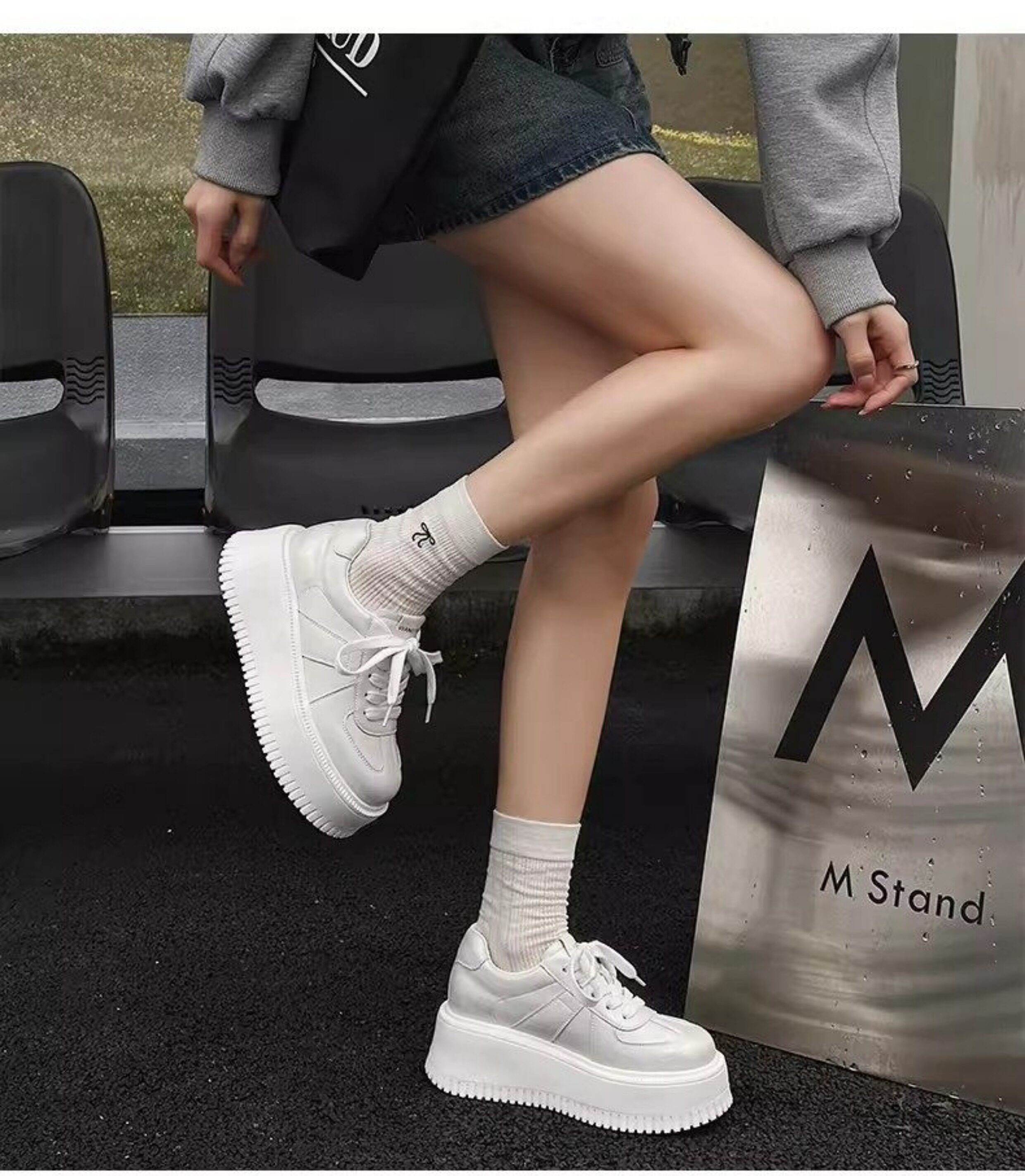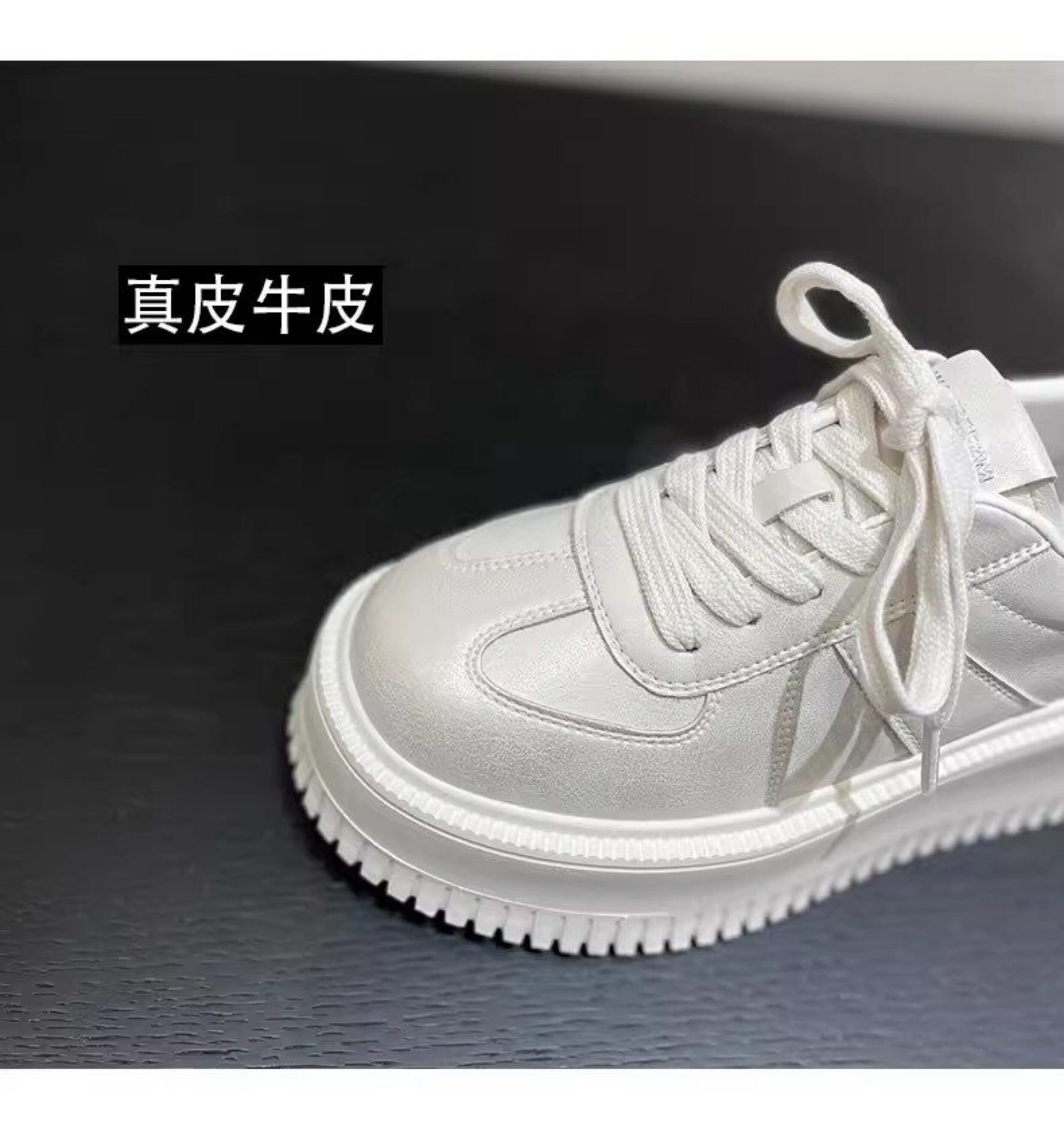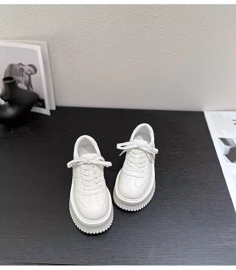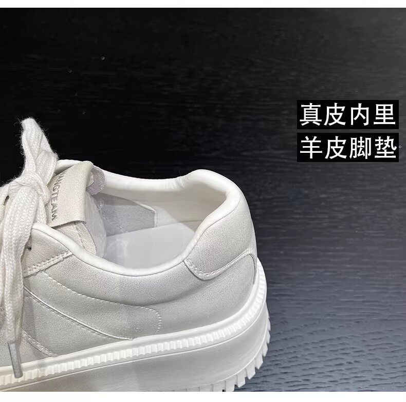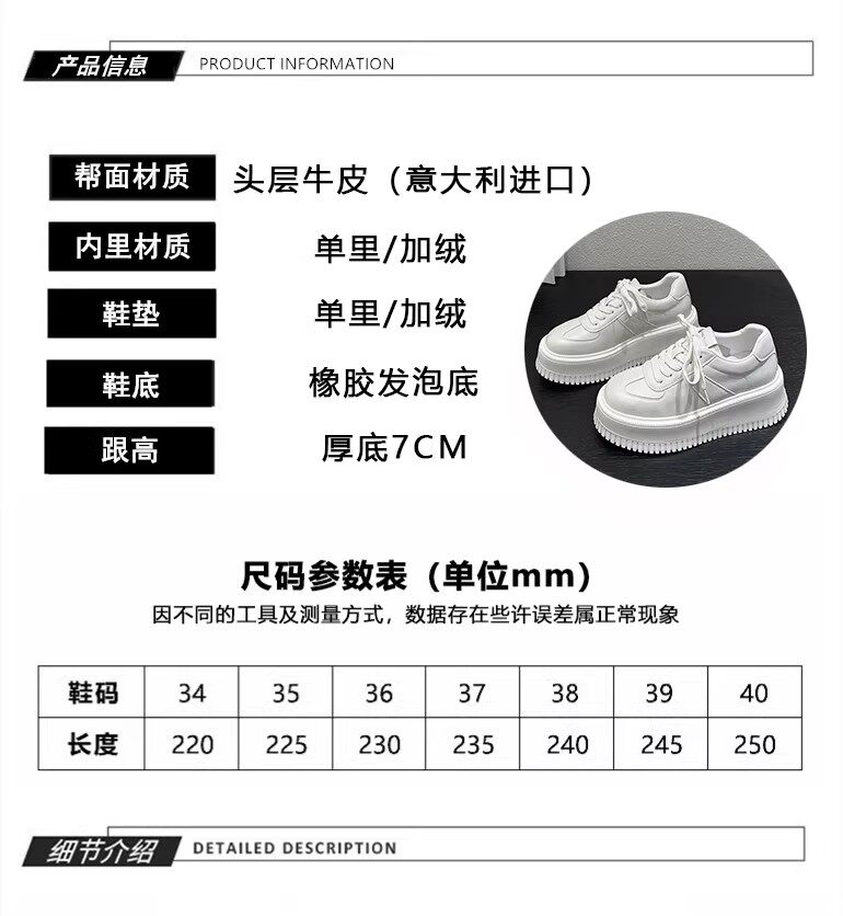 Hong Kong Style 7cm Thick-Soled Height-Increasing Genuine Leather White Sneakers for Women, Spring and Autumn Korean Version Versatile Platform Shoes Casual Sneakers