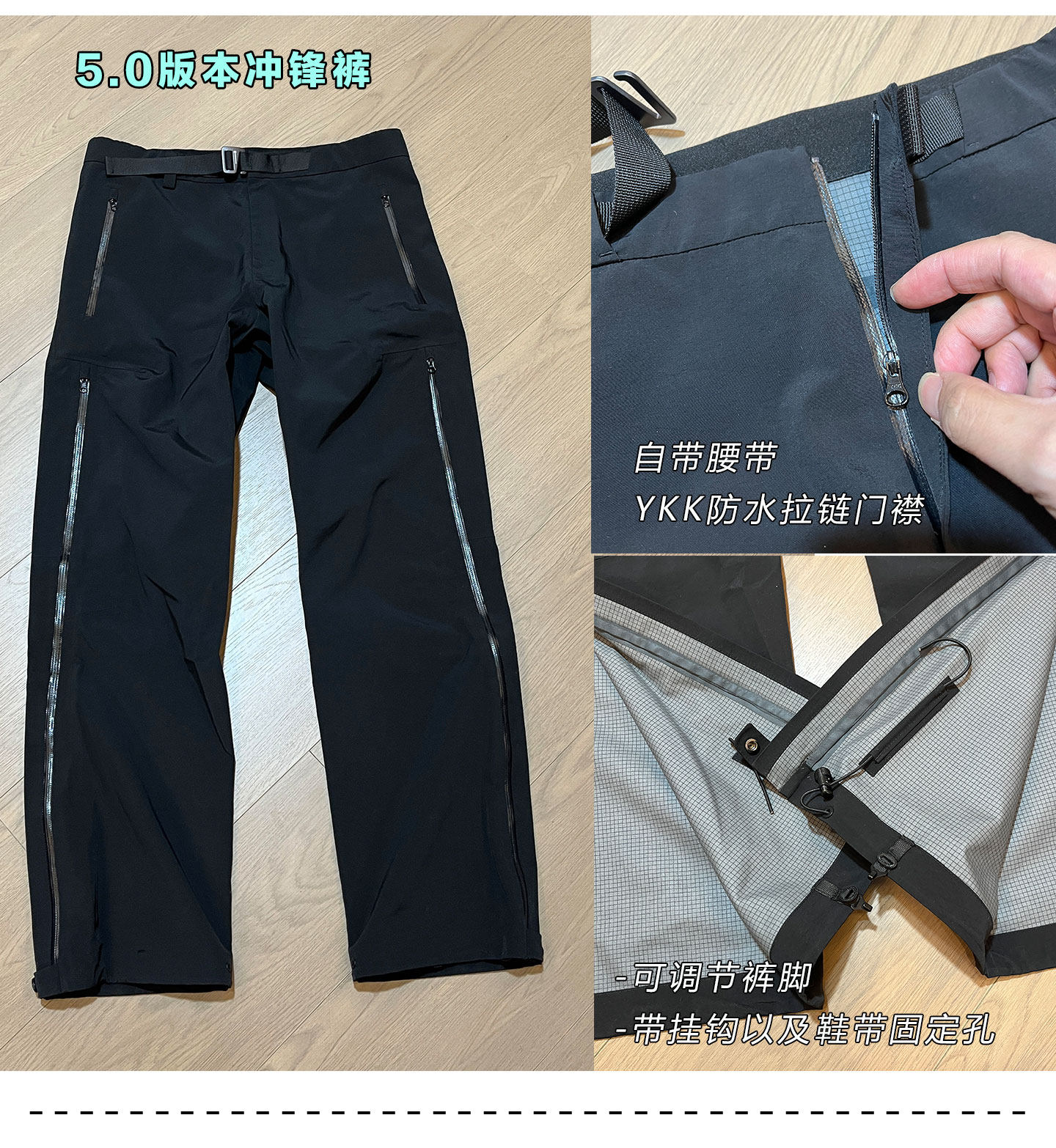 兄弟们期待的全拉链款冲锋裤出货啦,同样也是采用升级PRO面料,昂贵的ePTFE膜,黑灰两色可系腰带。详情点我直达:https://item.taobao.com/item.htm?ft=t&id=876538954726&spm=a21dvs.23580594.0.0.4fee2c1bBXGasx