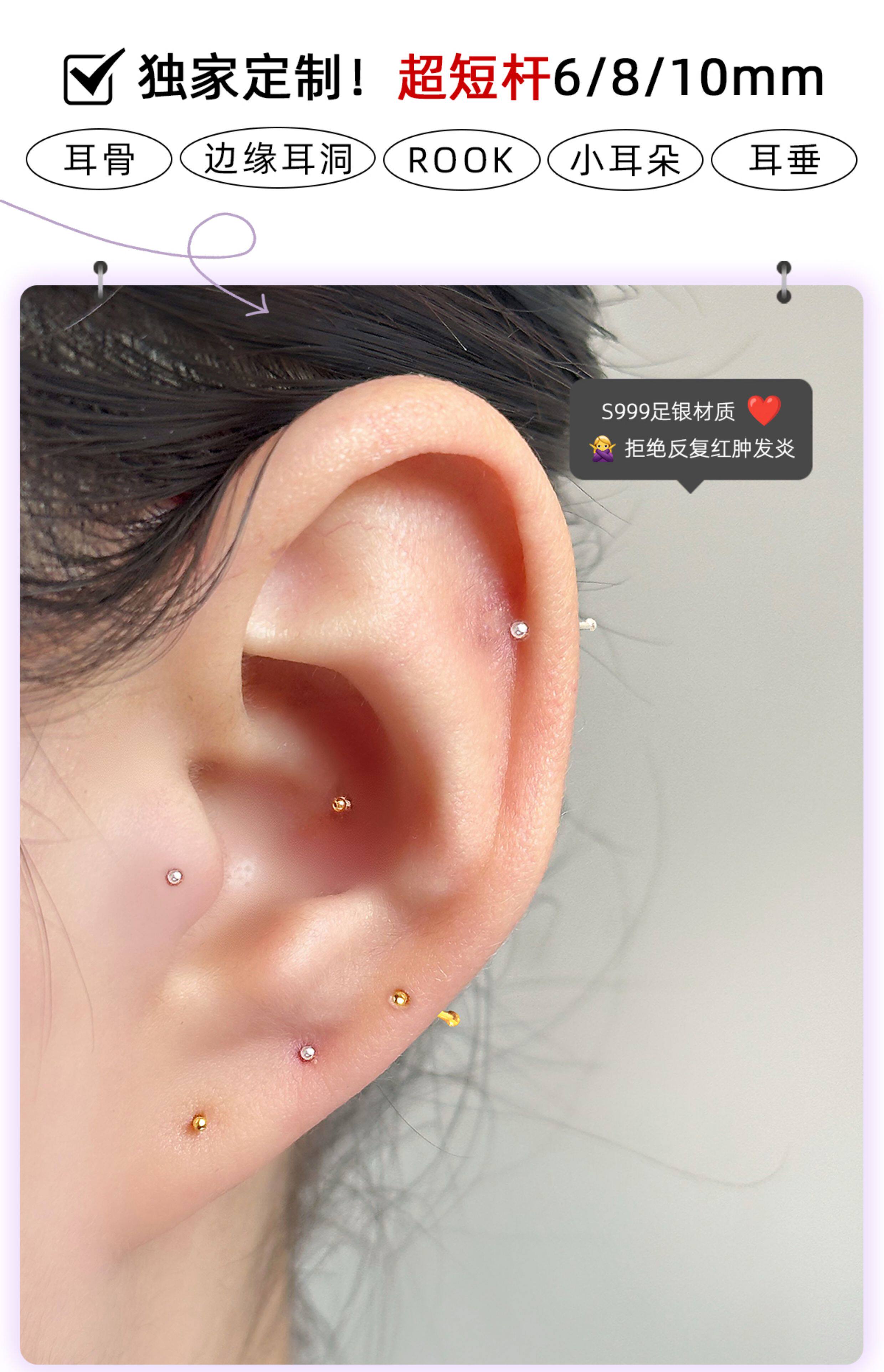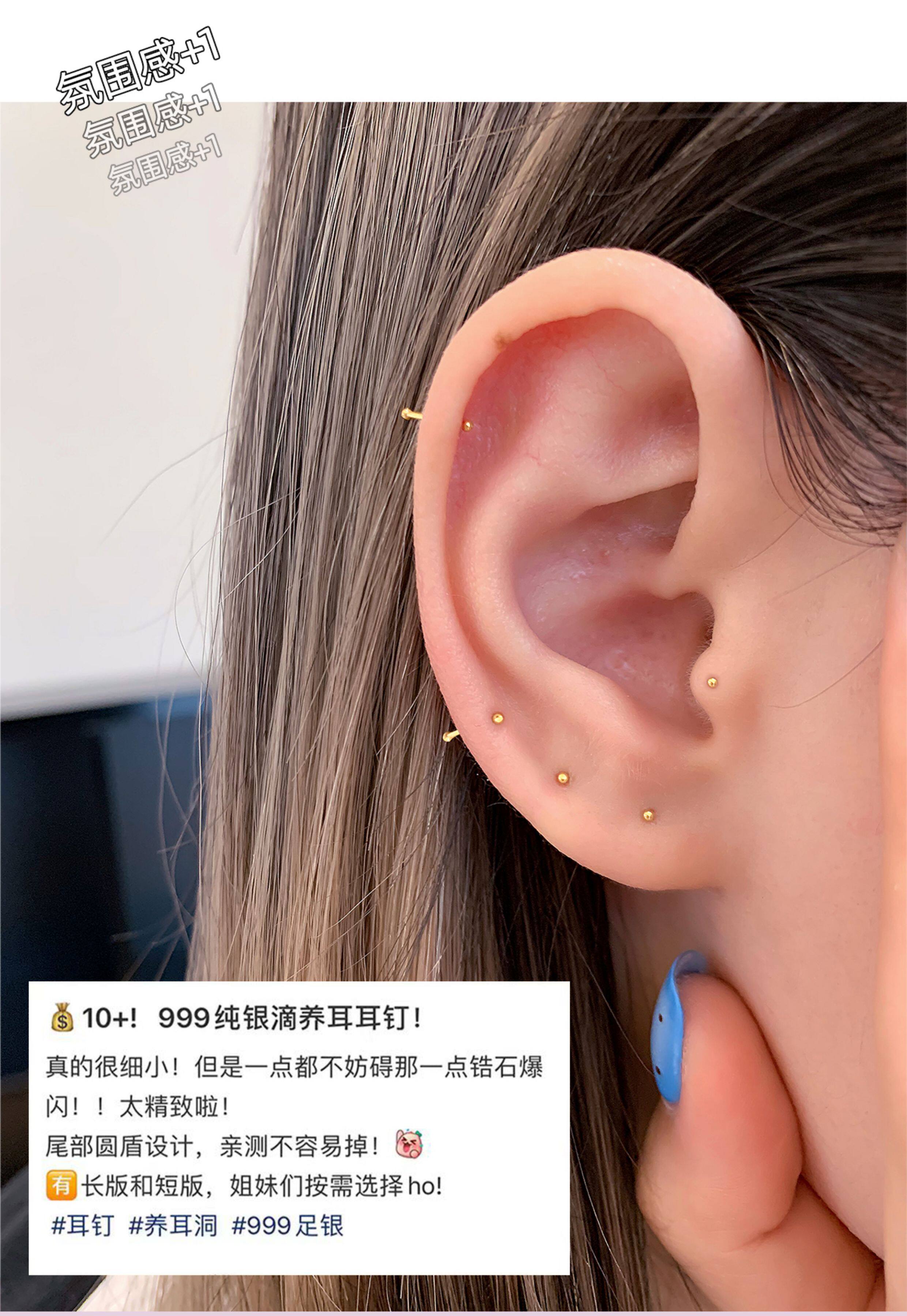 999 Pure Silver Earrings Mini Invisible Ear Piercing Anti-Clogging Ear Bone Studs Exquisite Small Ear Care Sticks Cochlear Studs for Students