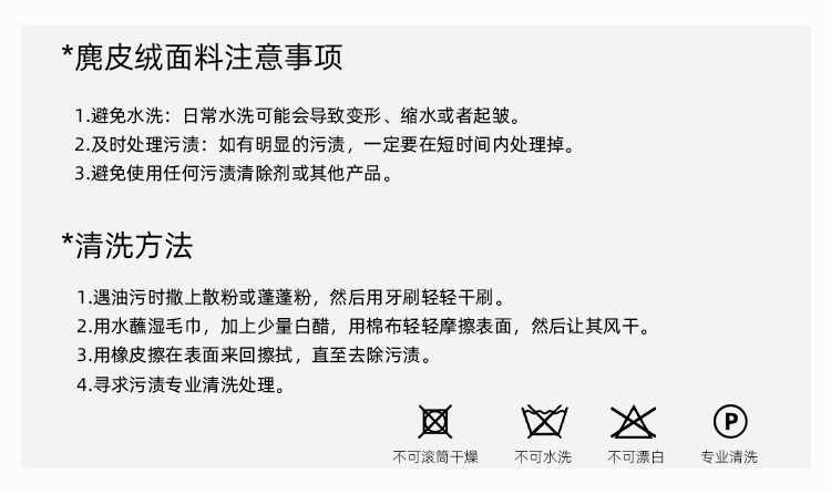 | 干洗/冷水轻柔手洗/禁止机洗/不可浸泡漂白/避免暴晒/平铺晾晒 | ||||