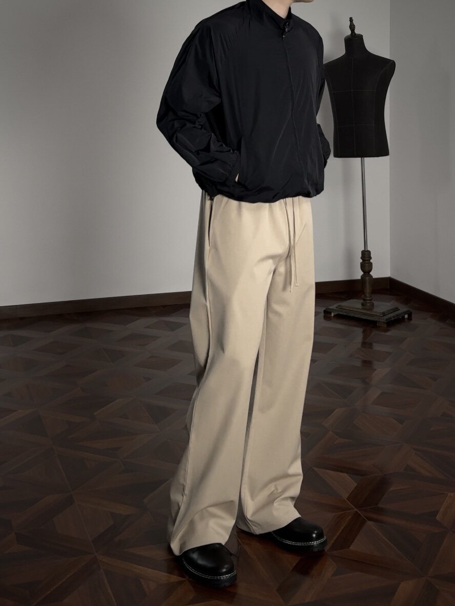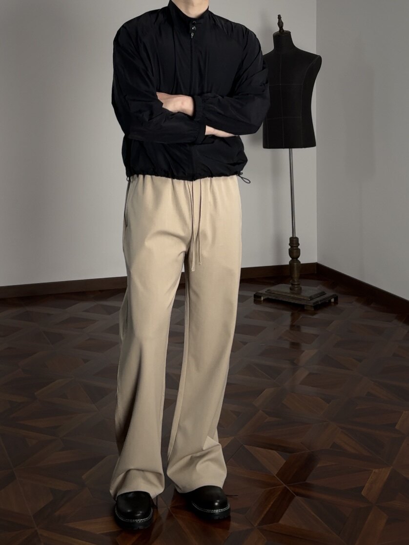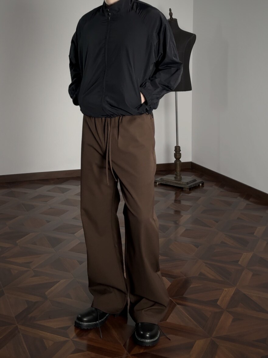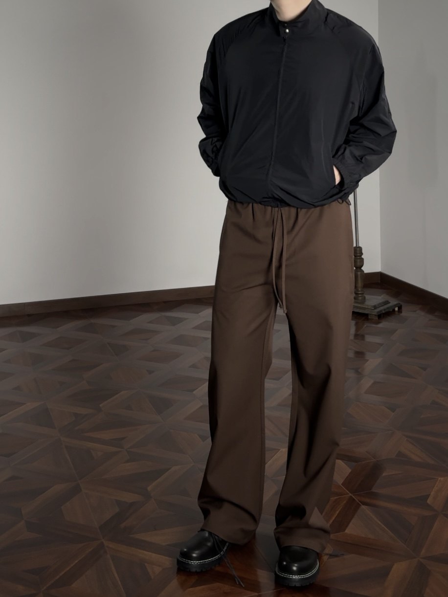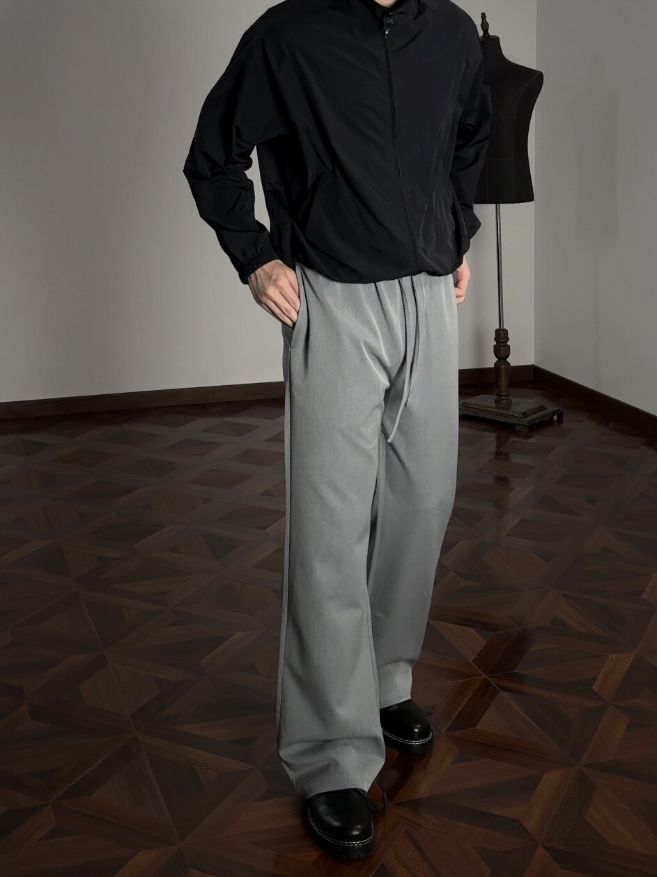 Oclin Single-Piece Straight-Leg Dress Pants, Lazy-Fit, Slightly Loose, Drawstring, Elastic Waistband, Wrinkle-Resistant, Anti-Pilling Tr, Available in Five Colors