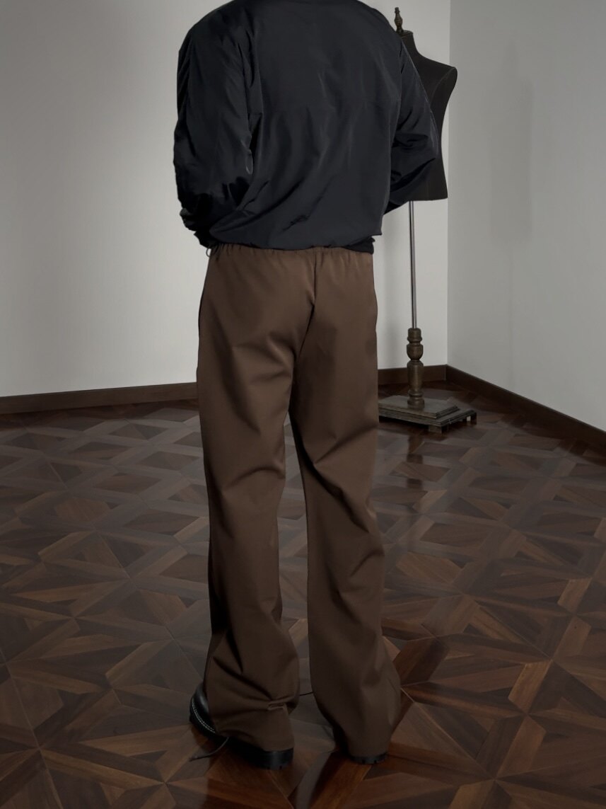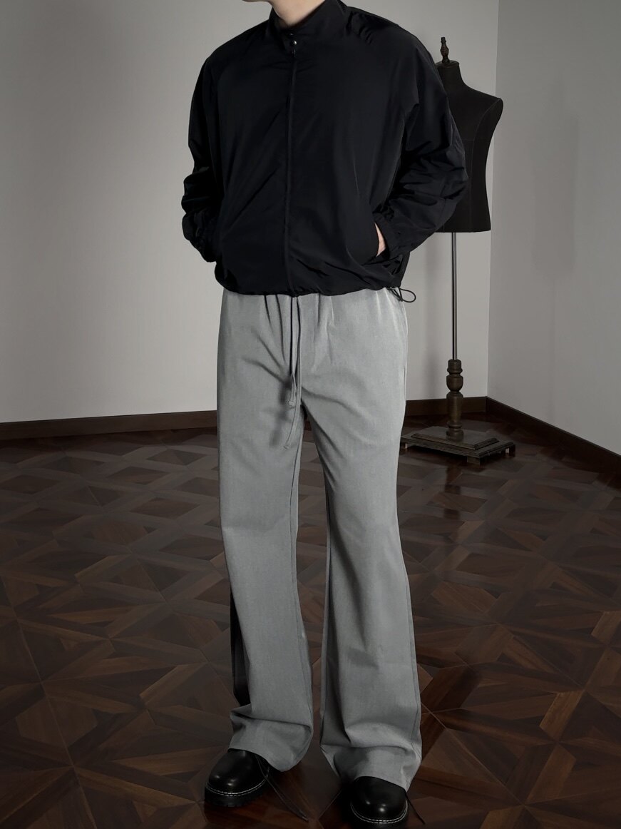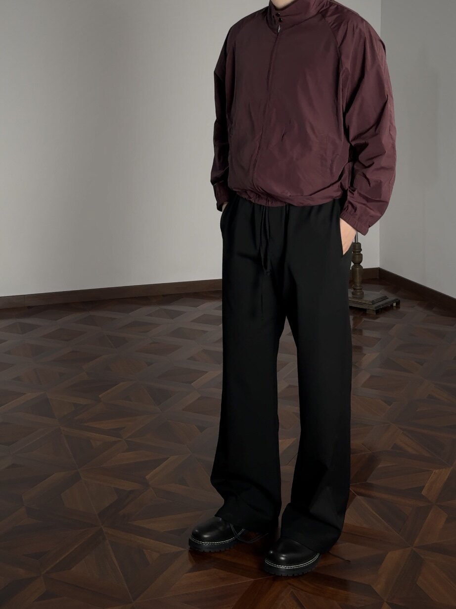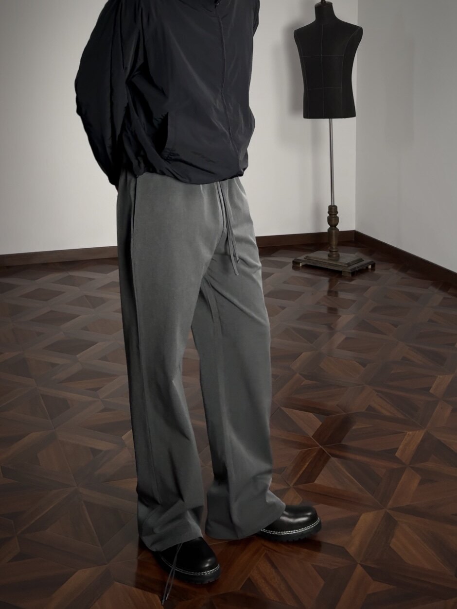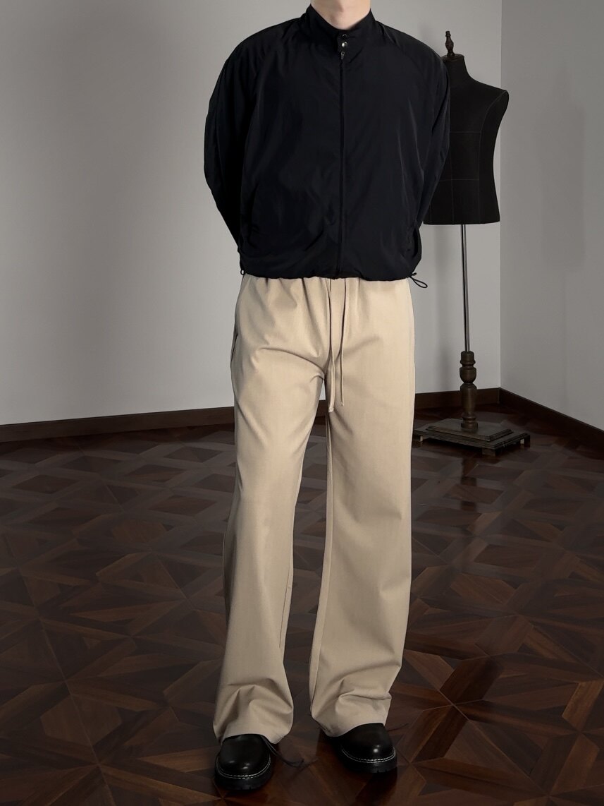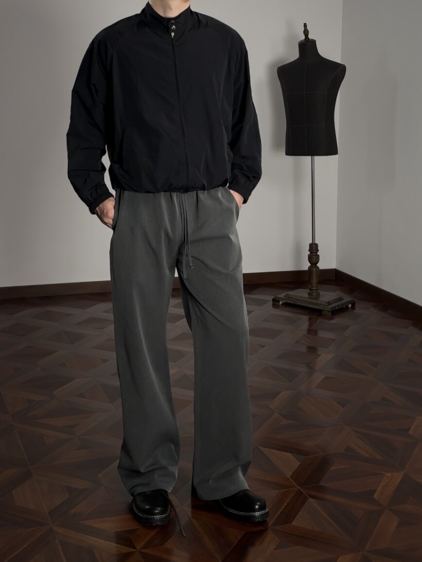 Oclin Single-Piece Straight-Leg Dress Pants, Lazy-Fit, Slightly Loose, Drawstring, Elastic Waistband, Wrinkle-Resistant, Anti-Pilling Tr, Available in Five Colors