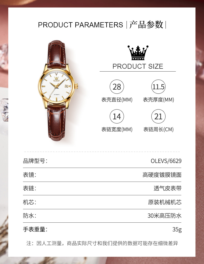 Swiss 2025 New Arrival Watch Famous Brand Authentic Women's Watch Women's Mechanical Watch Women's Automatic Light Luxury Minority