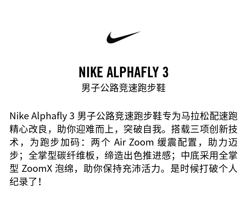 Nike Official Alphafly 3 Men's Road Racing Professional Running Shoes Summer Marathon Fd8311