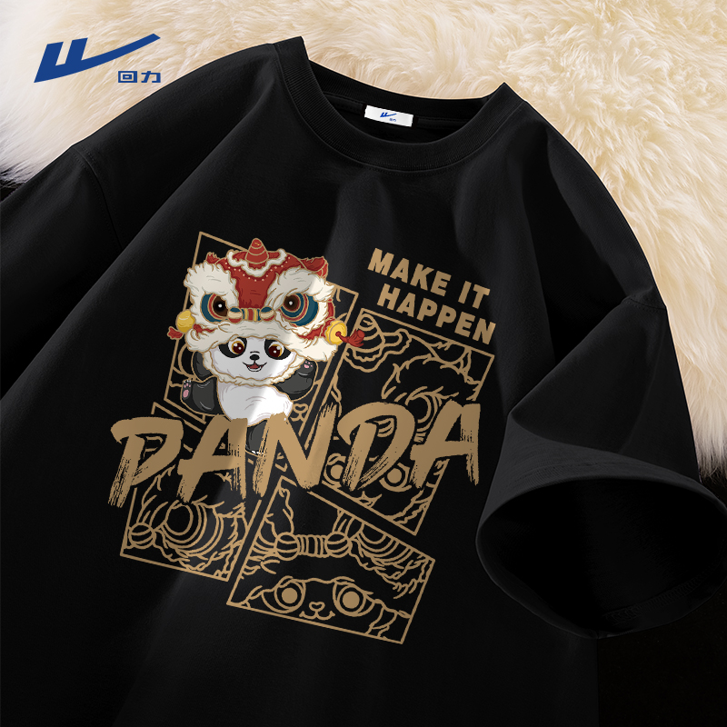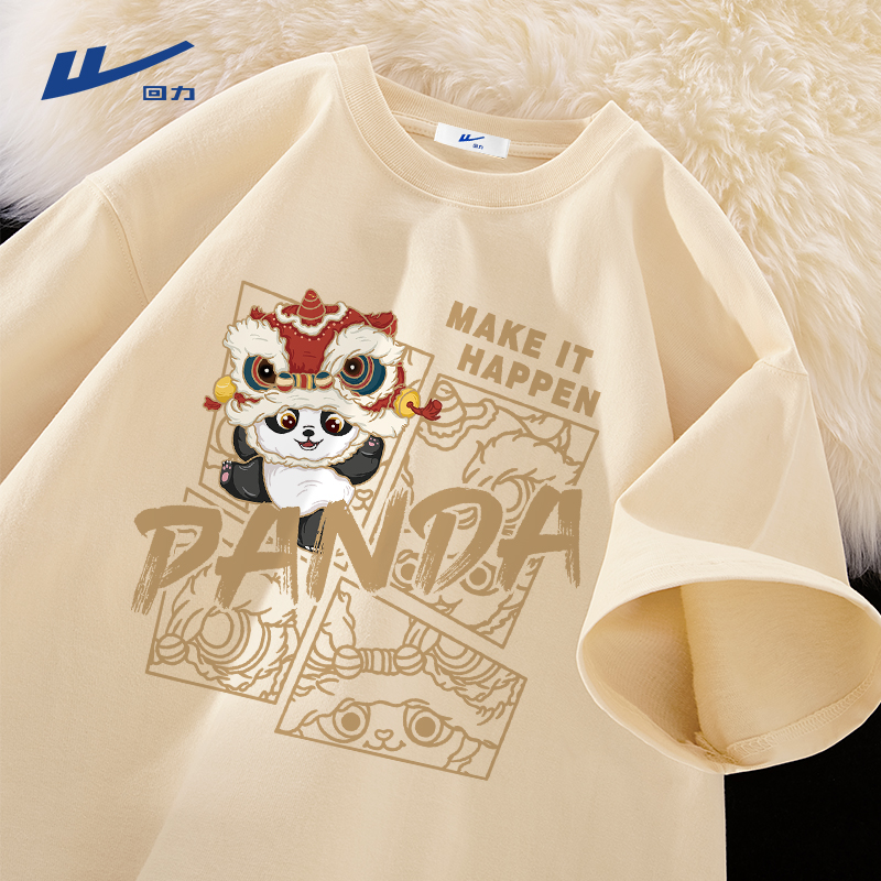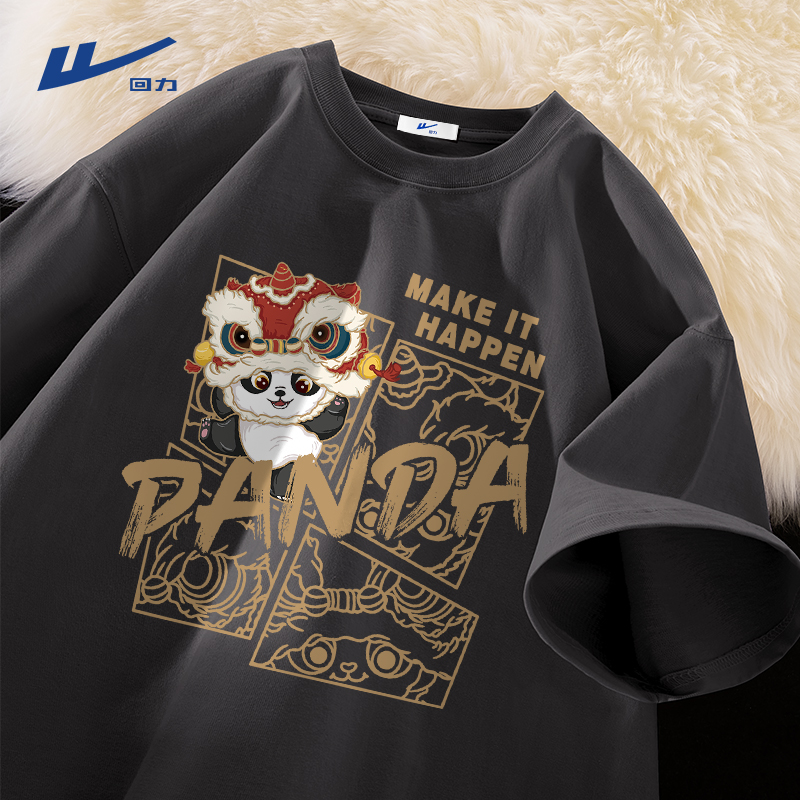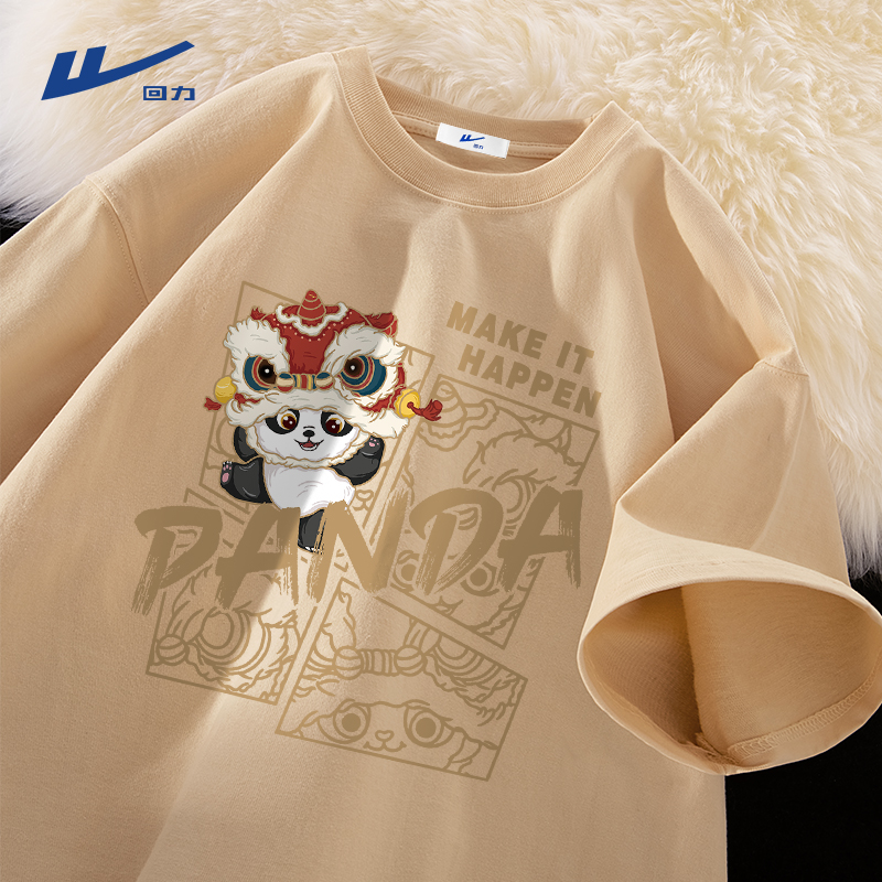 Pull Back T-Shirt Men's Loose 2025 New arrival Chinese Fad Lion Half Sleeve Summer Men Heavy weight pure cotton Short Sleeve Men a
