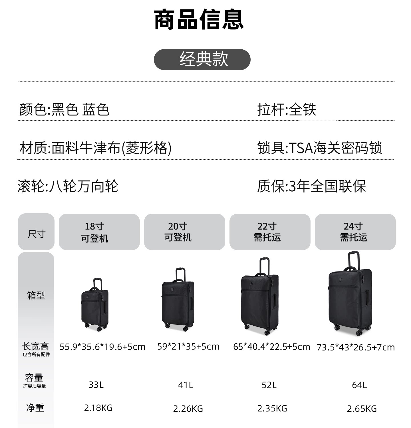 Oxford Cloth Lightweight Luggage Trolley Travel Soft Case for Women 28inch Ultra-Lightweight Waterproof for Men