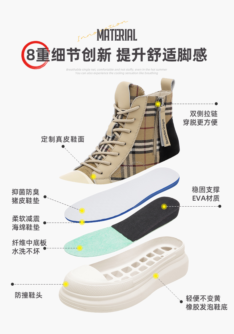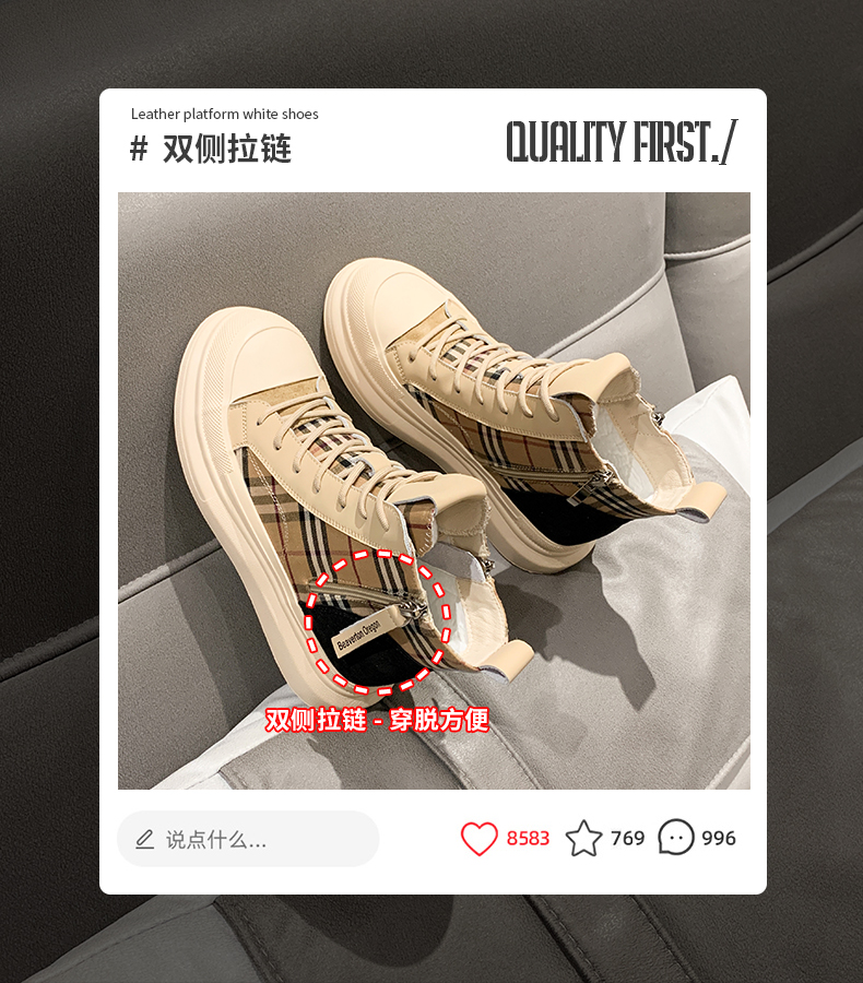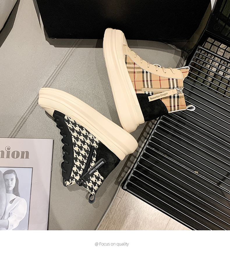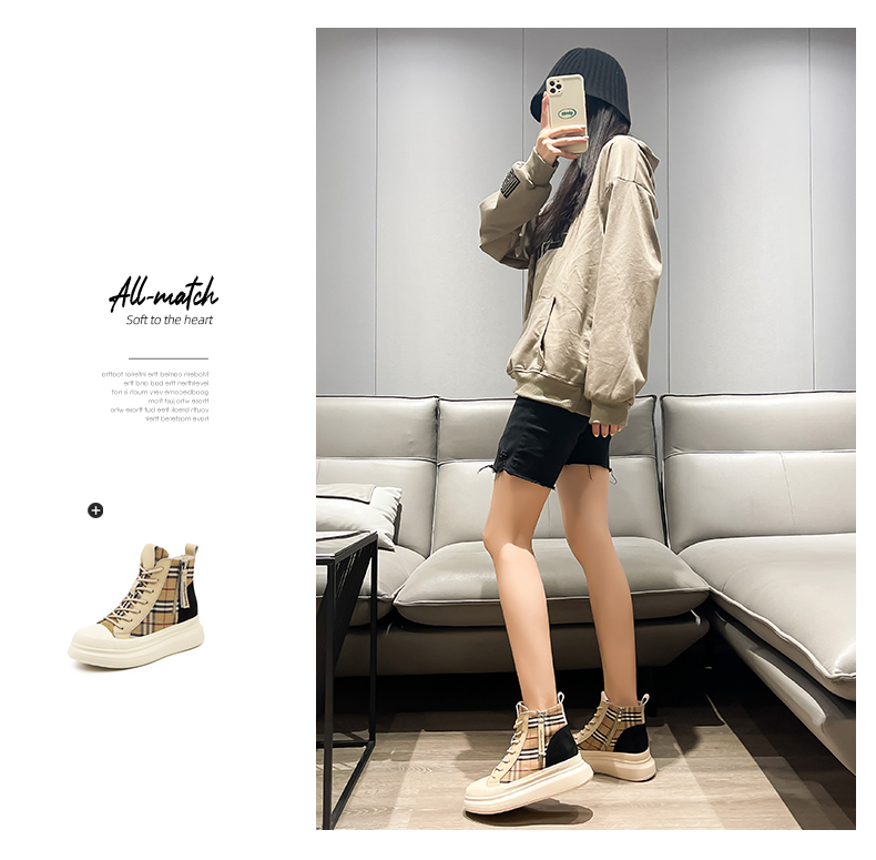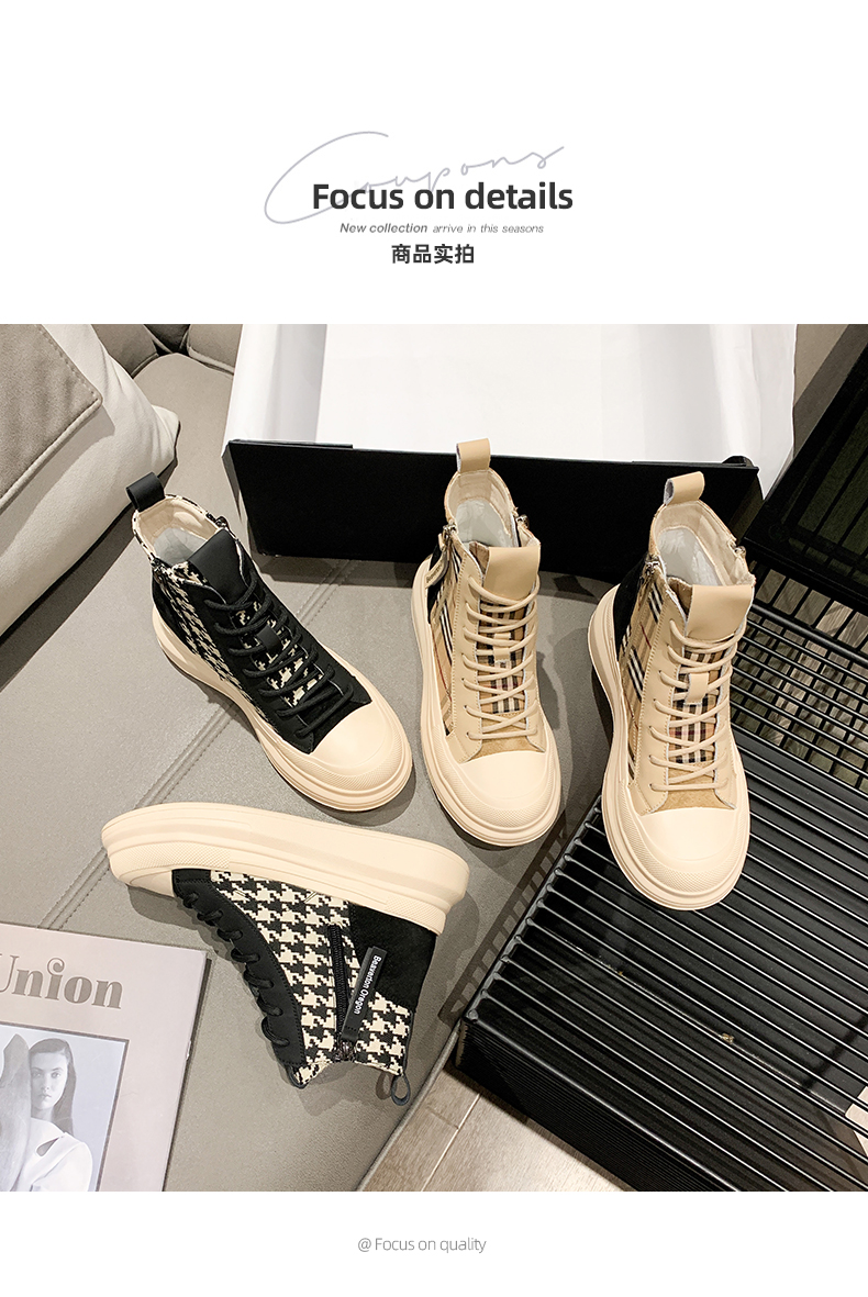 Hong Kong High-Top Canvas Shoes 2024 Spring & Fall New arrival K-style Women's Shoes Thick Sole Easiest for match Casual Sneakers Platform Shoes Sole Short Boots