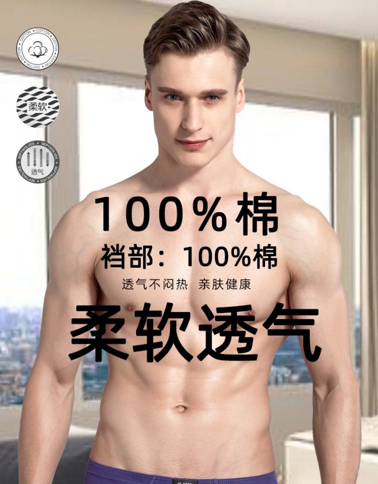 Men's Briefs, Pure Cotton Shorts, Breathable Cotton, Large Size, Mid-Waist, Loose Fit, All-Cotton, Young Men's Underwear