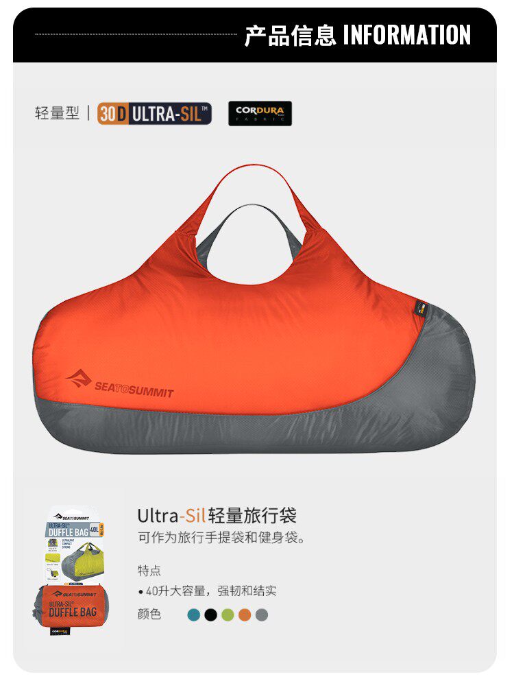 Sea to Summit Lightweight Travel Bag Waterproof Handbag Unisex Lightweight Travel Luggage Bag