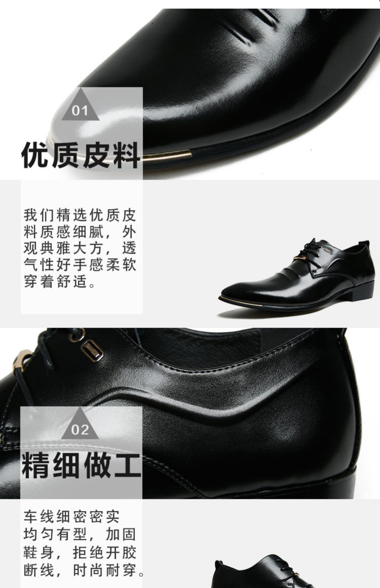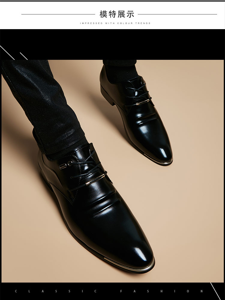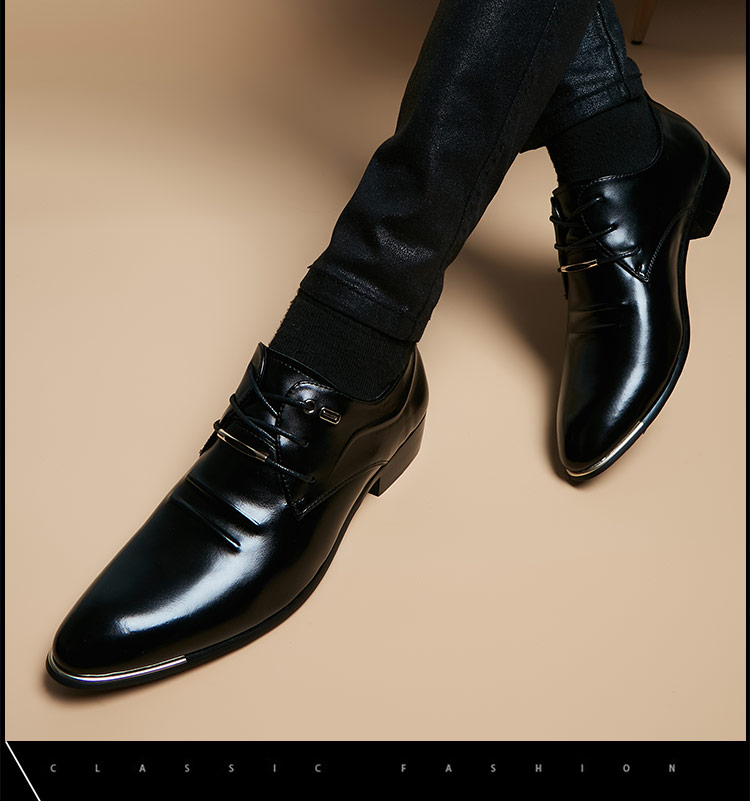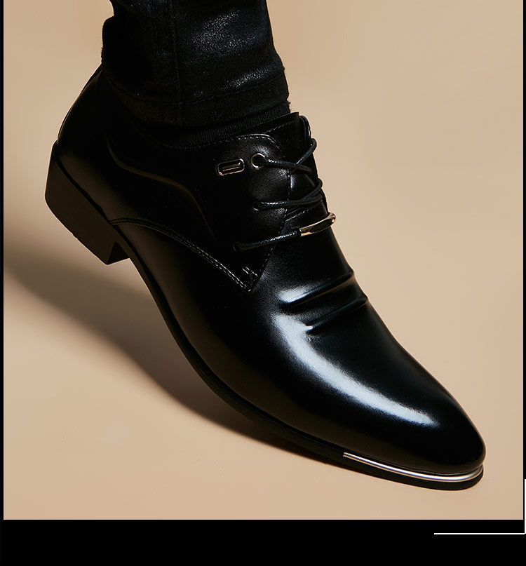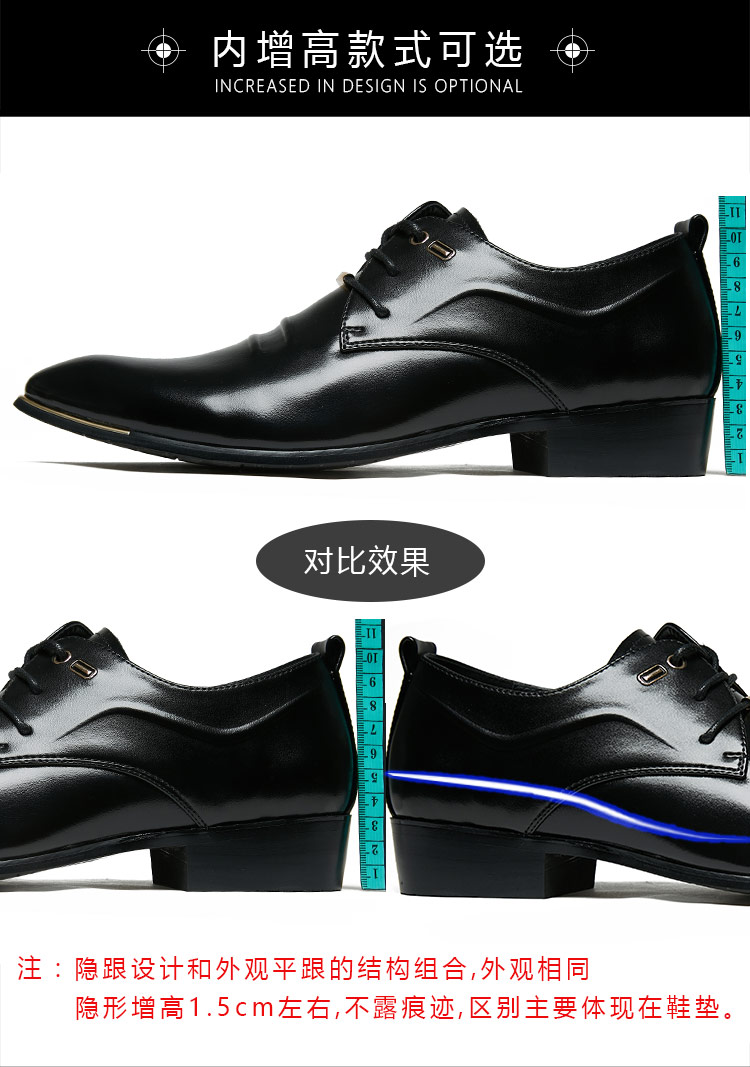 Italian Handmade Pointed Leather Shoes Men's Business Formal Wear 2024 New arrival British Trendy Casual Hidden Heel Genuine Leather Shoes