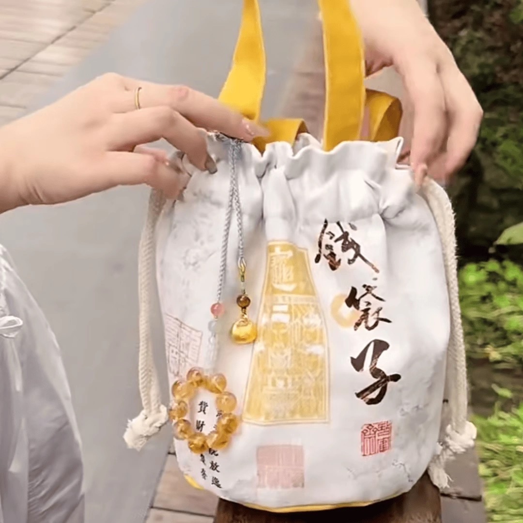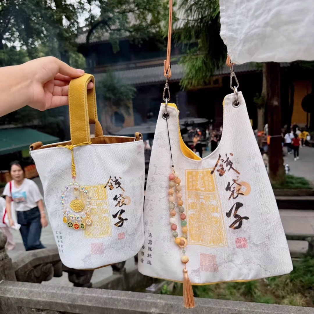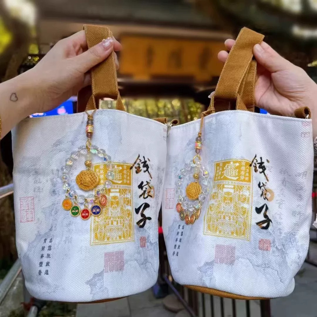 Hangzhou Official New arrival Money Bag Canvas Bag Bring In Wealth and Treasure Girls Crossbody Handbag Storage Bag Shoulder Bag