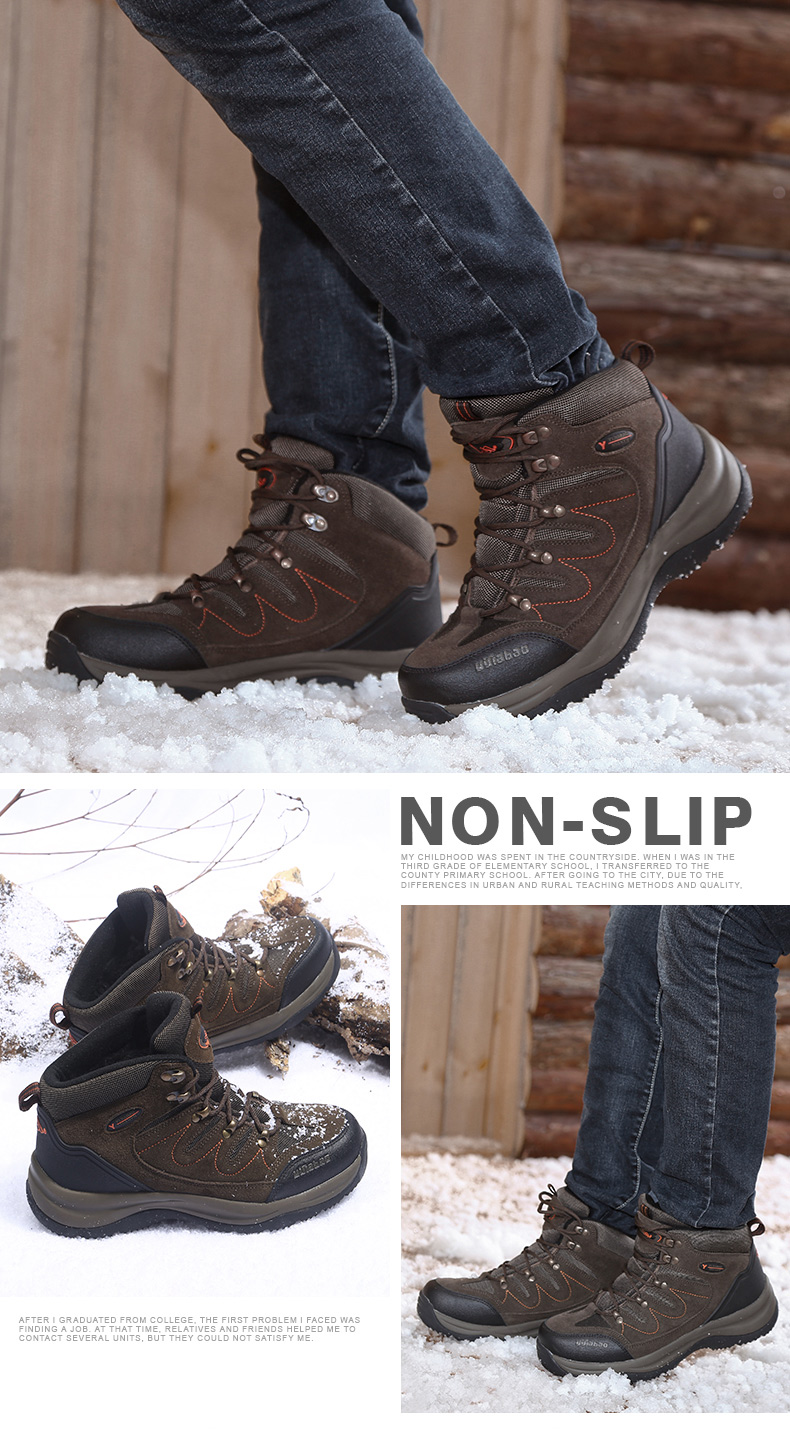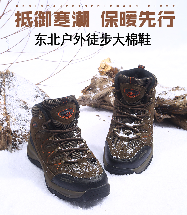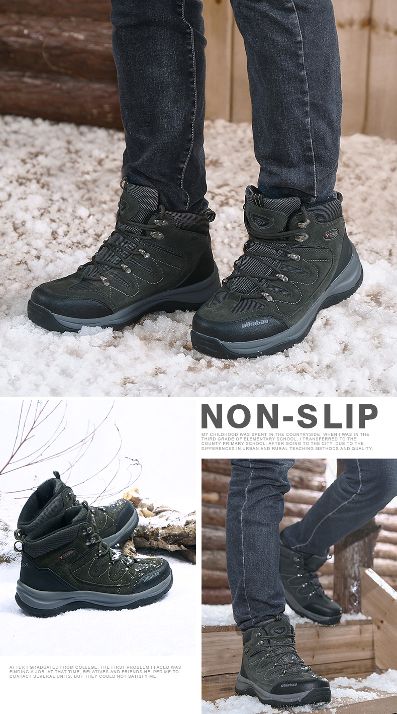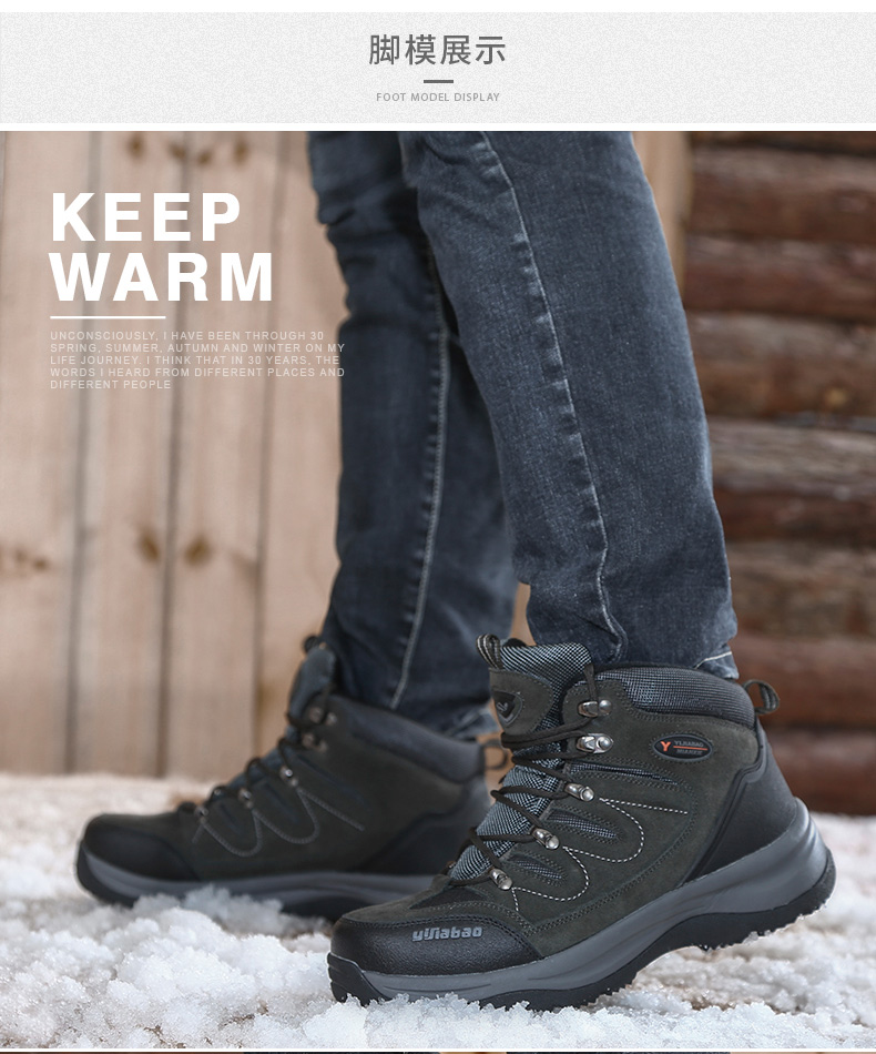 Yijia Bao Men's Cotton Shoes, Thickened and Fleece-Lined for Warmth, Outdoor Large Cotton Shoes, Northeast Non-Slip Rubber Sole, High-Top Hiking Shoes