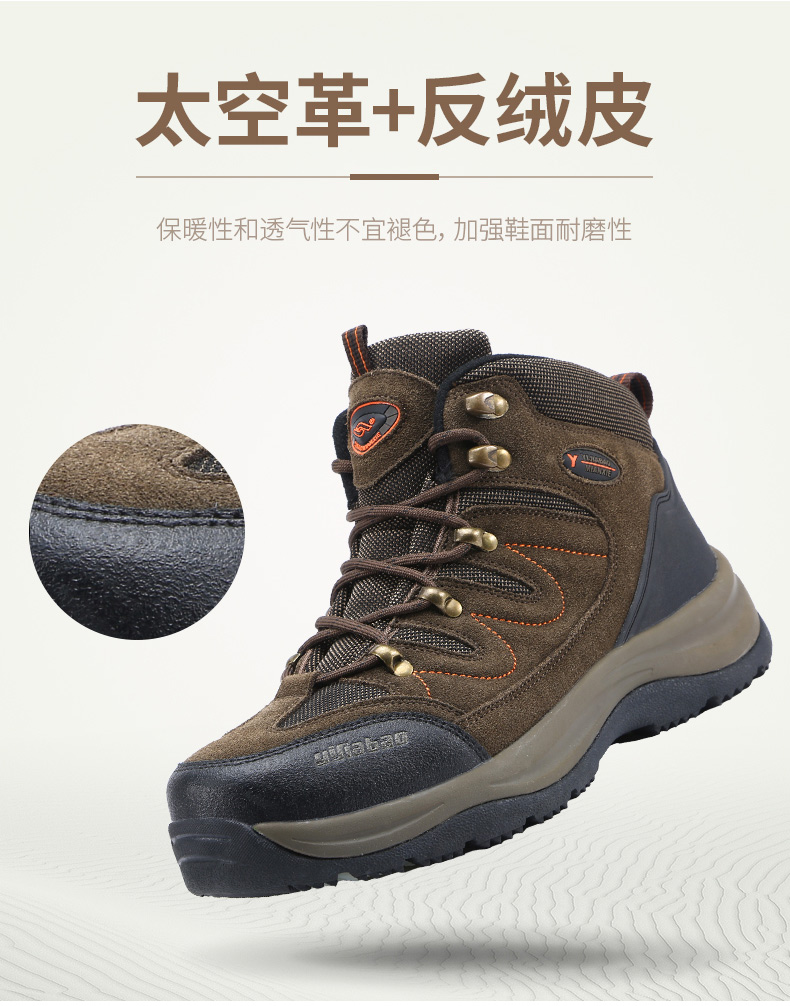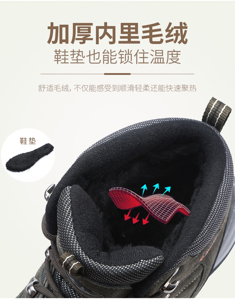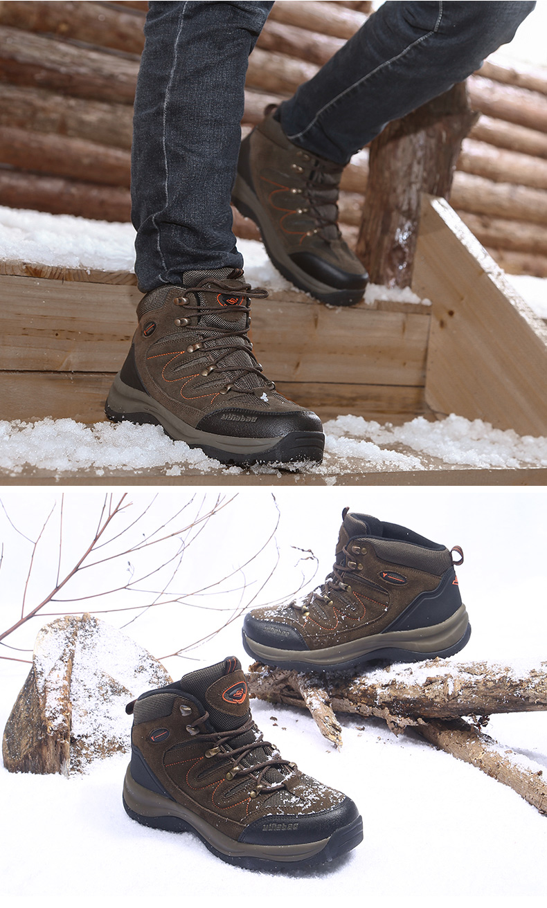 Yijia Bao Men's Cotton Shoes, Thickened and Fleece-Lined for Warmth, Outdoor Large Cotton Shoes, Northeast Non-Slip Rubber Sole, High-Top Hiking Shoes