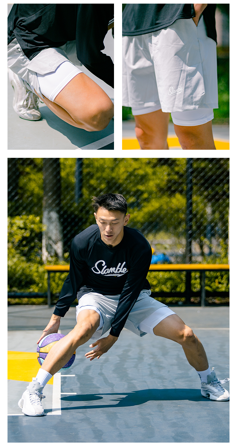 Slamble Summer New arrival American Fake Two-Piece Basketball shorts Men's Training Fitness Sports Running Pants and Half Pants