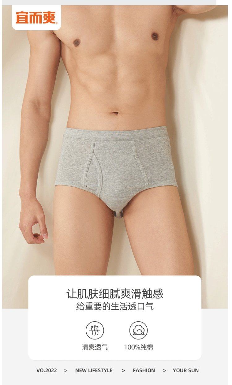 3 Pairs of Yiershuang Men's Underwear, Pure Cotton Briefs, Middle-Aged and Elderly, All-Cotton, Large Size, Loose, High-Waisted Red Underpants