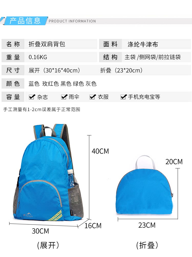 Outdoor Sports Foldableable Mountaineering Backpack Skin Bag Men's and Women's Backpack Waterproof Ultra-Lightweight Thin Summer Travel Bag