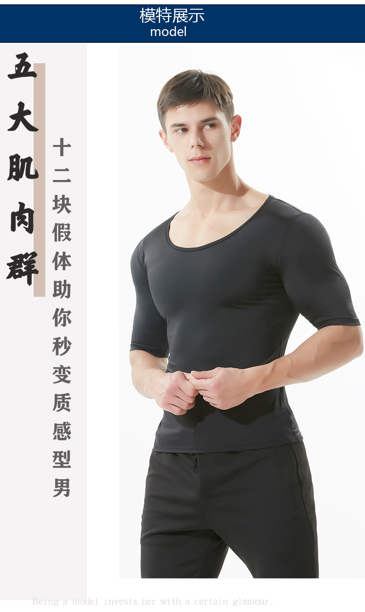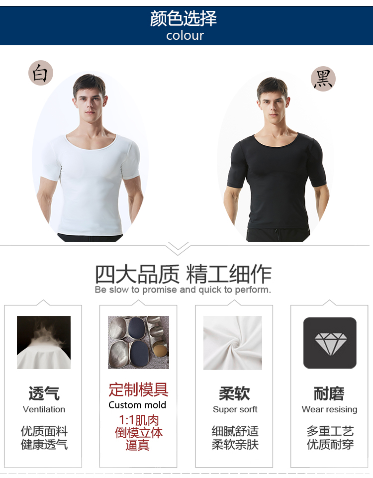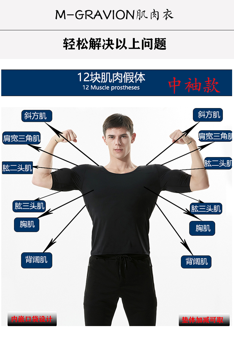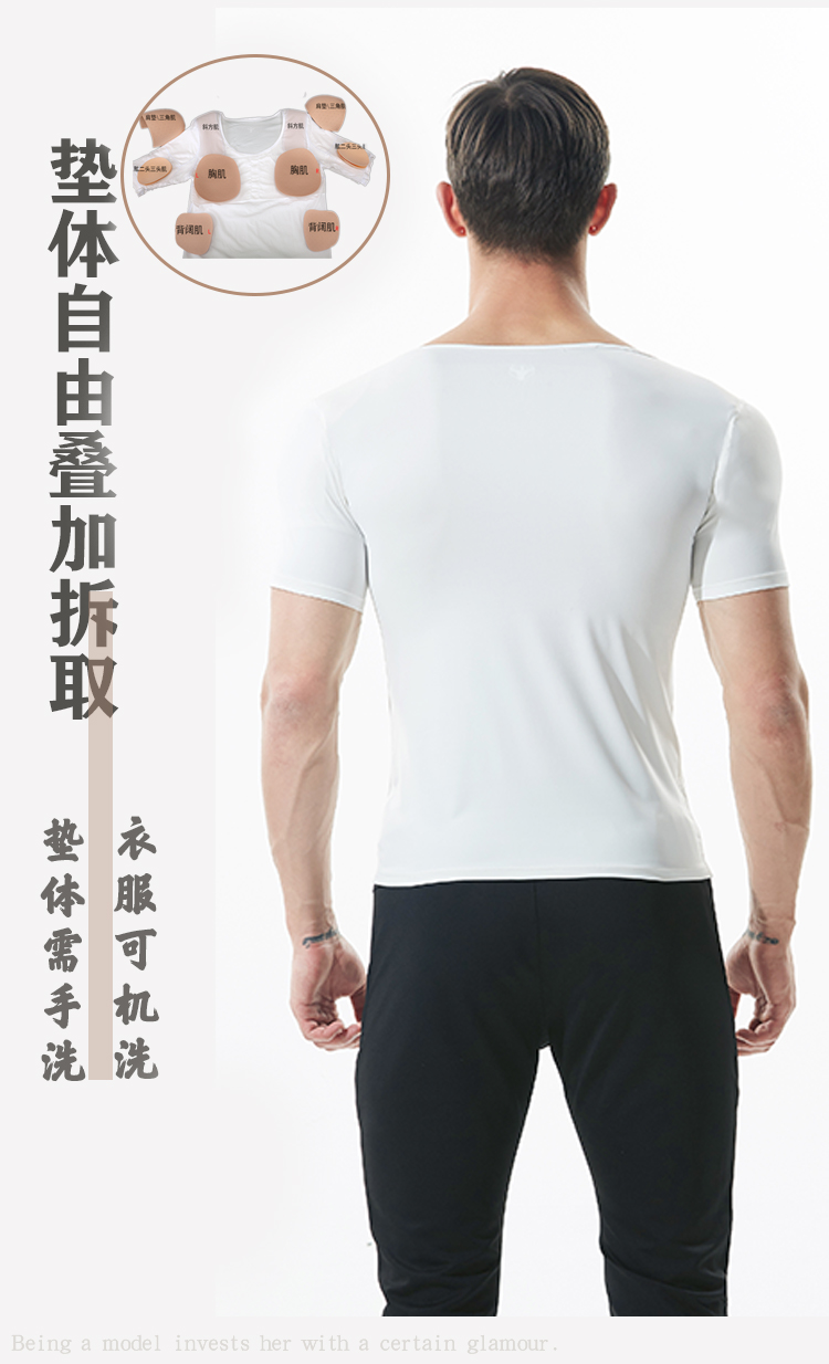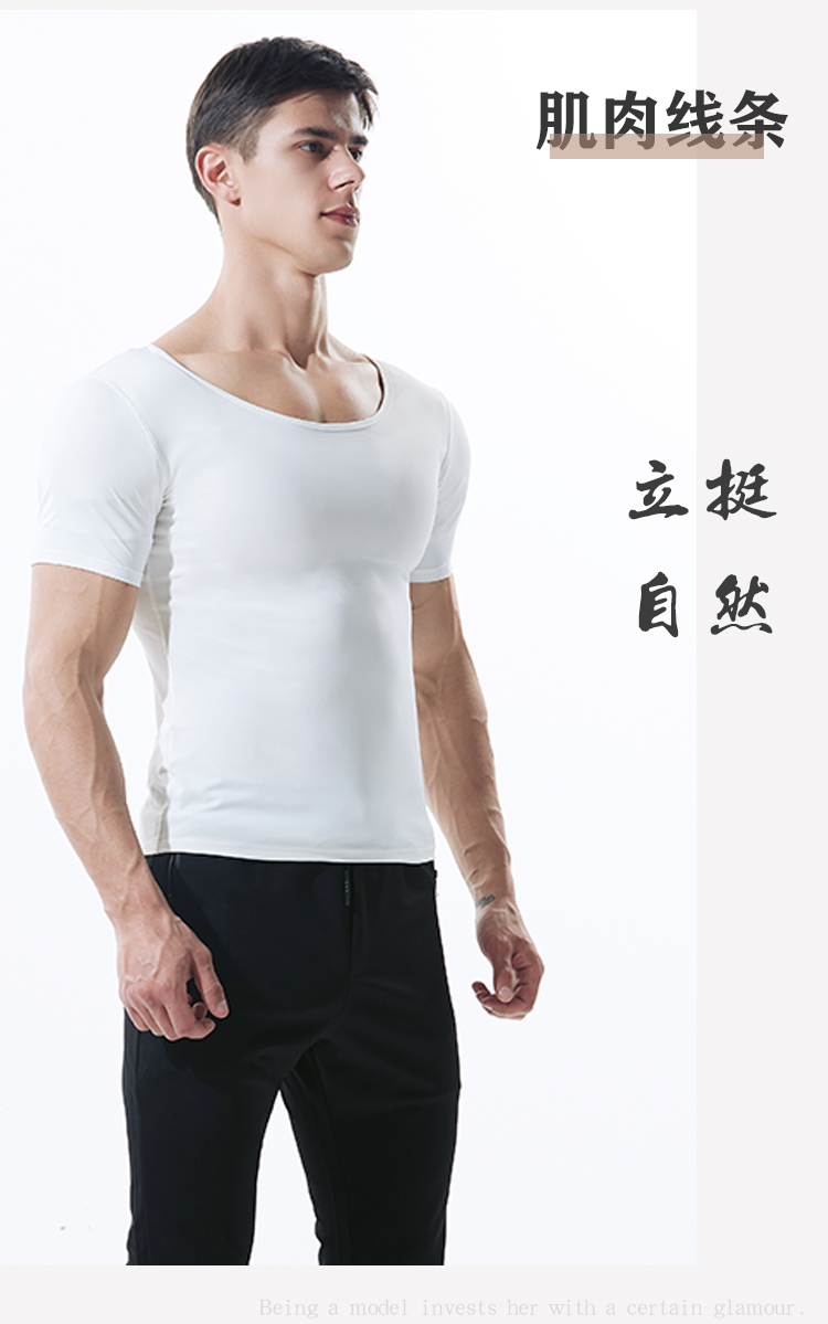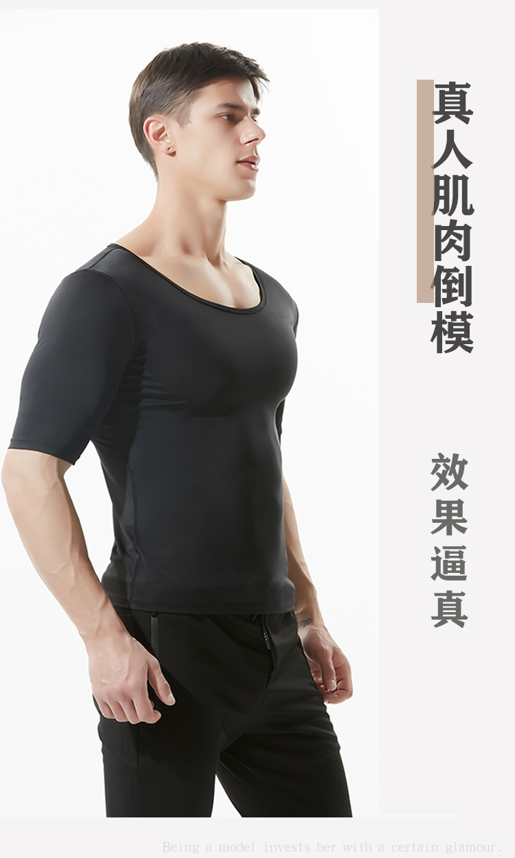 Shaping Men's Seamless Sponge Fake Muscle Underwear Vest with Right-Angle Shoulder Pads, Cosplay Muscle-Building and Weight-Gaining Tool, Chest Muscle T-Shirt