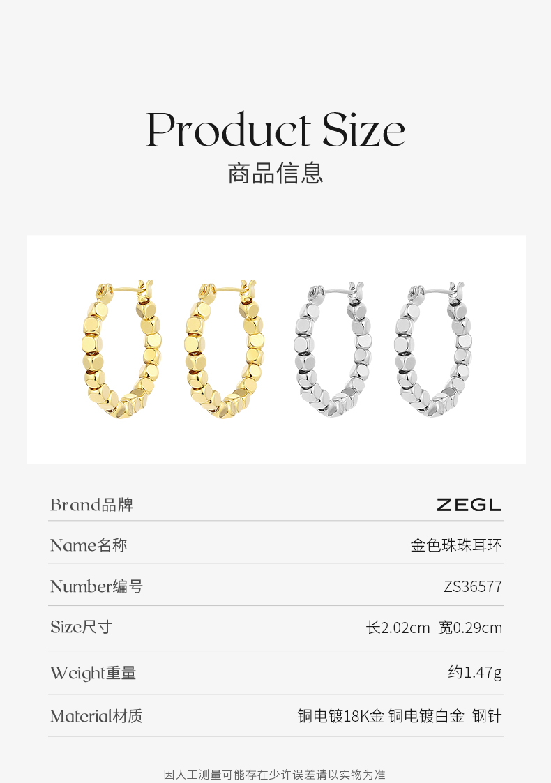 Zegl Small Sugar Cube Gold Earrings for Women French Small Square Earrings Fancy Earrings Ear Buckles Accessible Luxury Hoop Earrings