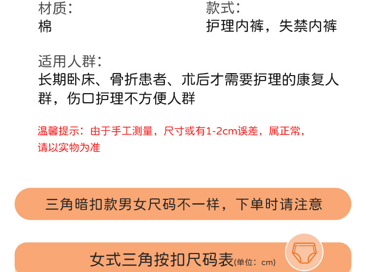 Easy-To-Wear and Take-Off Underwear for the Elderly, Bedridden Patients, Men and Women, Triangle Snap-On Style, Pure Cotton, Breathable Maternity Underwear