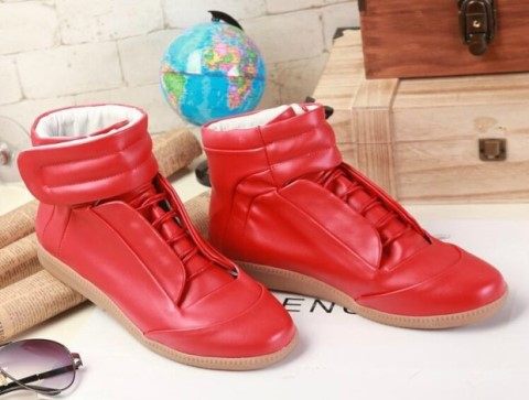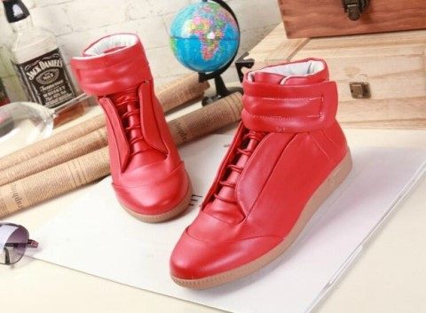 European and American New Style Red Men's Casual Shoes Flat-Soled Velcro Couple High-Top Shoes Foreign Trade Men's Shoes White