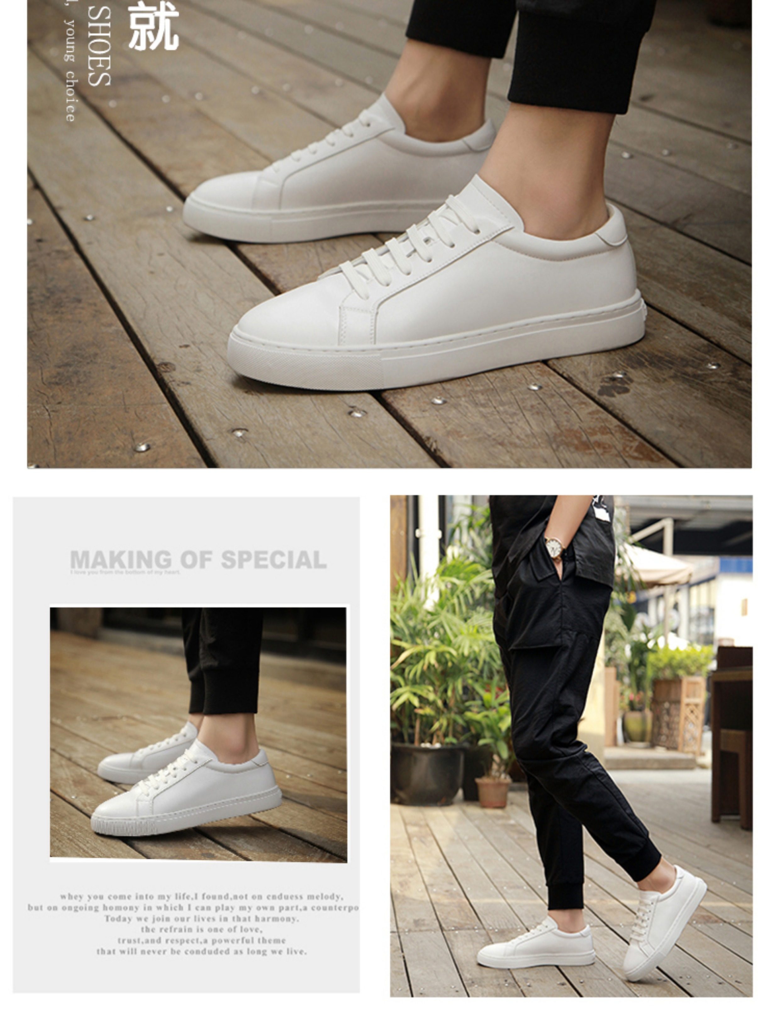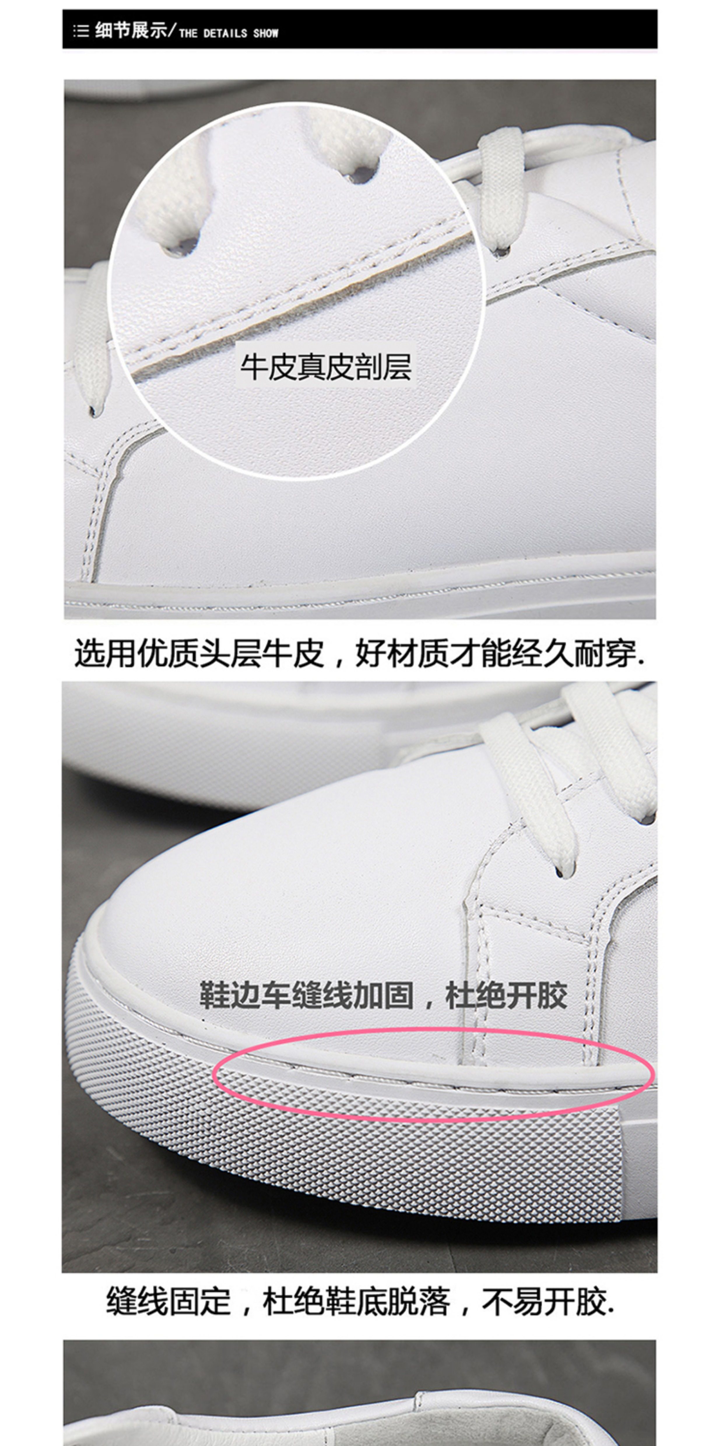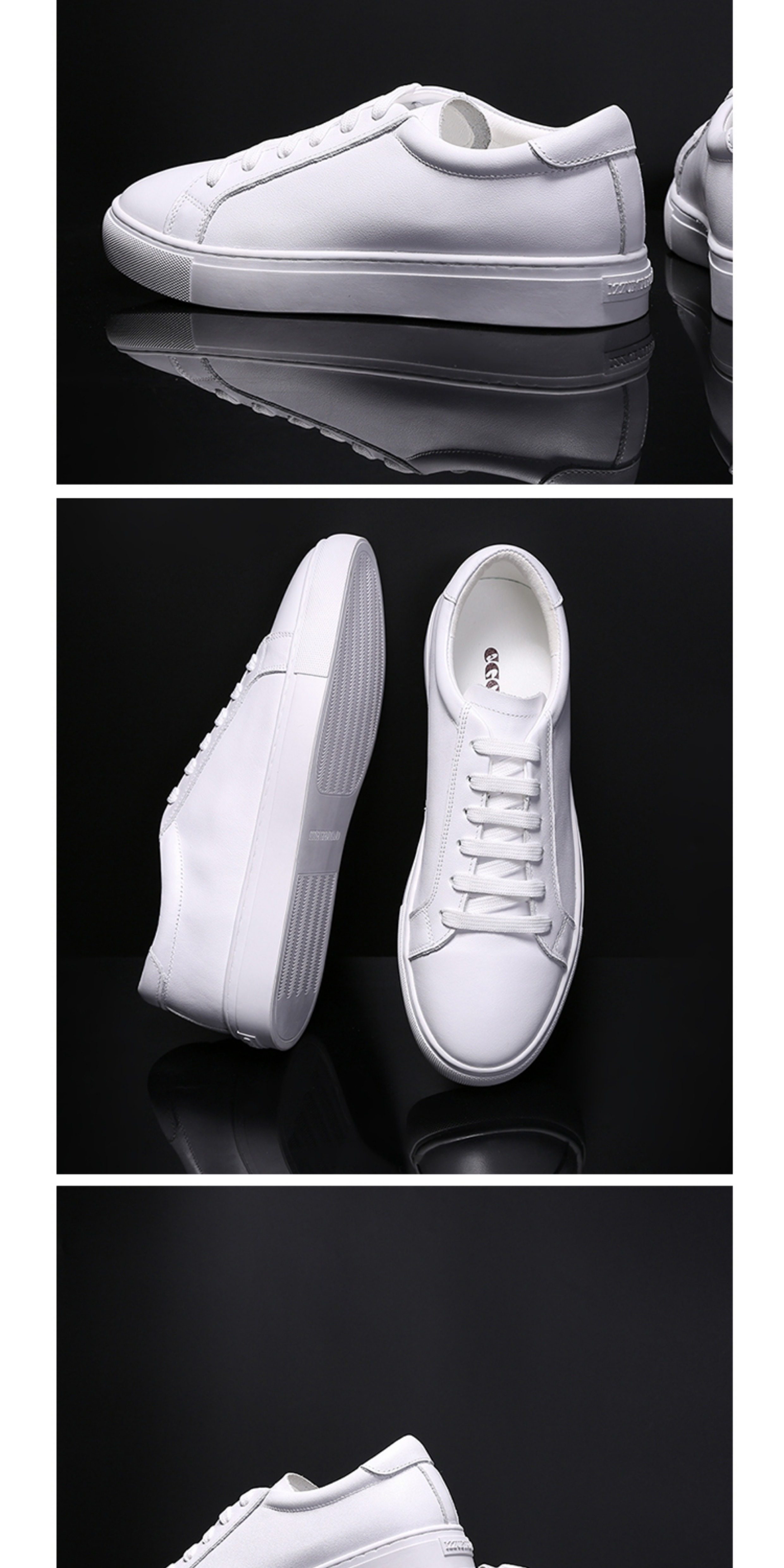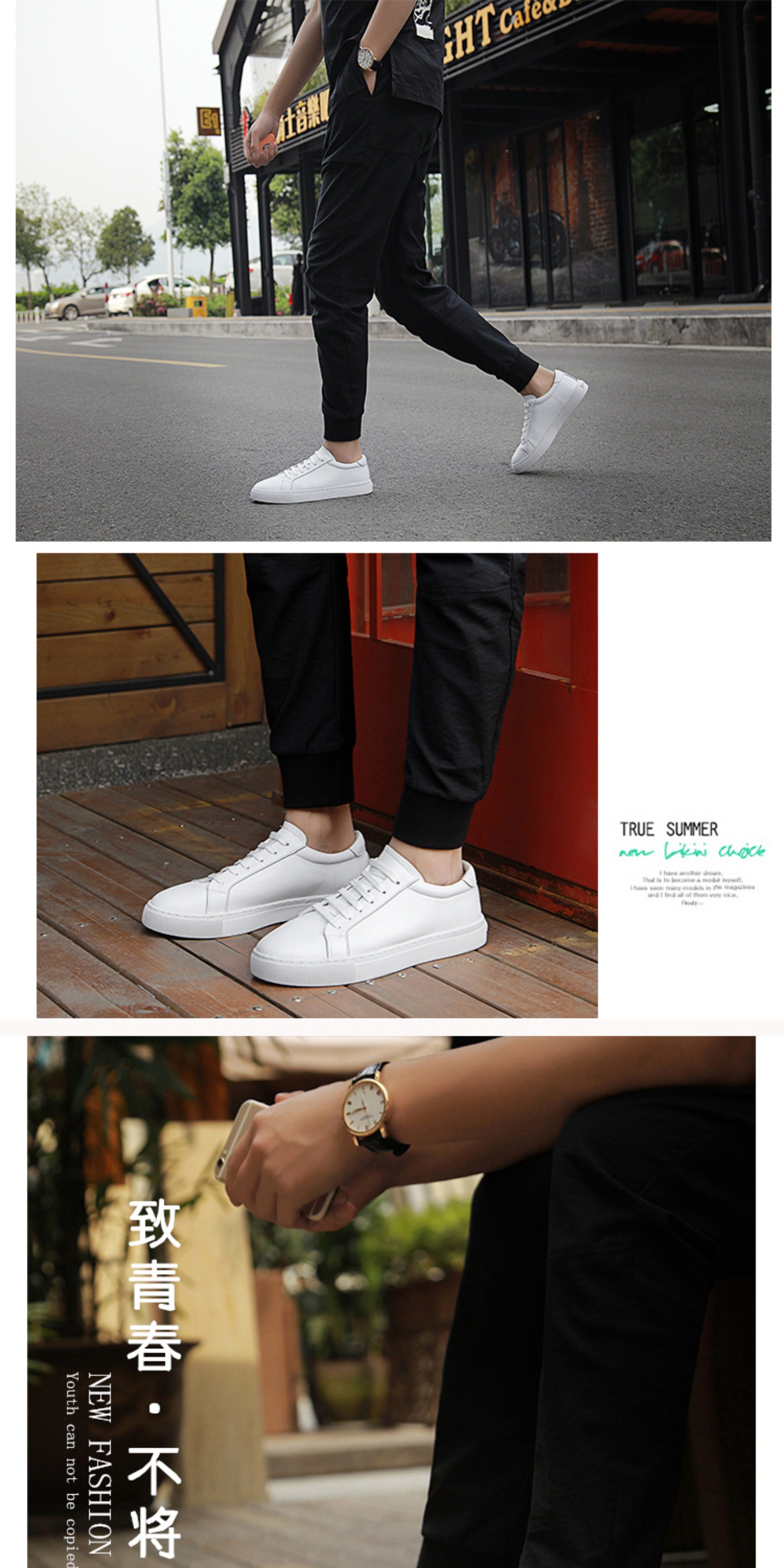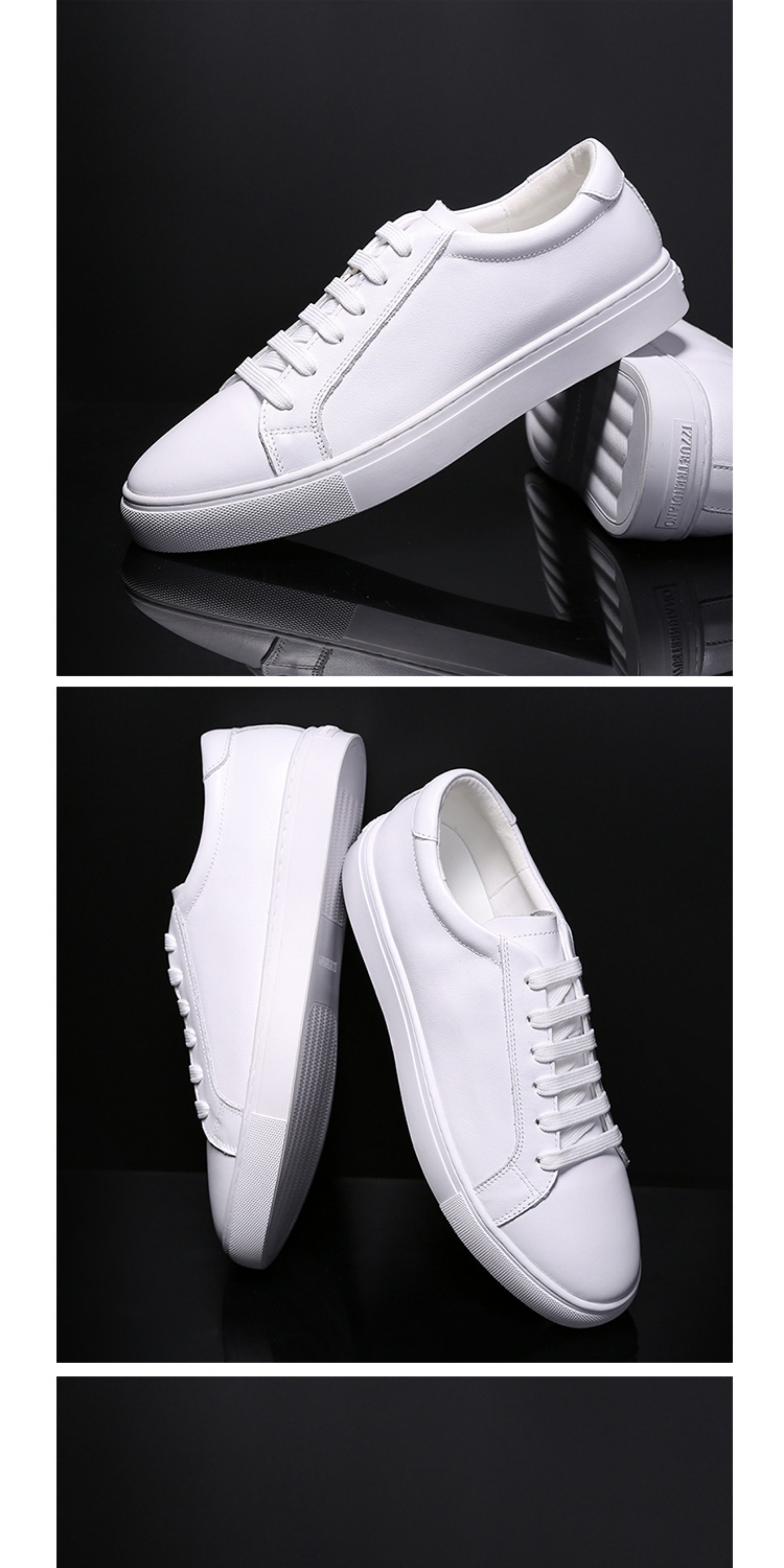 Autumn Men's Shoes, Breathable Genuine Leather White Shoes, Men's Korean Style Flat White Shoes, Trendy and Versatile, Suitable for Suits, Casual White Sneakers