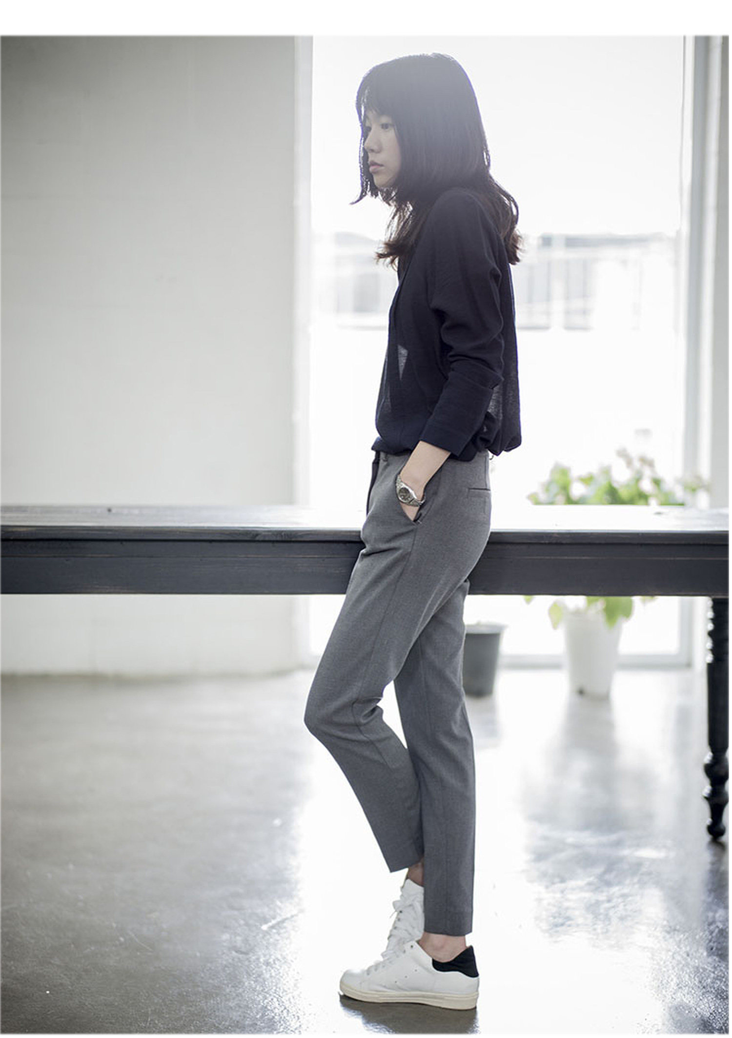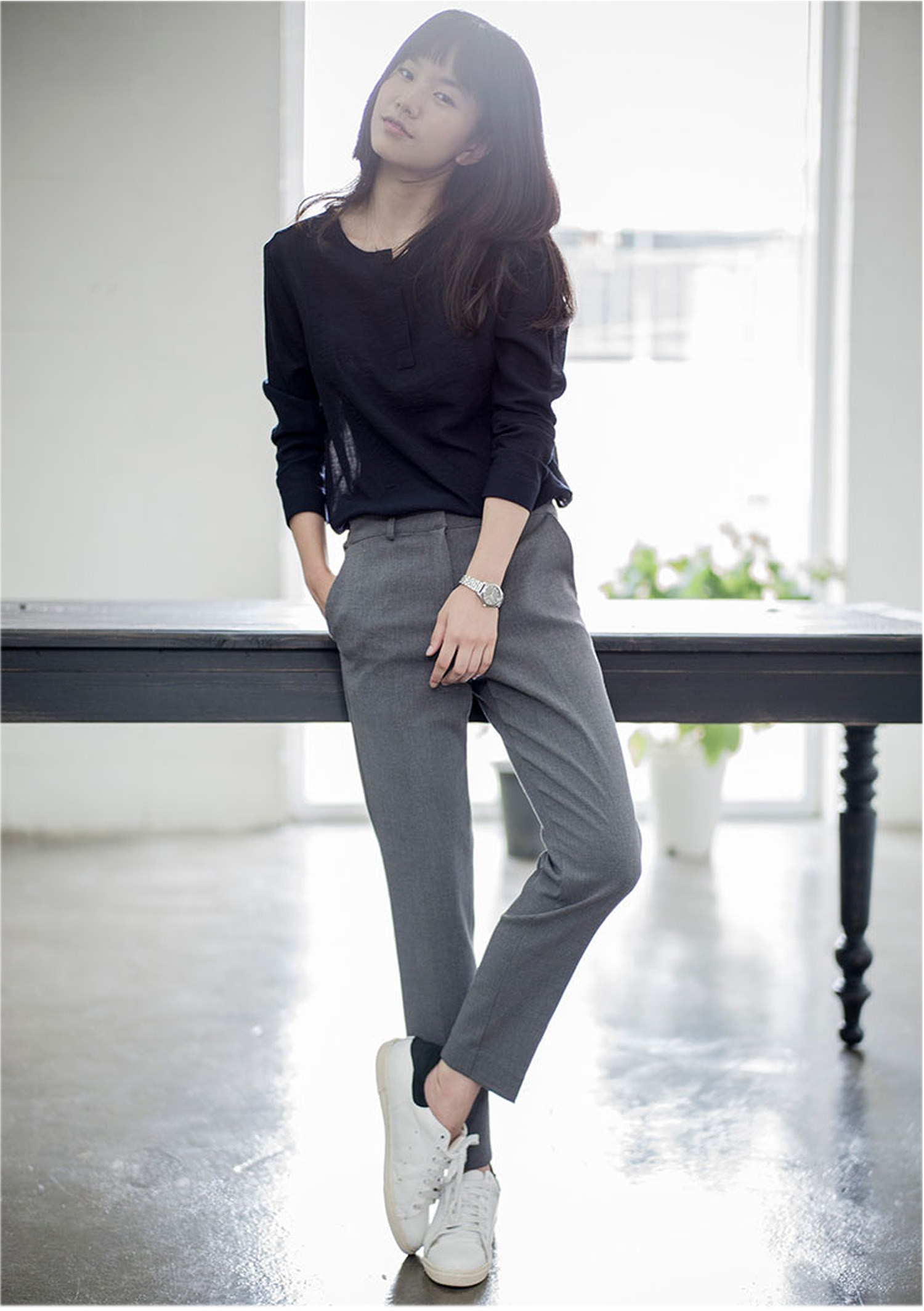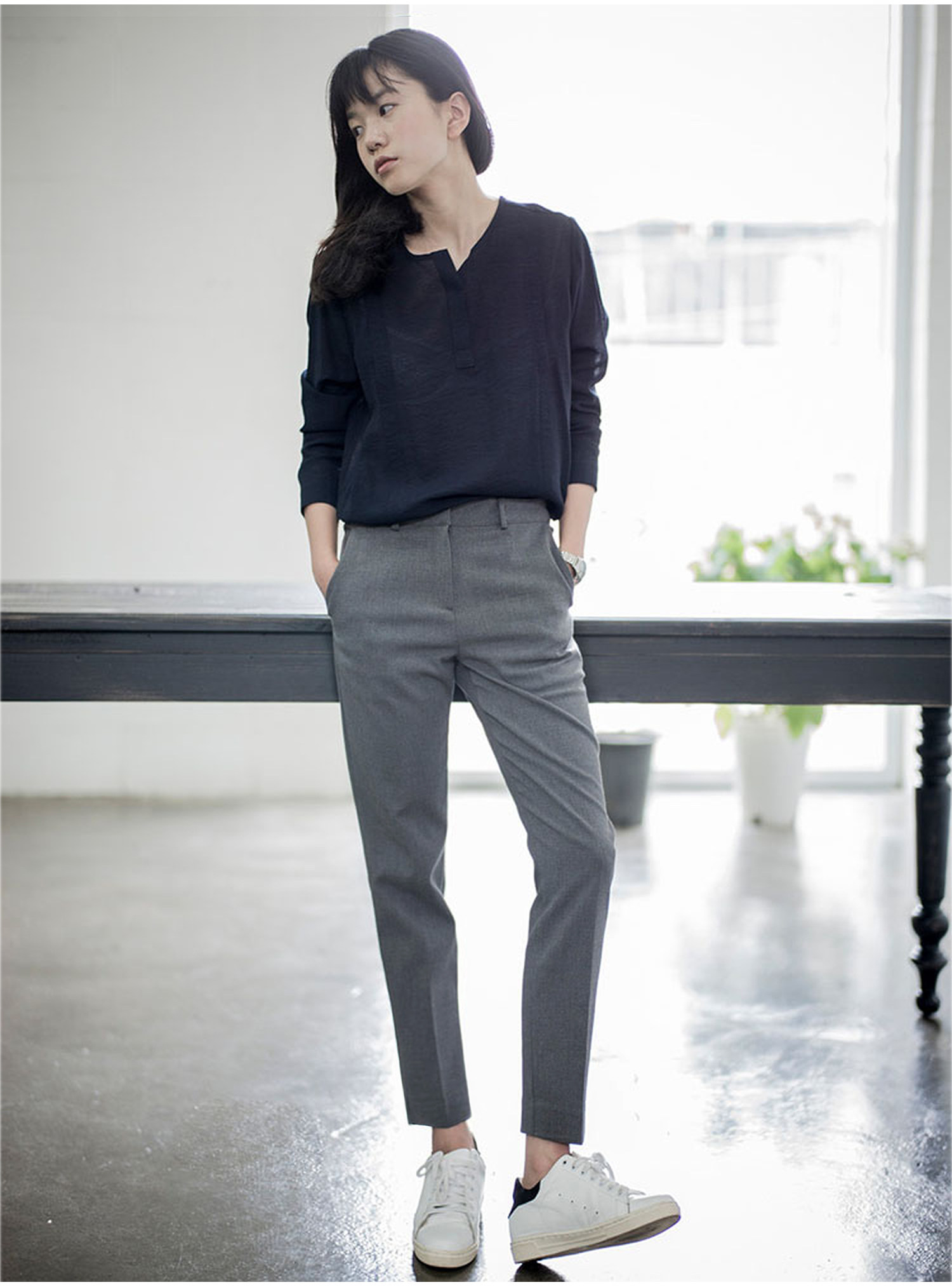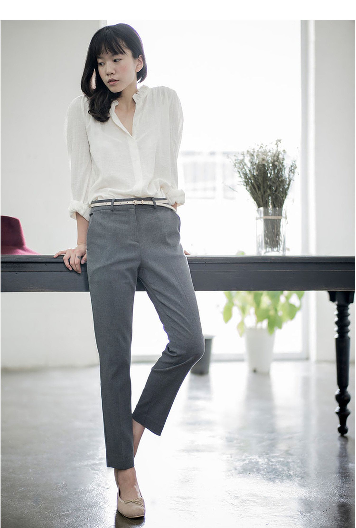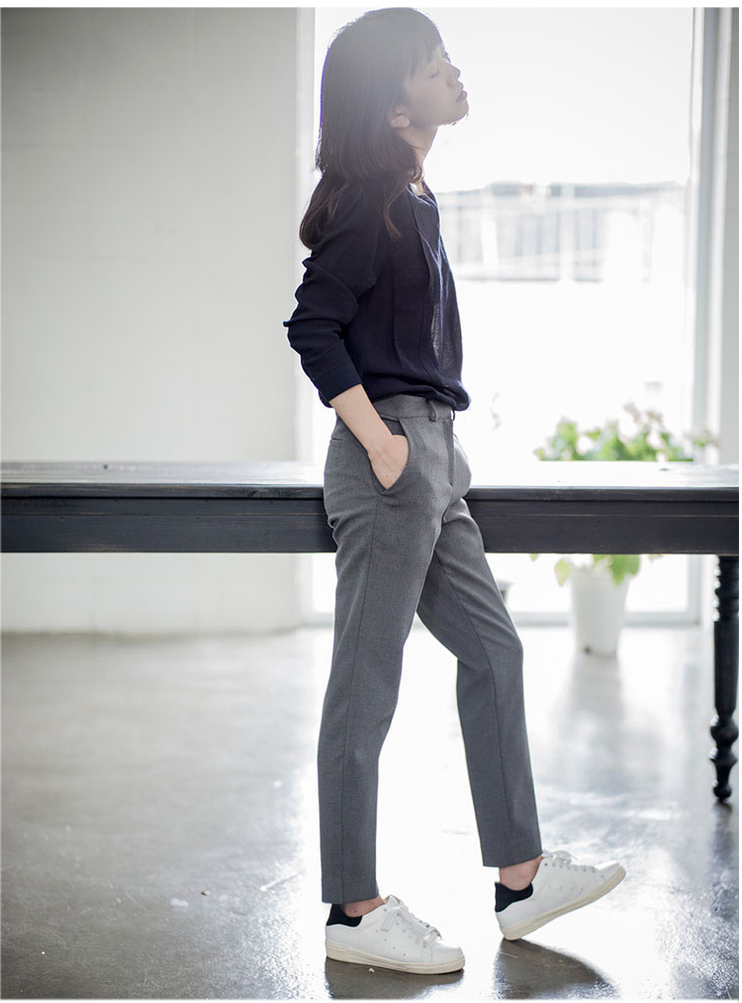 Spring, Summer, and Autumn Slim-Fit Cropped Suit Pants for Women, Summer Drapey High-Waisted Straight-Leg Pants, Casual Cigarette Pants, Gray Professional Suit Pants