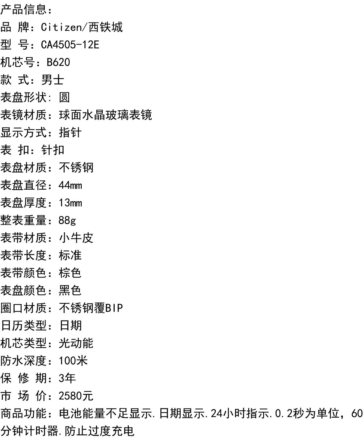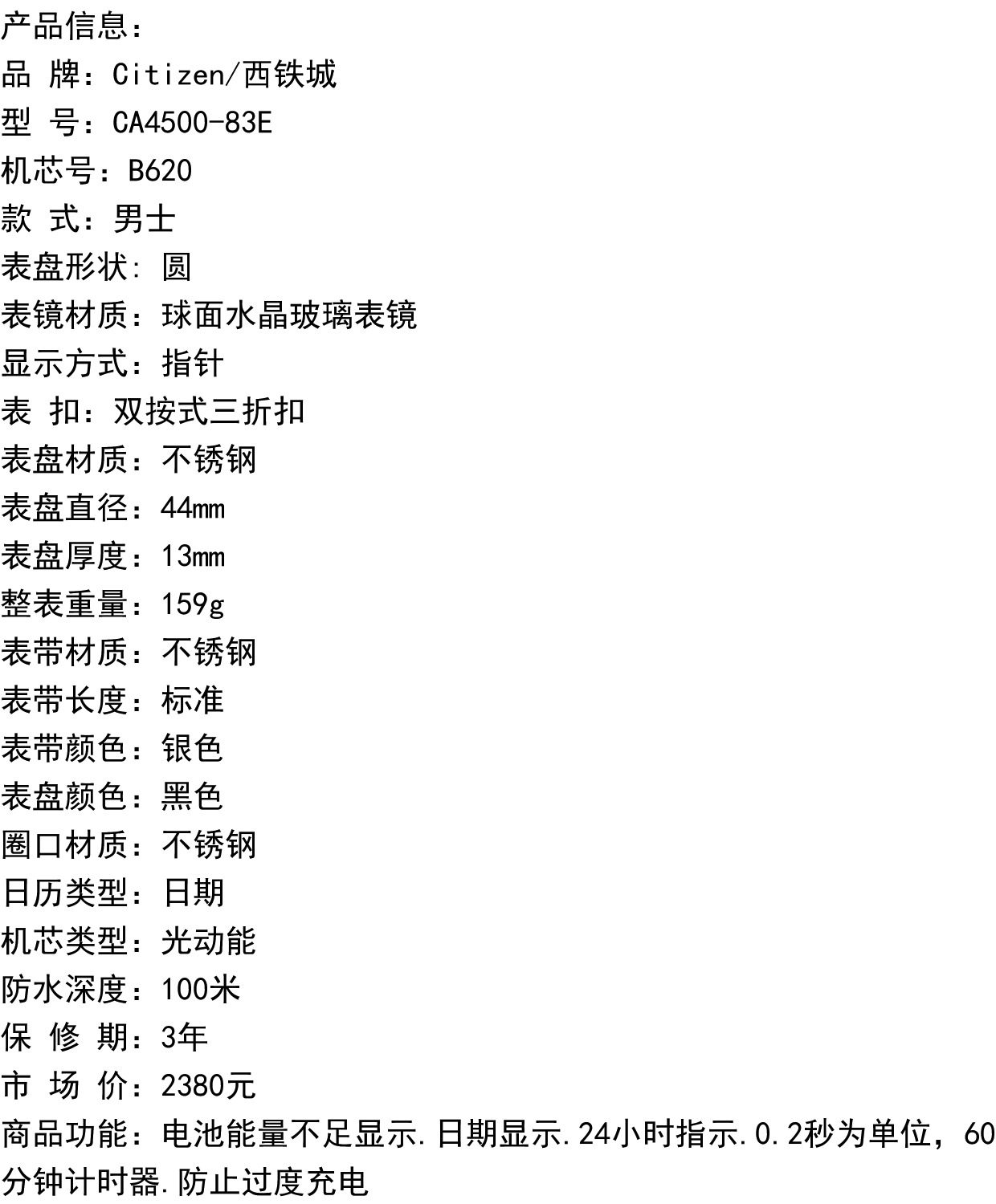 Citizen Watch Ff Series Photodynamic Black Dial Date Display Fashionable Men's Watch Ca4505-12E