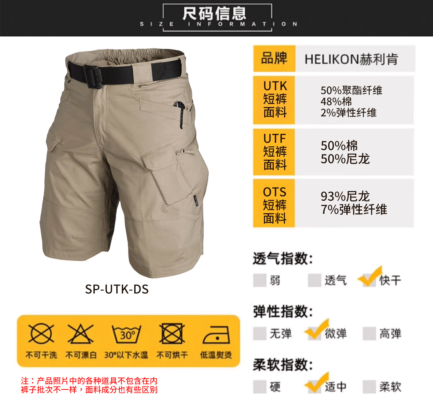 Helikon Utk Utl Uts Urban Casual Multi-Pocket Shorts Workwear Plaid Fabric Water-Repellent