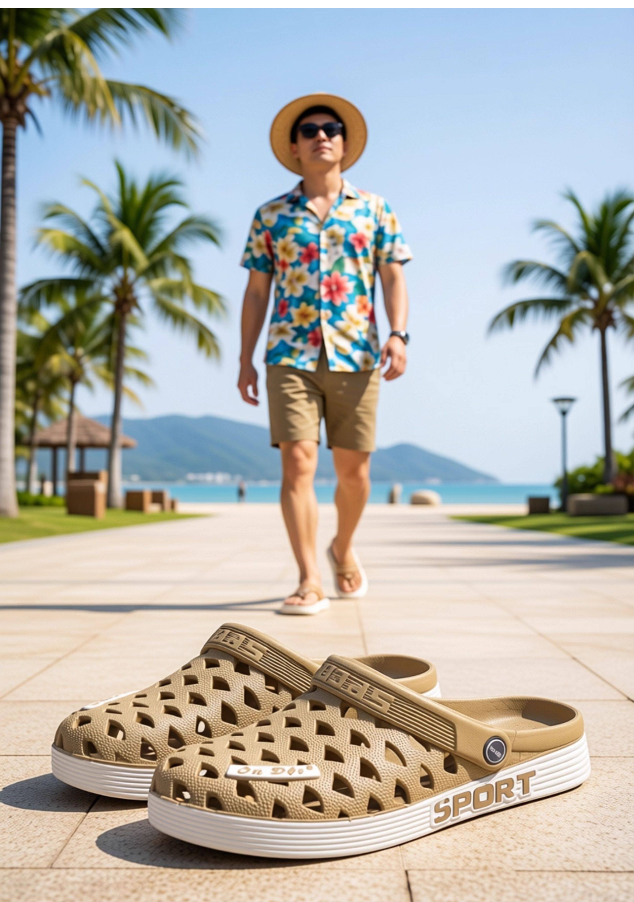 Vietnamese Rubber Clogs, Non-Smelly Men's Shoes, Non-Slip Sandals, Travel Beach Shoes, Couple's Closed-Toe Soft Sandals