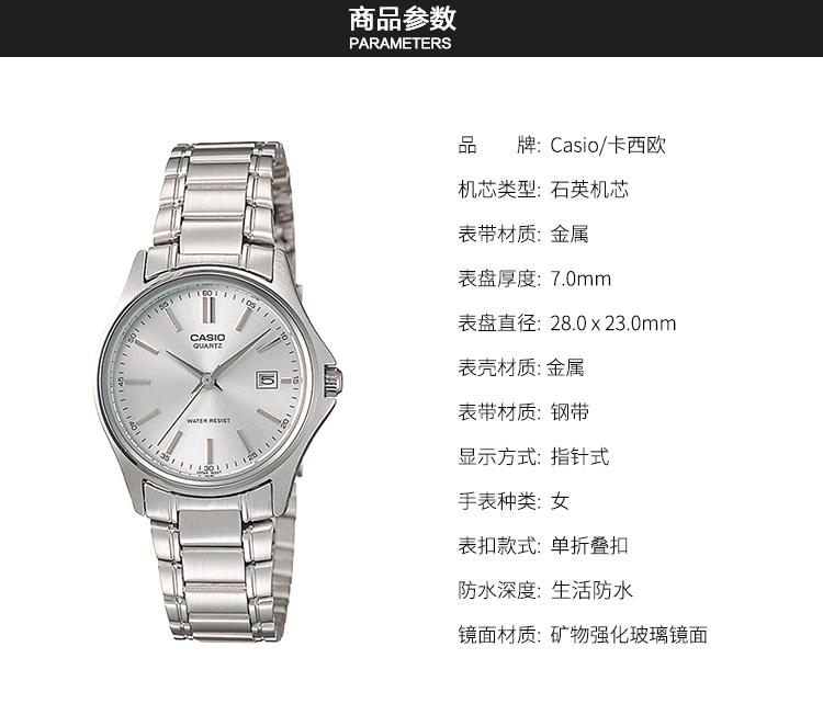 Casio Watch Simple Waterproof Analog Calendar Quartz Student Ladies Watch Ltp-1183A-7A V002D