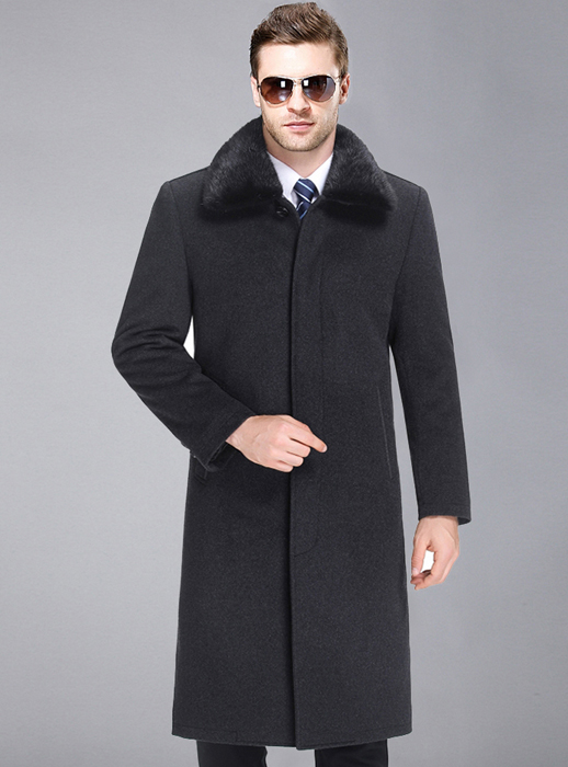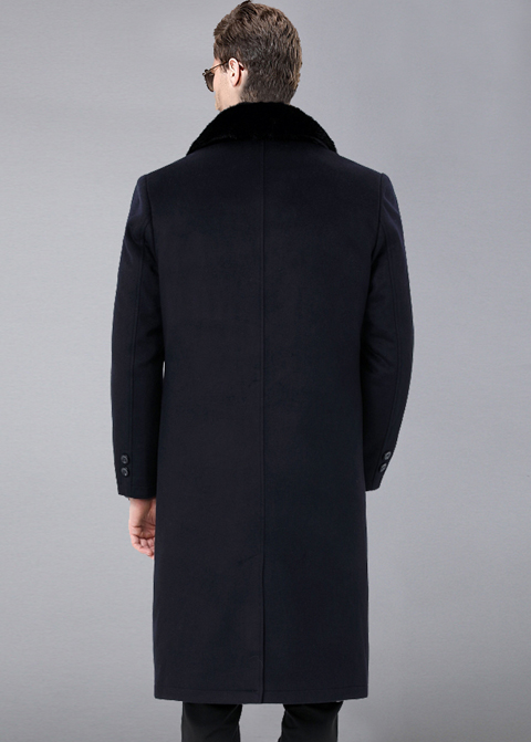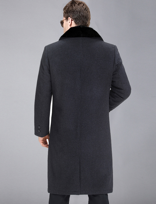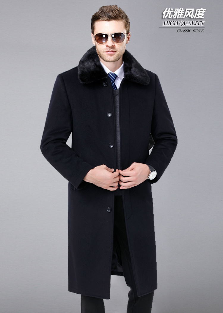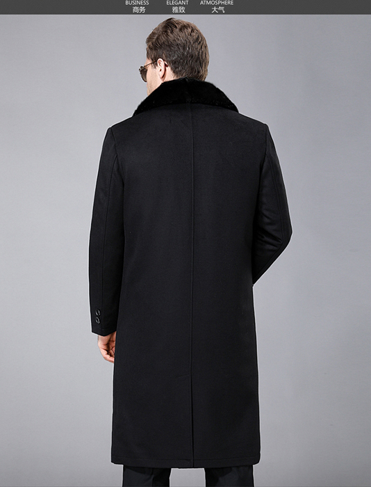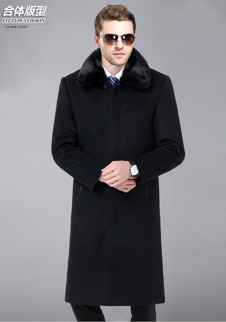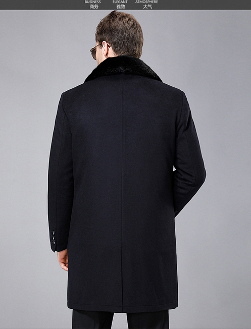 Pierre Cardin High-End Cashmere Wool Coat for Men, Extra-Long, Over-The-Knee, with Mink Fur Collar, Suitable for Middle-Aged and Elderly People
