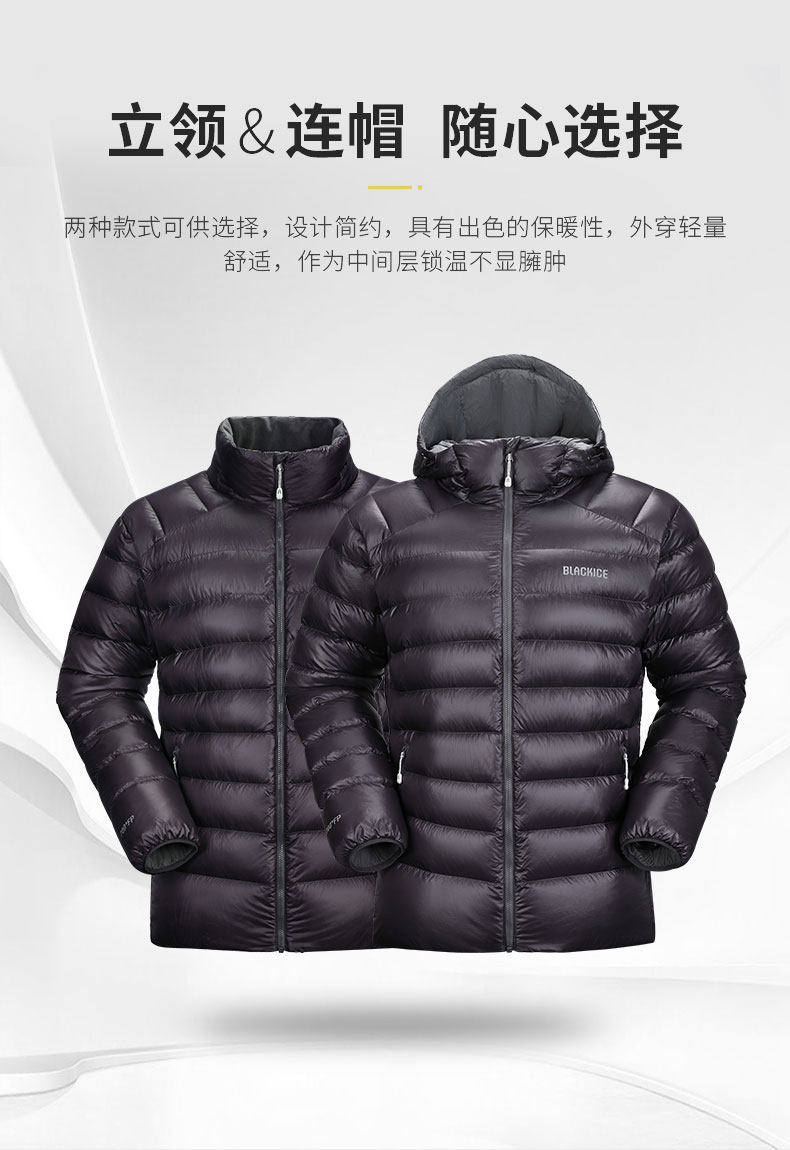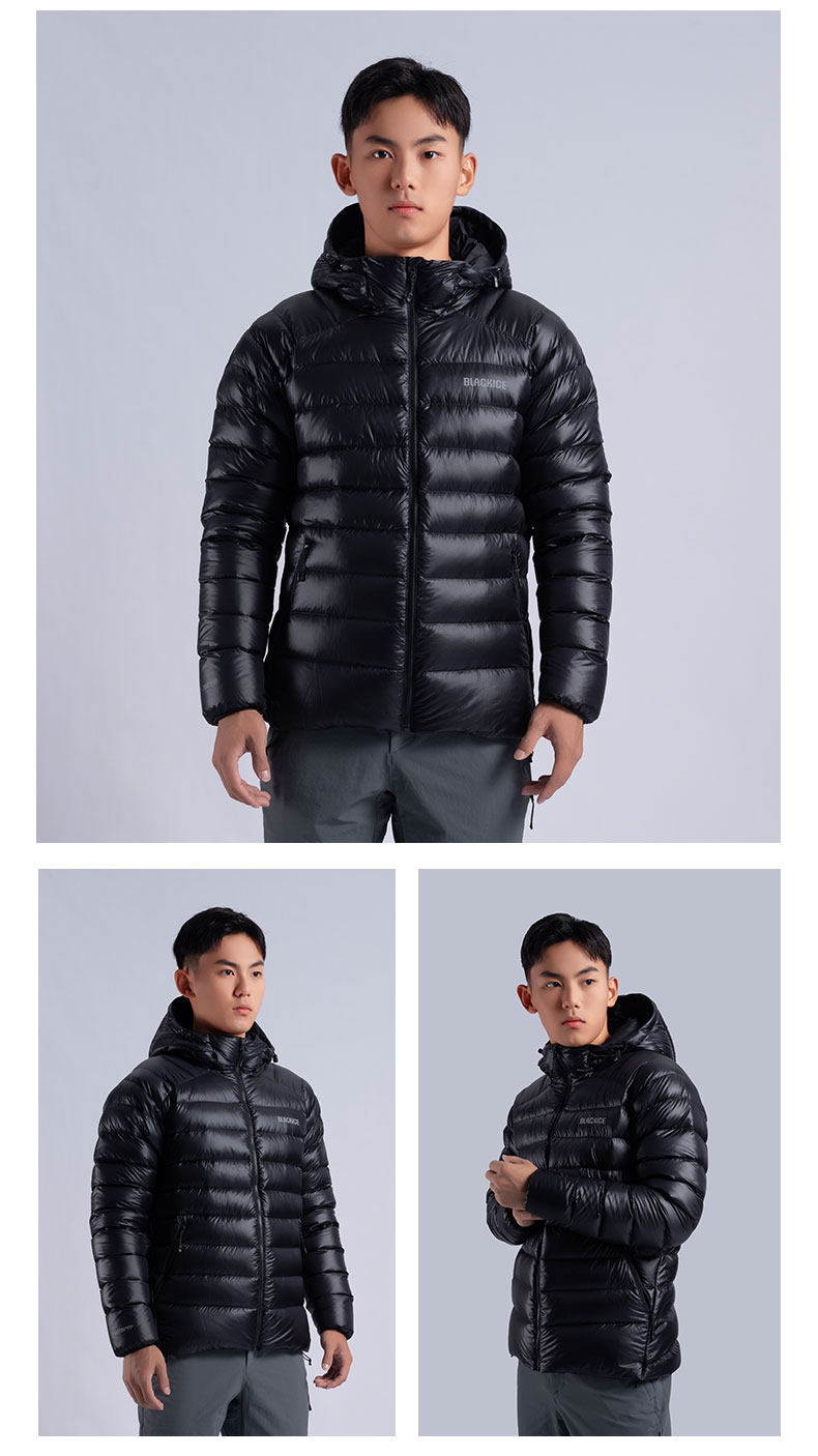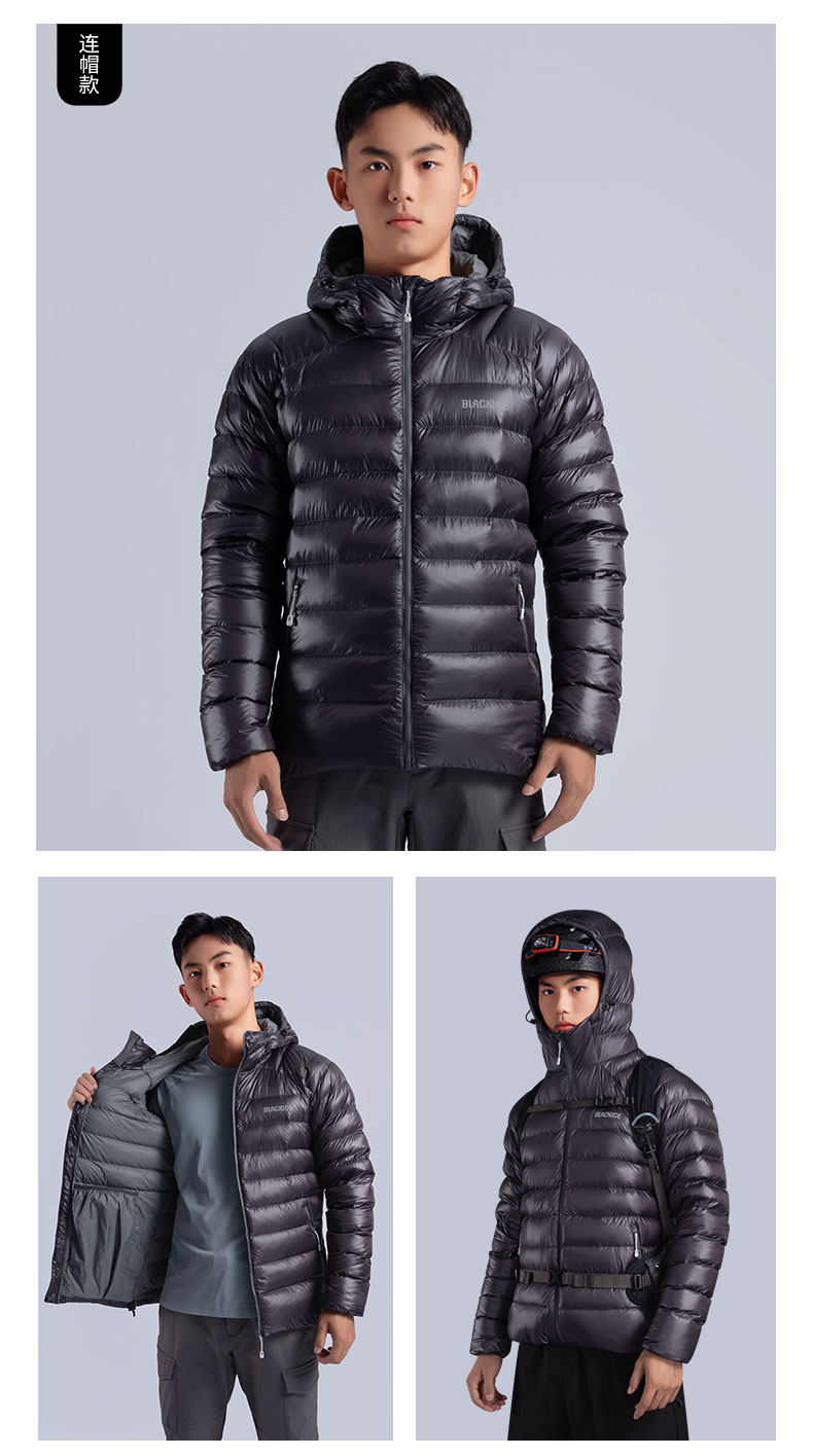 Black Ice New Outdoor Tianquan Ribbed Inner Layer Hooded Lightweight 700 Fill Power Goose down Jacket for Men 8518