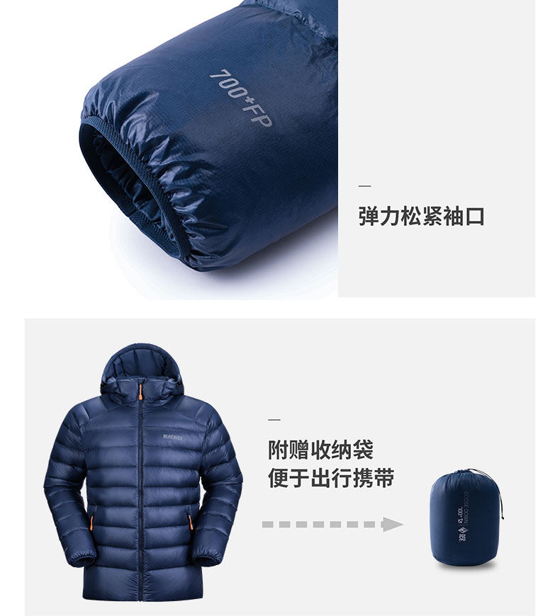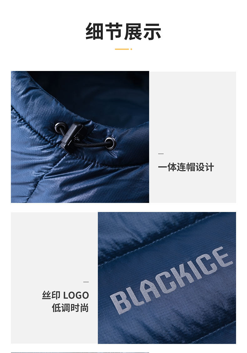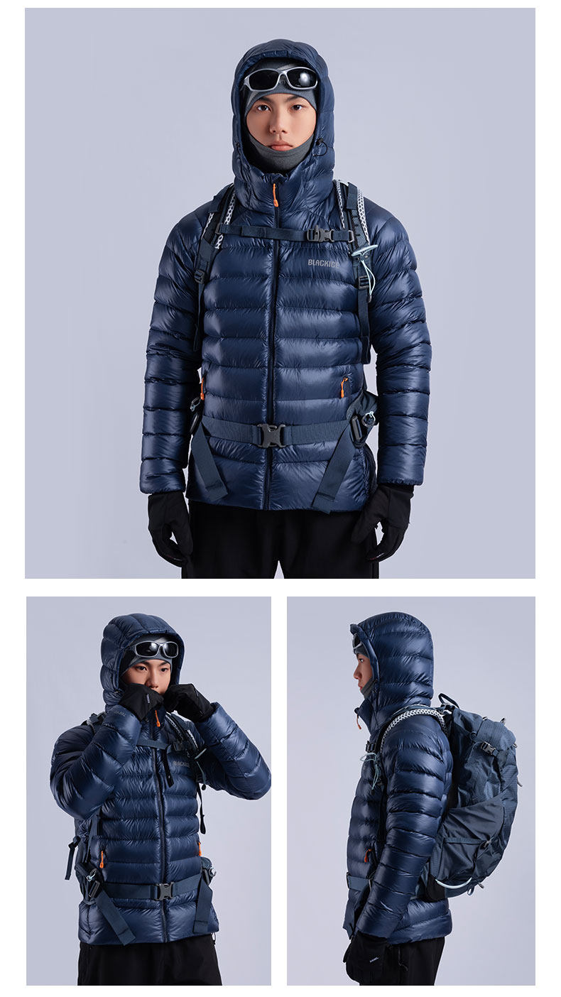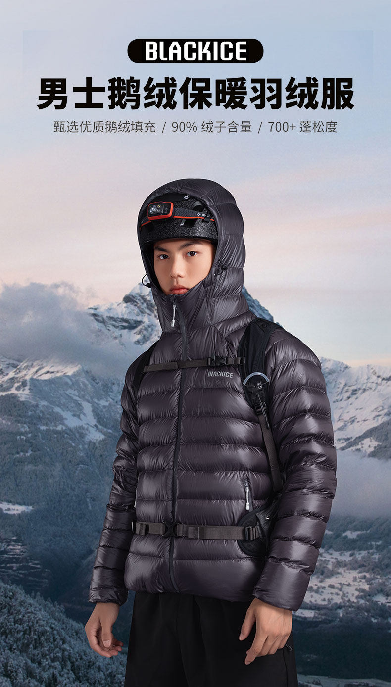 Black Ice New Outdoor Tianquan Ribbed Inner Layer Hooded Lightweight 700 Fill Power Goose down Jacket for Men 8518