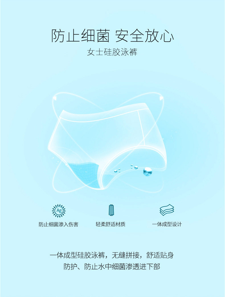 Swimming Antibacterial, Anti-Infection, Waterproof Underwear, Antibacterial Menstrual Period Swim Trunks for Women, Silicone Swim Trunks to Prevent Water Ingress
