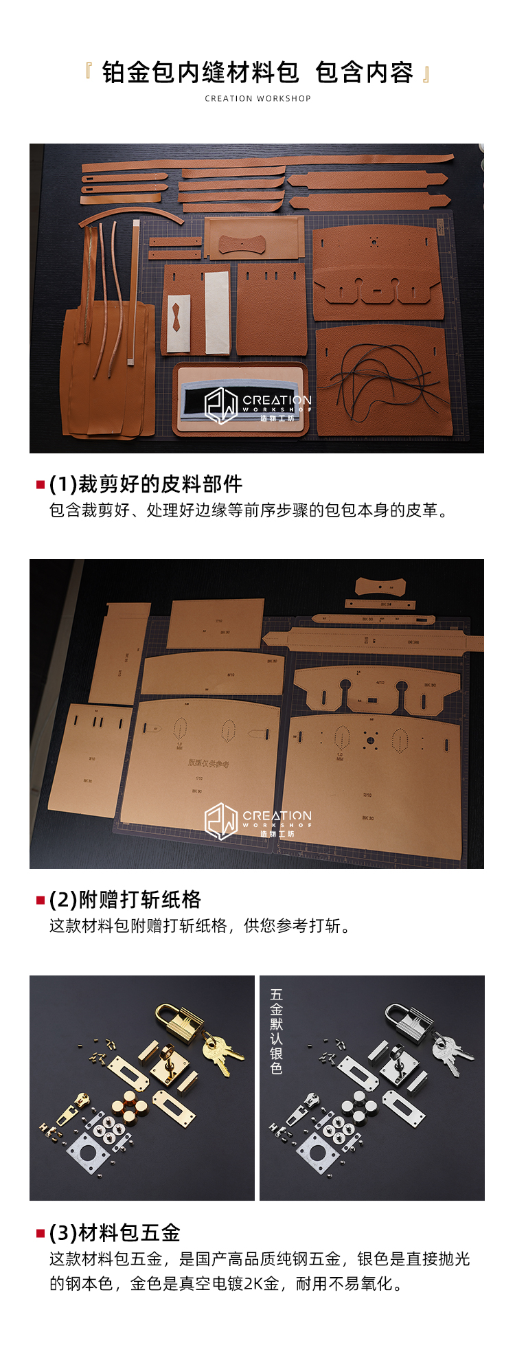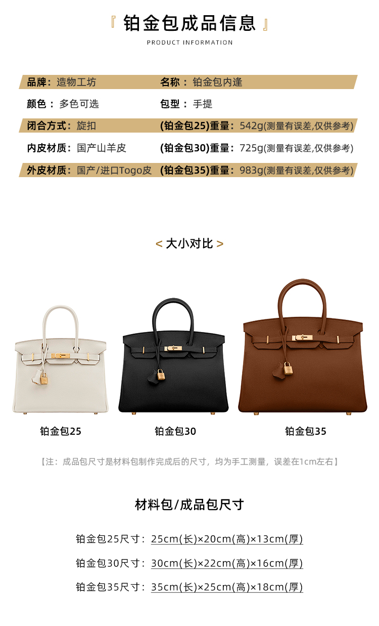 Platinum 25/30/35 Material Package Handmade Leather Goods DIY Material Set Togo Style Lychee Pattern Creation Workshop