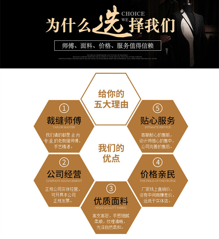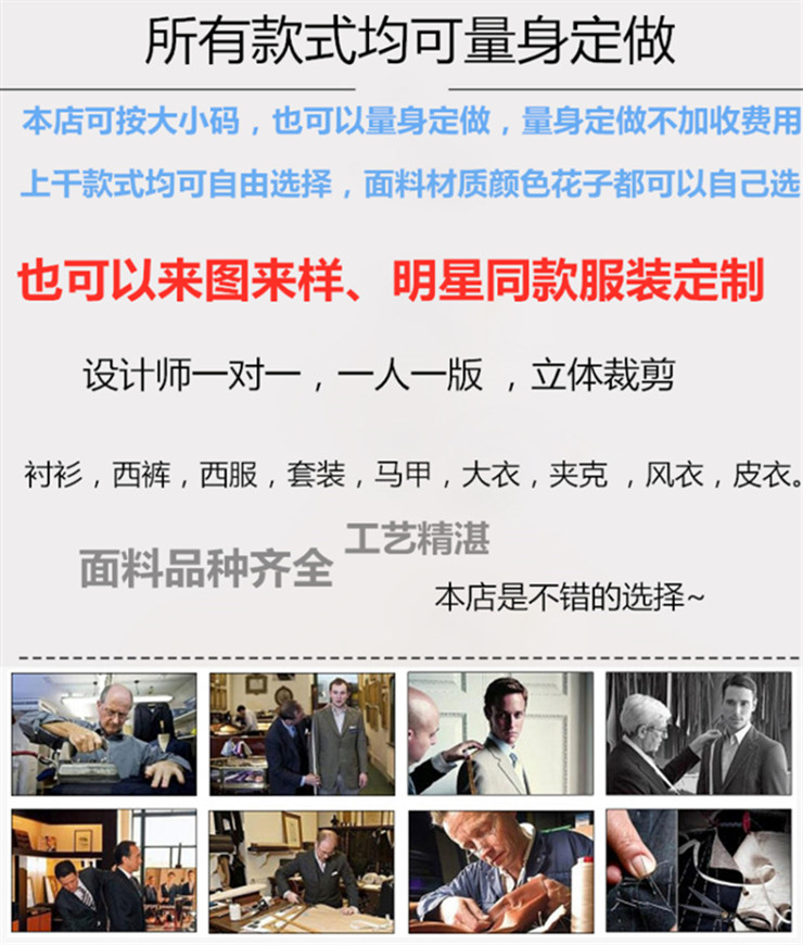 2、同样的款式不同的裁缝做出来的衣服上身效果是不同的,请不要光在价格上面做比较,一分价钱一分货,我们会尽量做到实物最好。