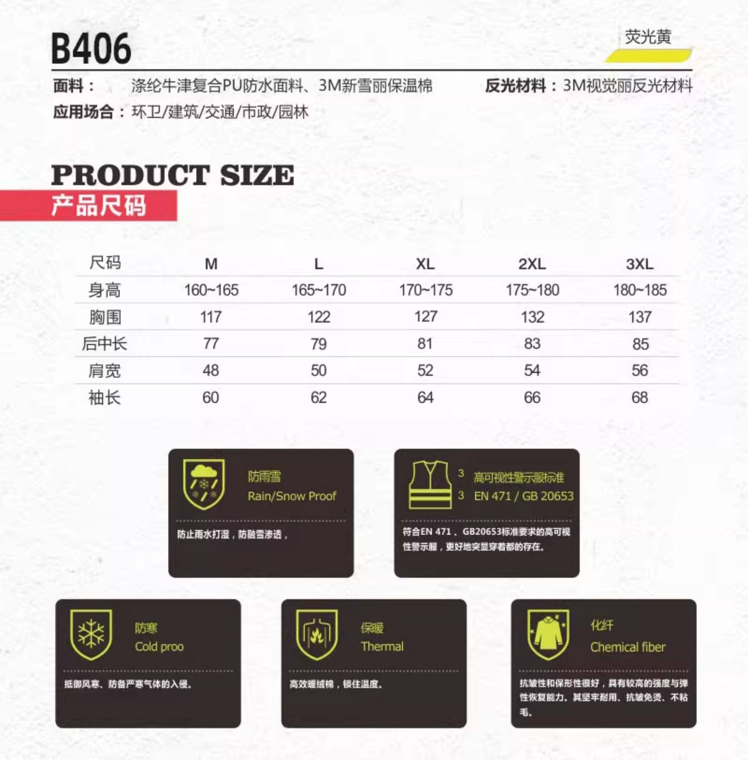 Uncle an B008 Fluorescent Orange B406 Cold-Proof and Anti-Freeze Clothing Reflective Clothing with Thinsulate High-Visibility Reflective Strips Cold-Proof Clothing