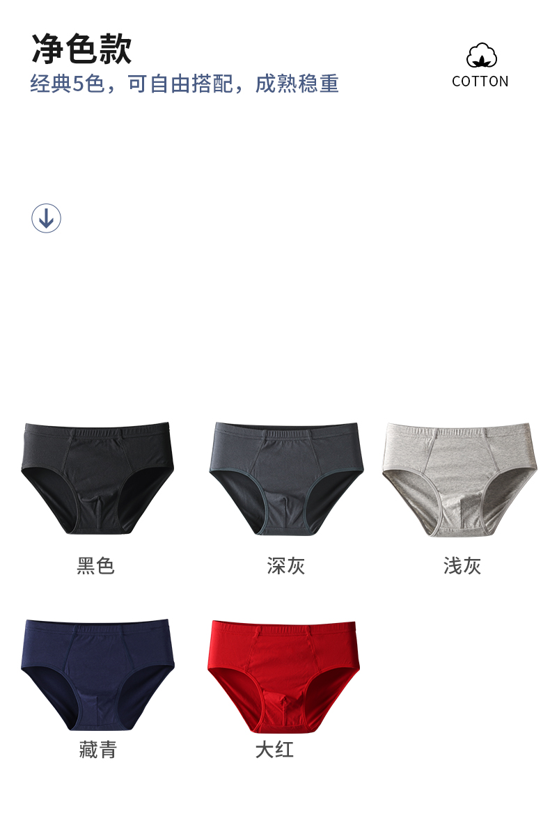 Men's Underwear Briefs, Pure Cotton, Loose and Breathable, Solid Color, Large Size Men's Shorts, Men's Underwear