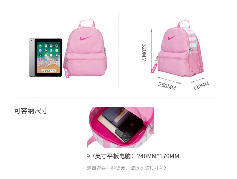 Nike Nike Small School Bag Travel Leisure Kindergarten Mini Backpack for Boys and Girls Student Backpack Ba5559